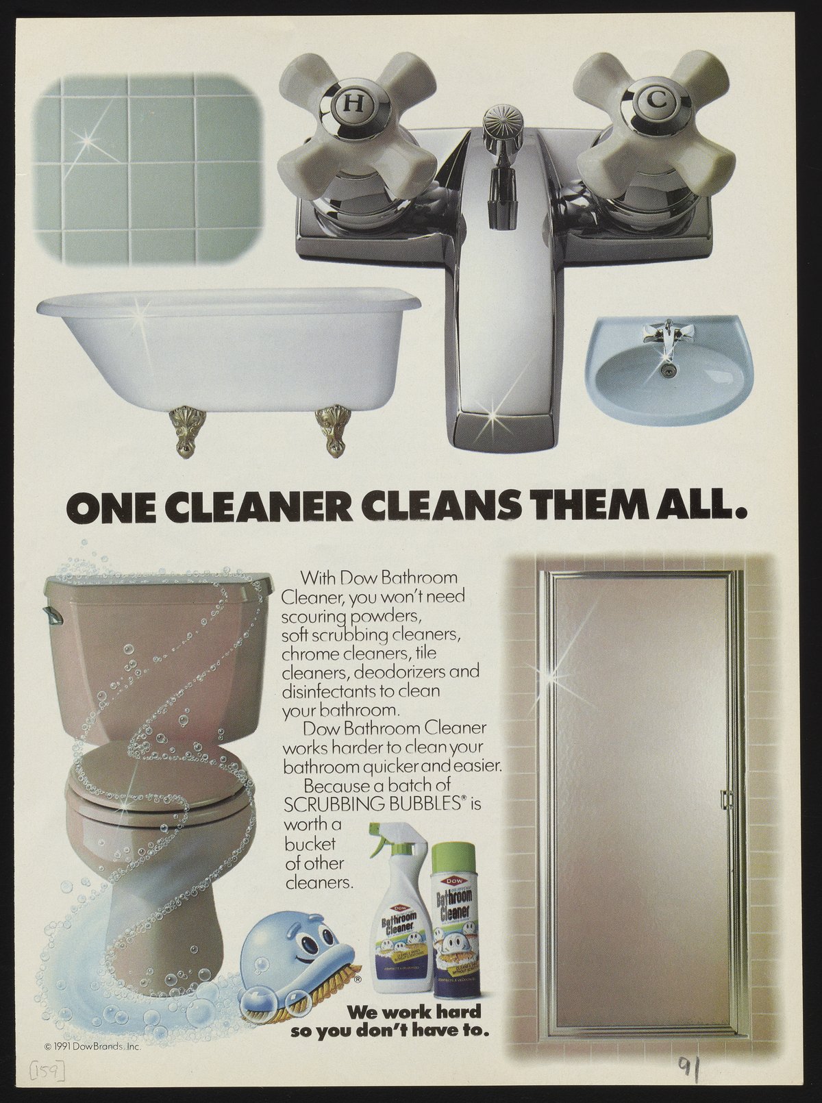 Dow Chemical Company. “One Cleaner Cleans Them All,” September 1991. Advertisements from the Dow Chemical Historical Collection, Box 7. Science History Institute. Philadelphia. https://digital.sciencehistory.org/works/cj82k8048.