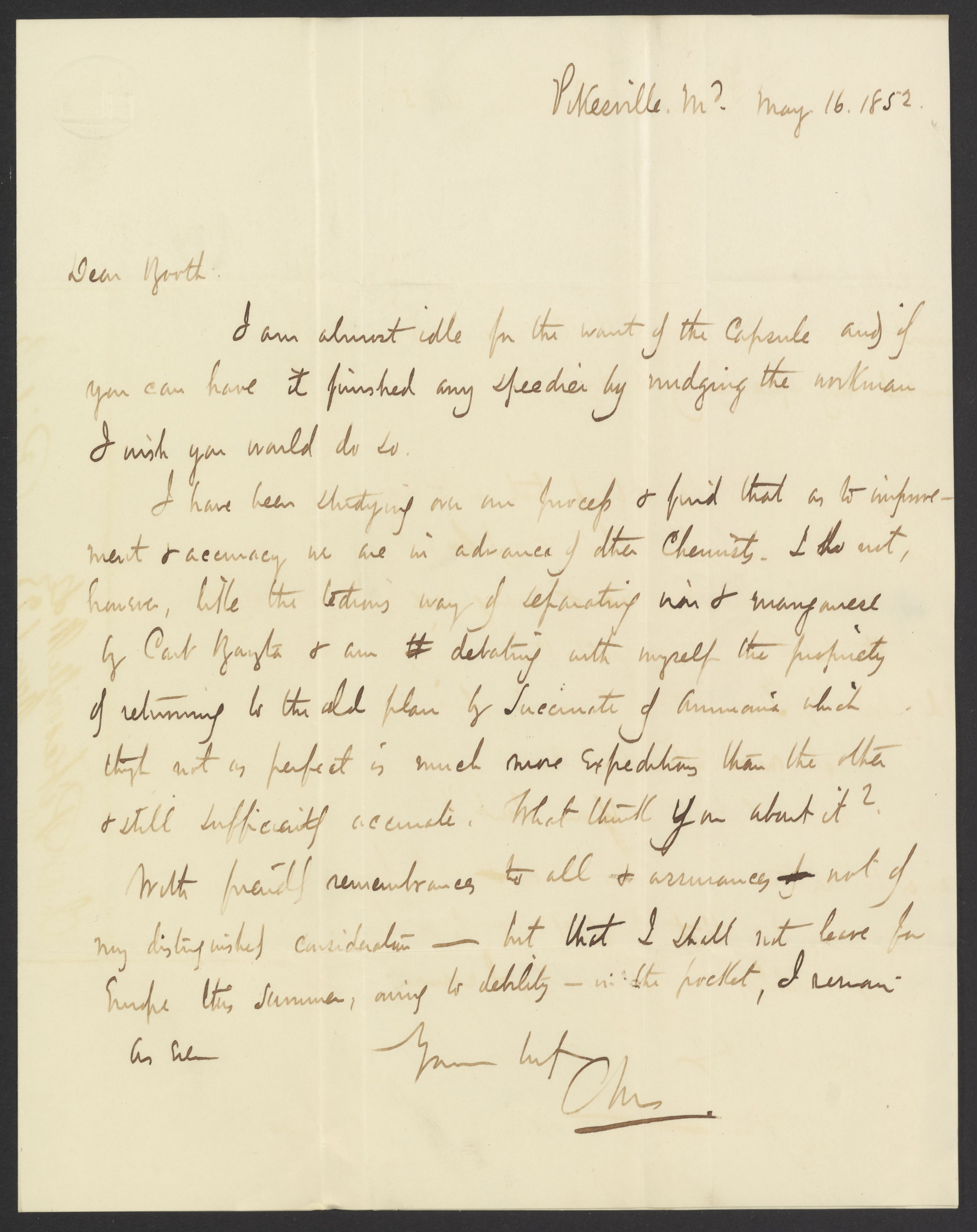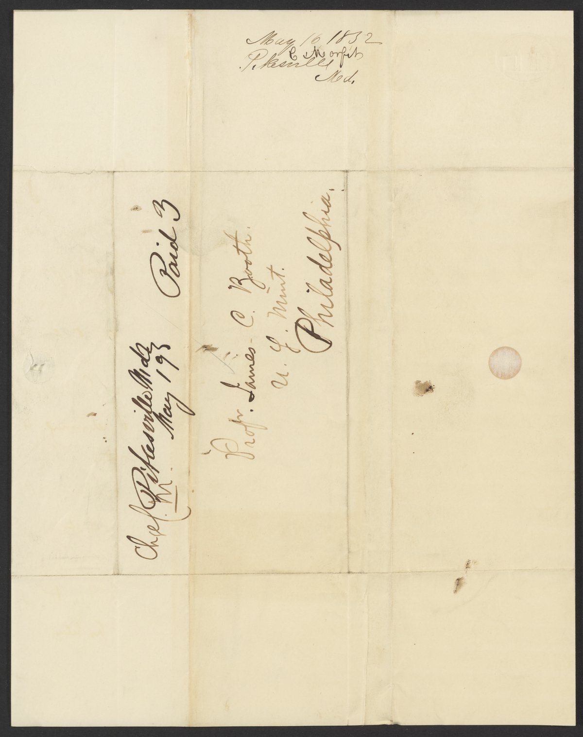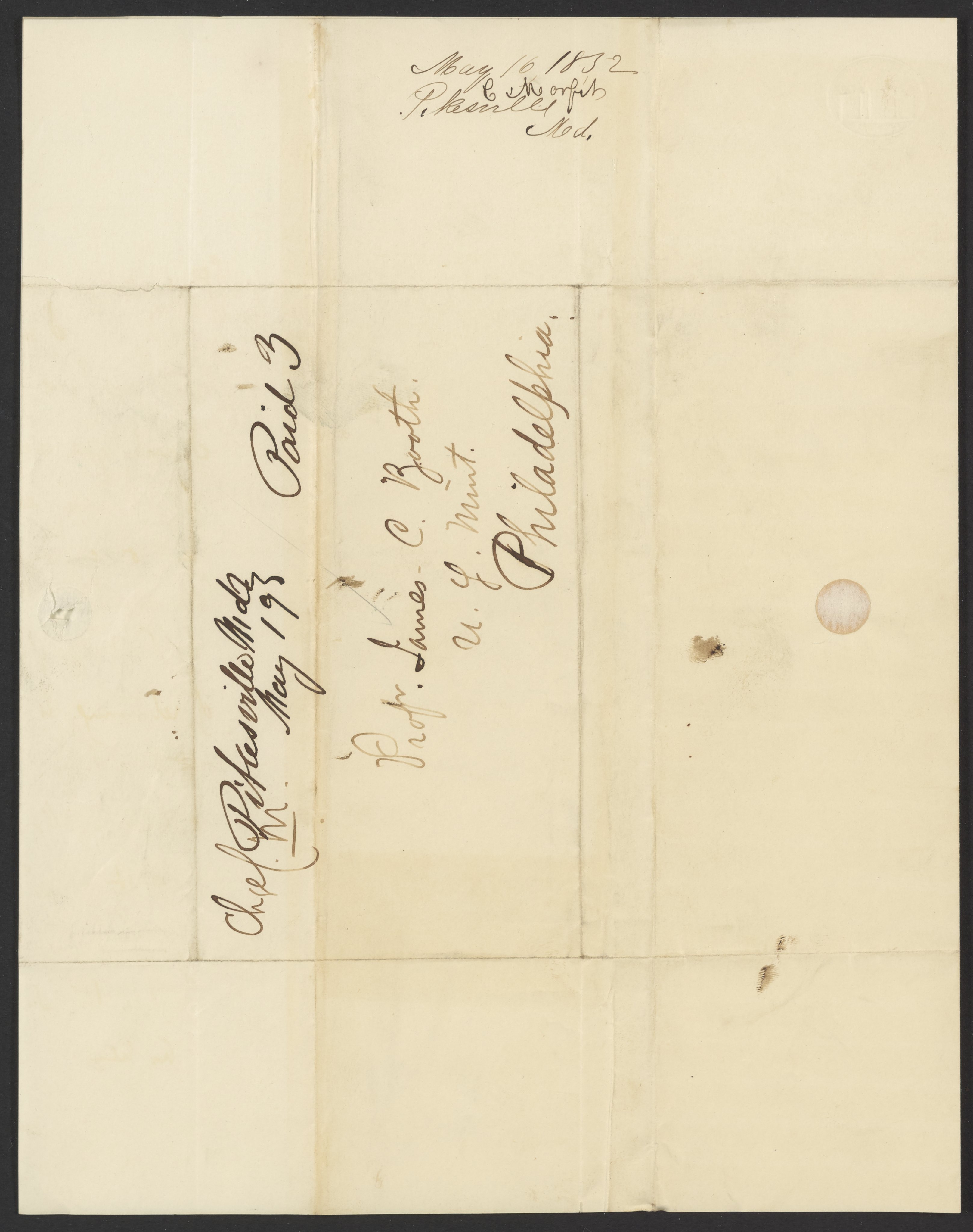 Morfit, Campbell. “Letter from Campbell Morfit to James Curtis Booth, May 16, 1852,” May 18, 1852. Papers of James Curtis Booth, Box 1, Folder 10. Science History Institute. Philadelphia. https://digital.sciencehistory.org/works/cl0auxf.