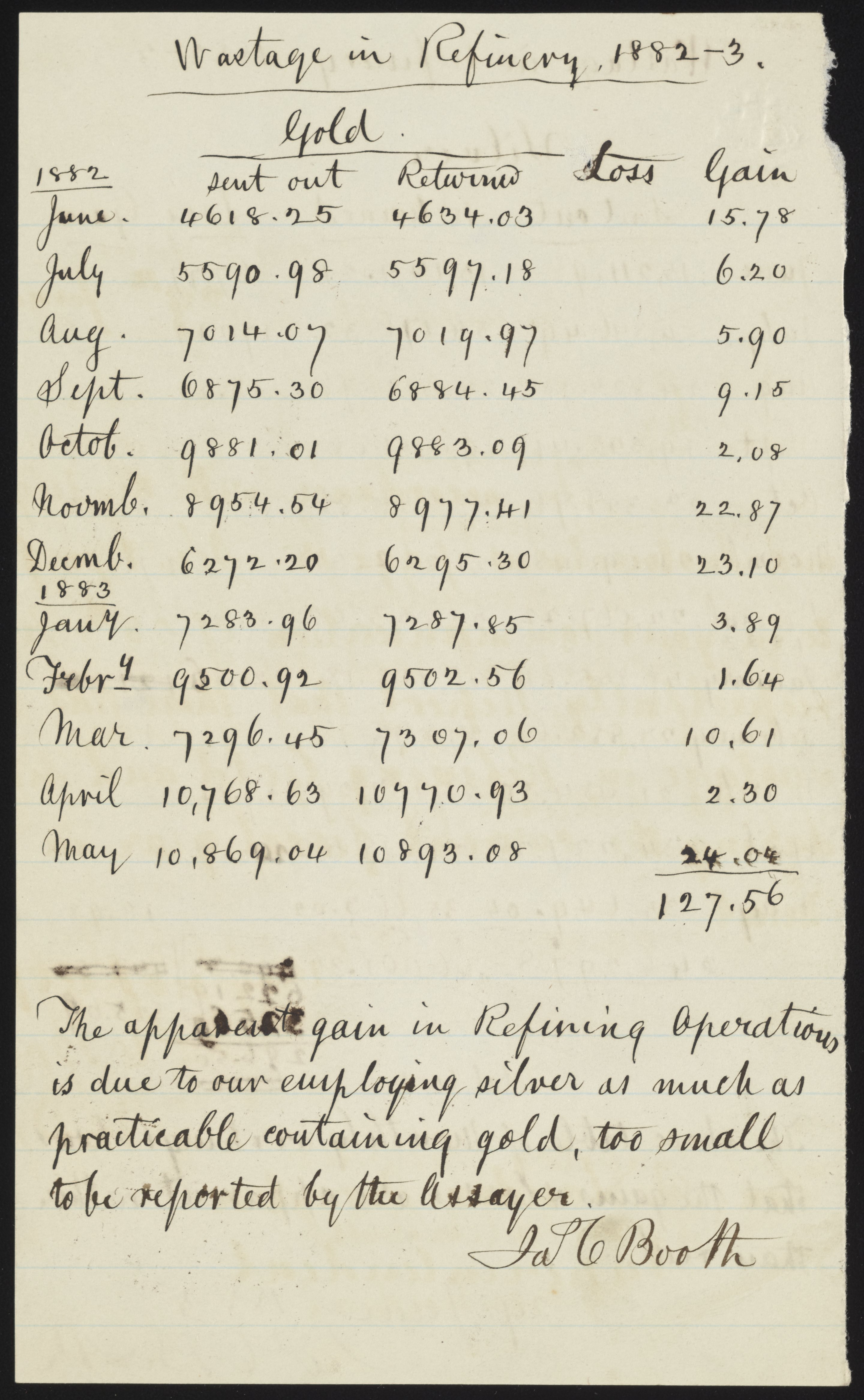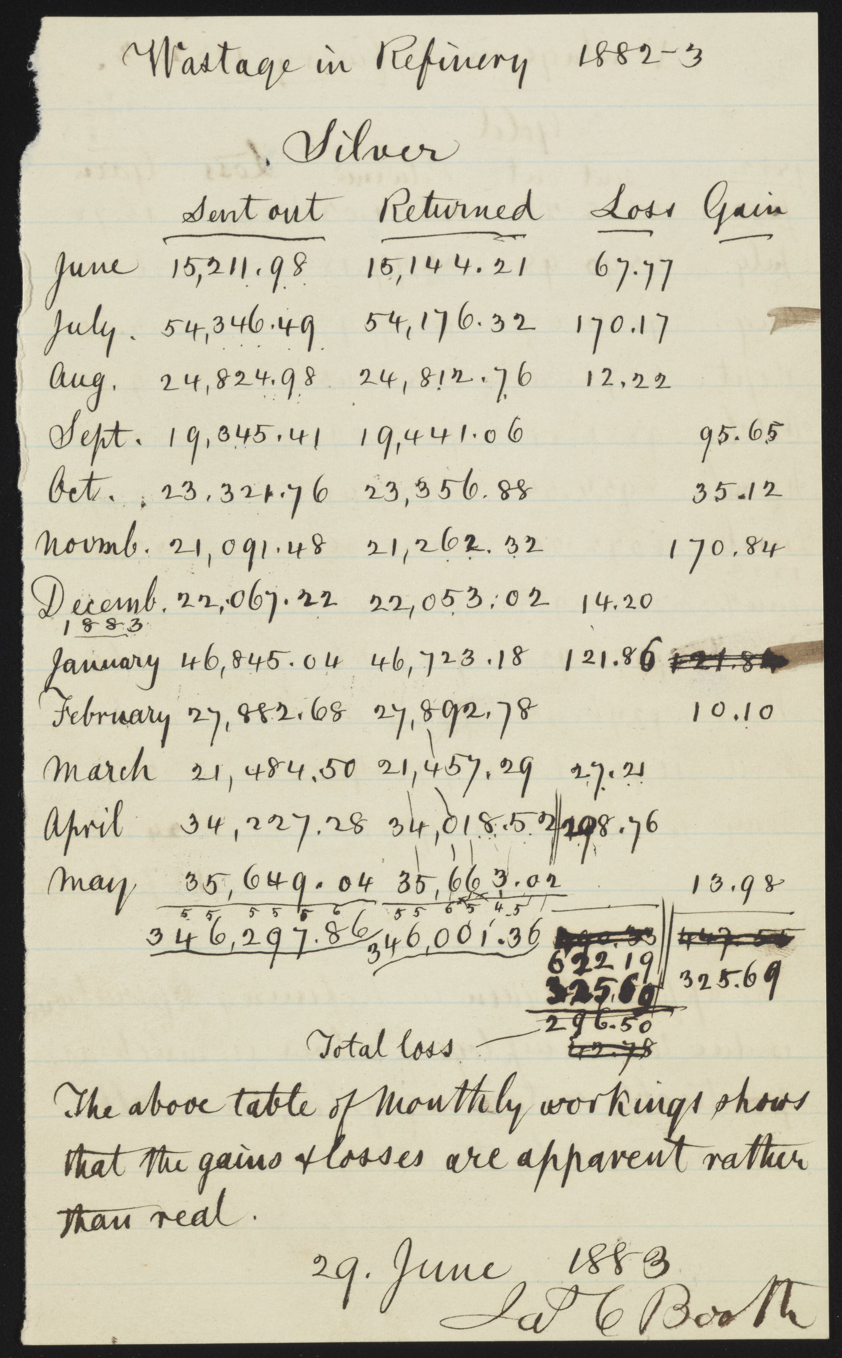 Wastage in Refinery, 1882-3