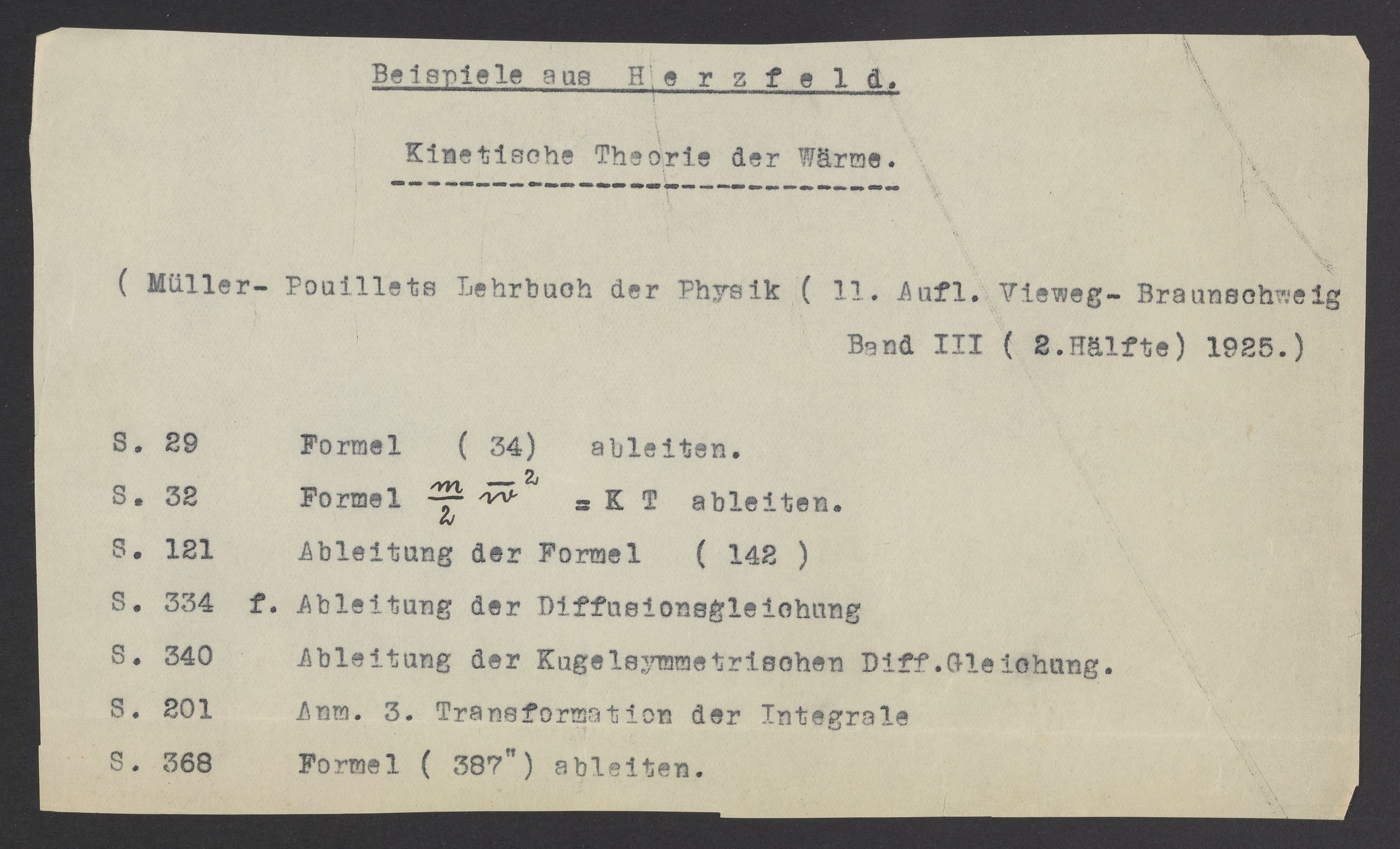 “Beispiele Aus Herzfeld Kinetische Theorie Der Wärme,” 1925. Papers of Georg and Max Bredig, Box 5, Folder 9. Science History Institute. Philadelphia. https://digital.sciencehistory.org/works/co00g03.