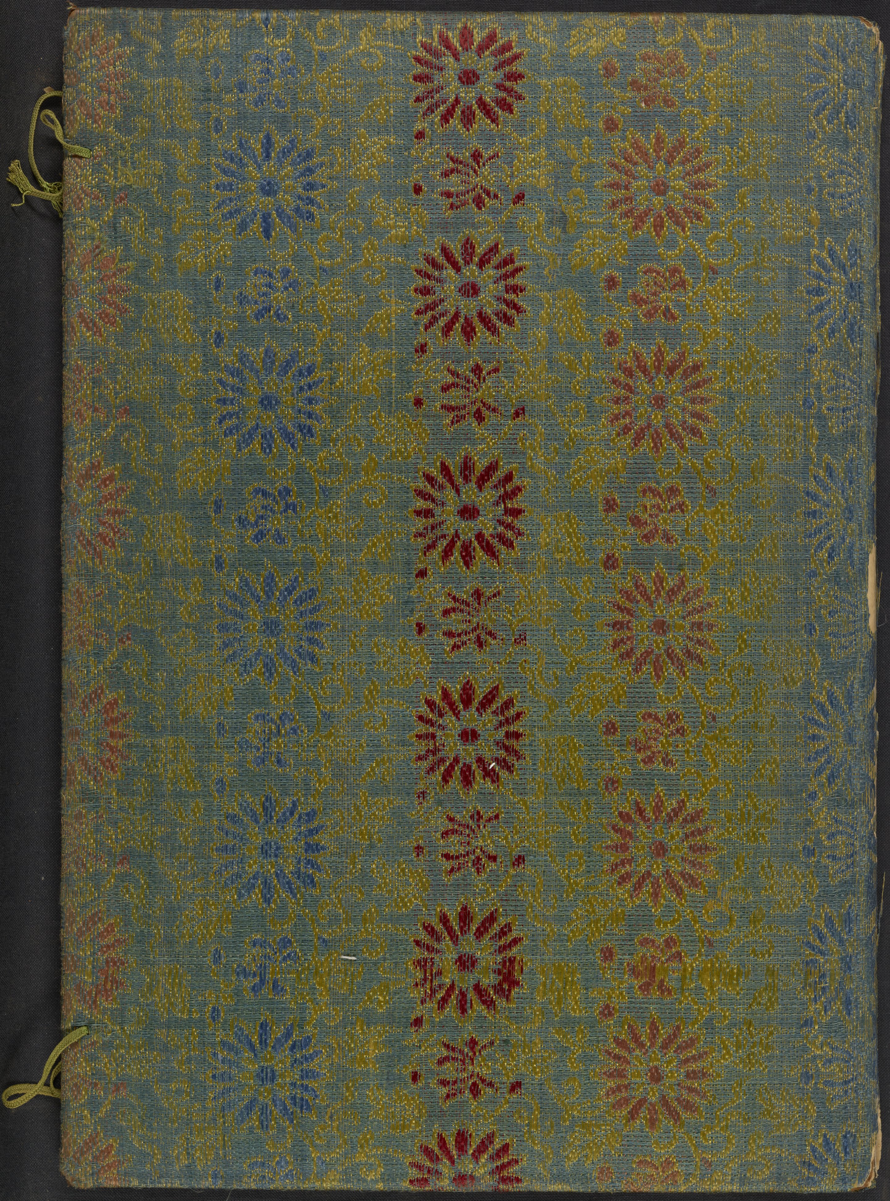 These elaborate paintings were made on pith paper supports, a paper-like product made from the pith of a small tree. Pith was a popular painting support of Chinese export paintings as it was a sumptuous but inexpensive form of locally made paper, an alternative to pricier imported European paper. The pith paper paintings are secured onto the album pages with thin, blue silk tapes.