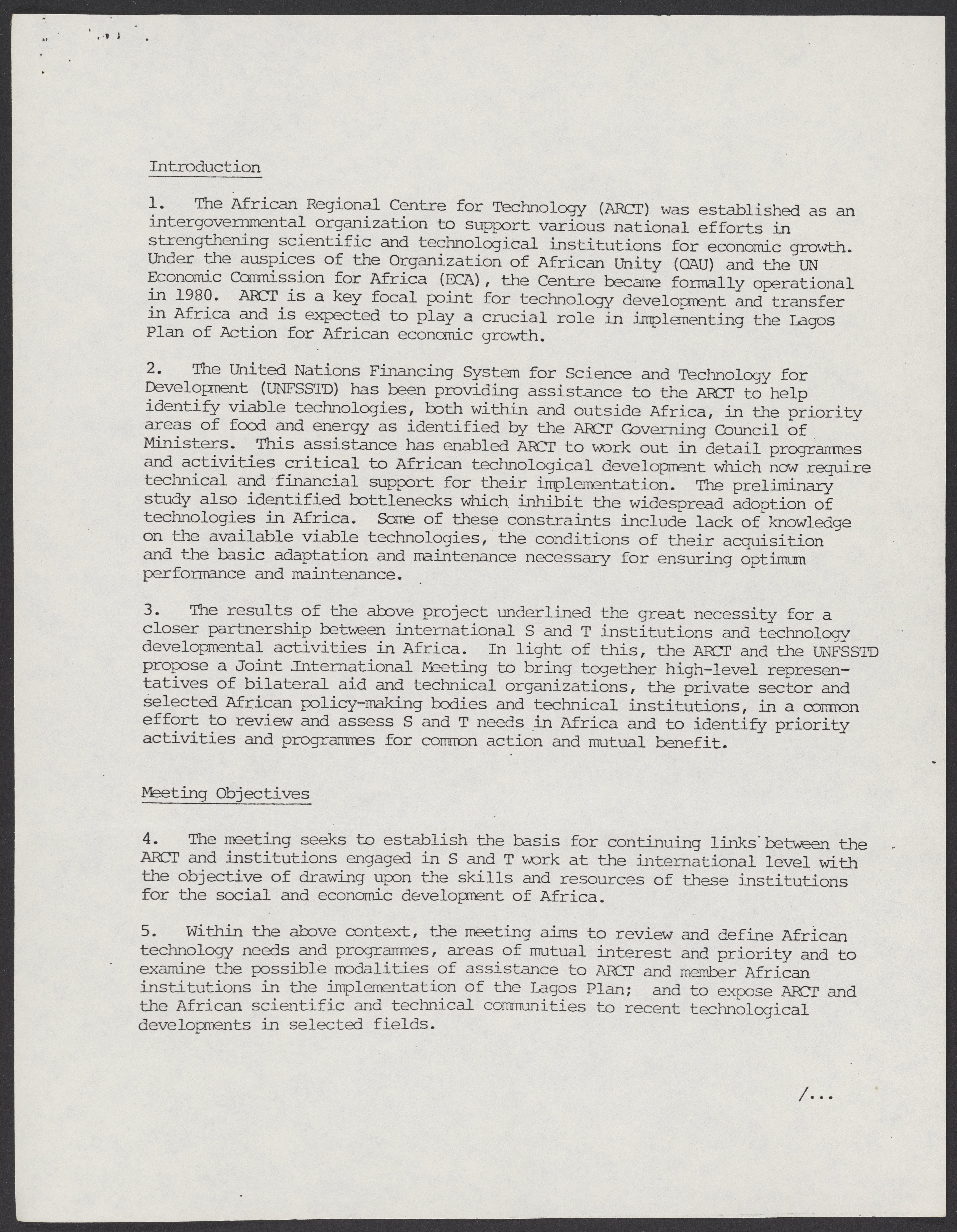 Aide-mémoire on the Joint Meeting on International Co-operation for African Technological Development