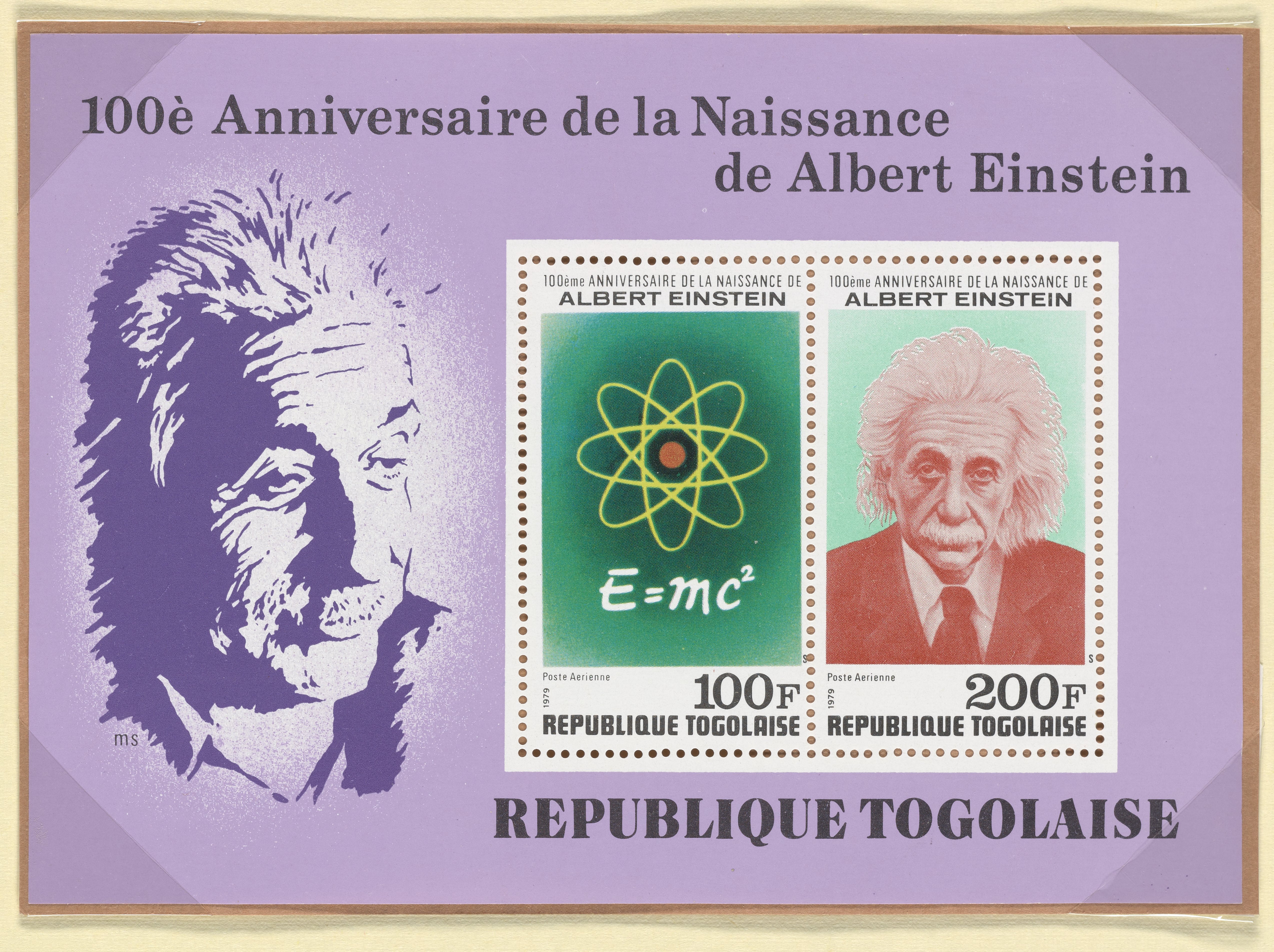 “Postage Stamps on a Souvenir Sheet from Togo Commemorating the 100th Anniversary of the Birth of Albert Einstein.” Togo, 1979. Witco Stamp Collection, Box 2. Science History Institute. Philadelphia. https://digital.sciencehistory.org/works/d217qp524.