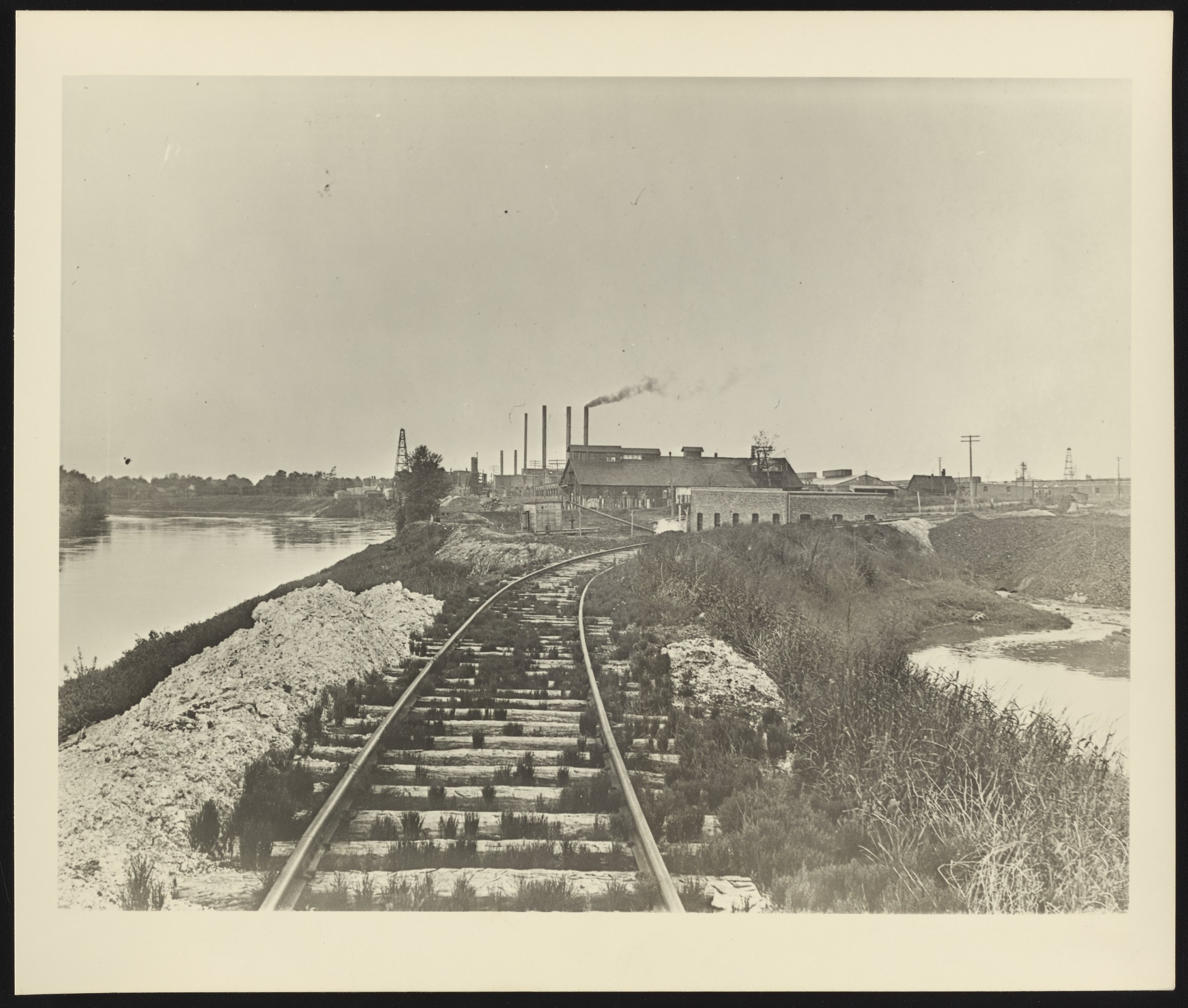 Dow Chemical Company. “Railroad Tracks at Dow Chemical Company Plant,” 1930–1939. Dow Chemical Company Historical Image Collection, Box Oversized Plants 2. Science History Institute. Philadelphia. https://digital.sciencehistory.org/works/d217qp95x.