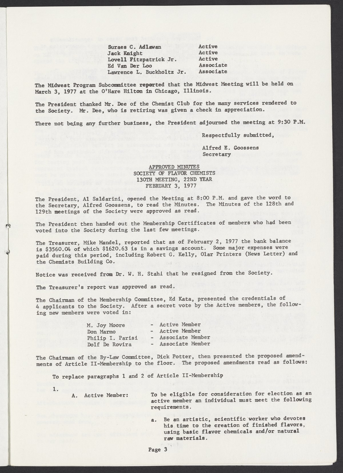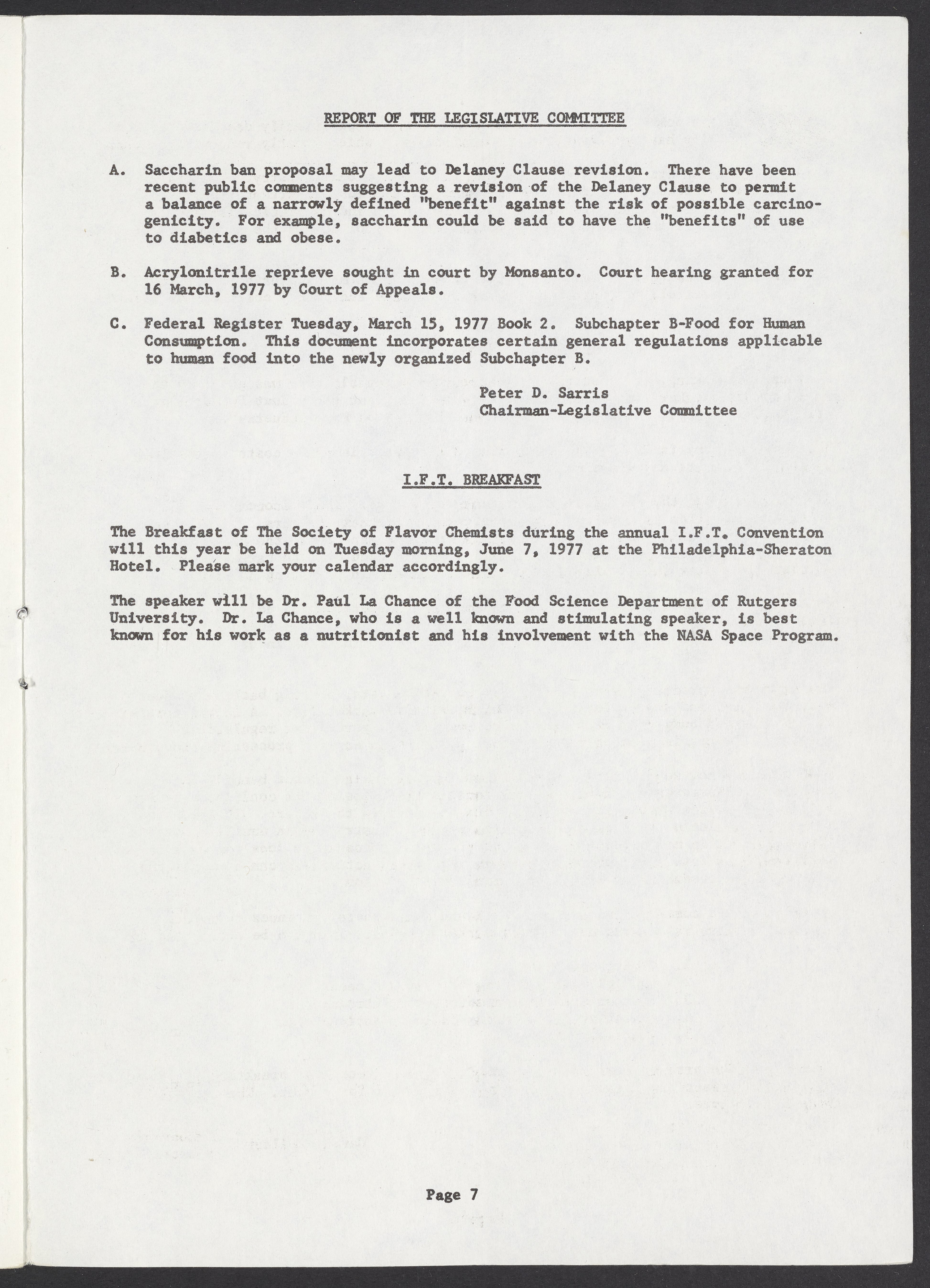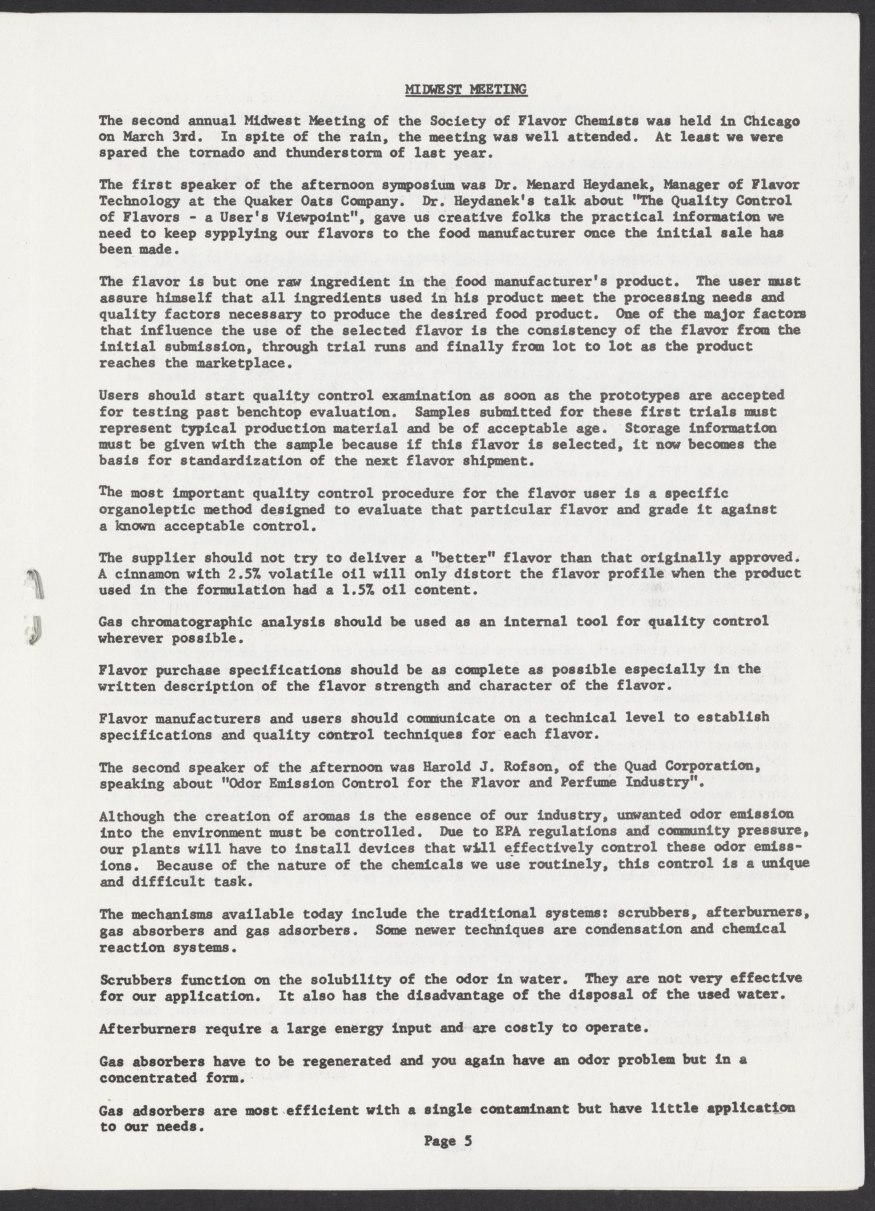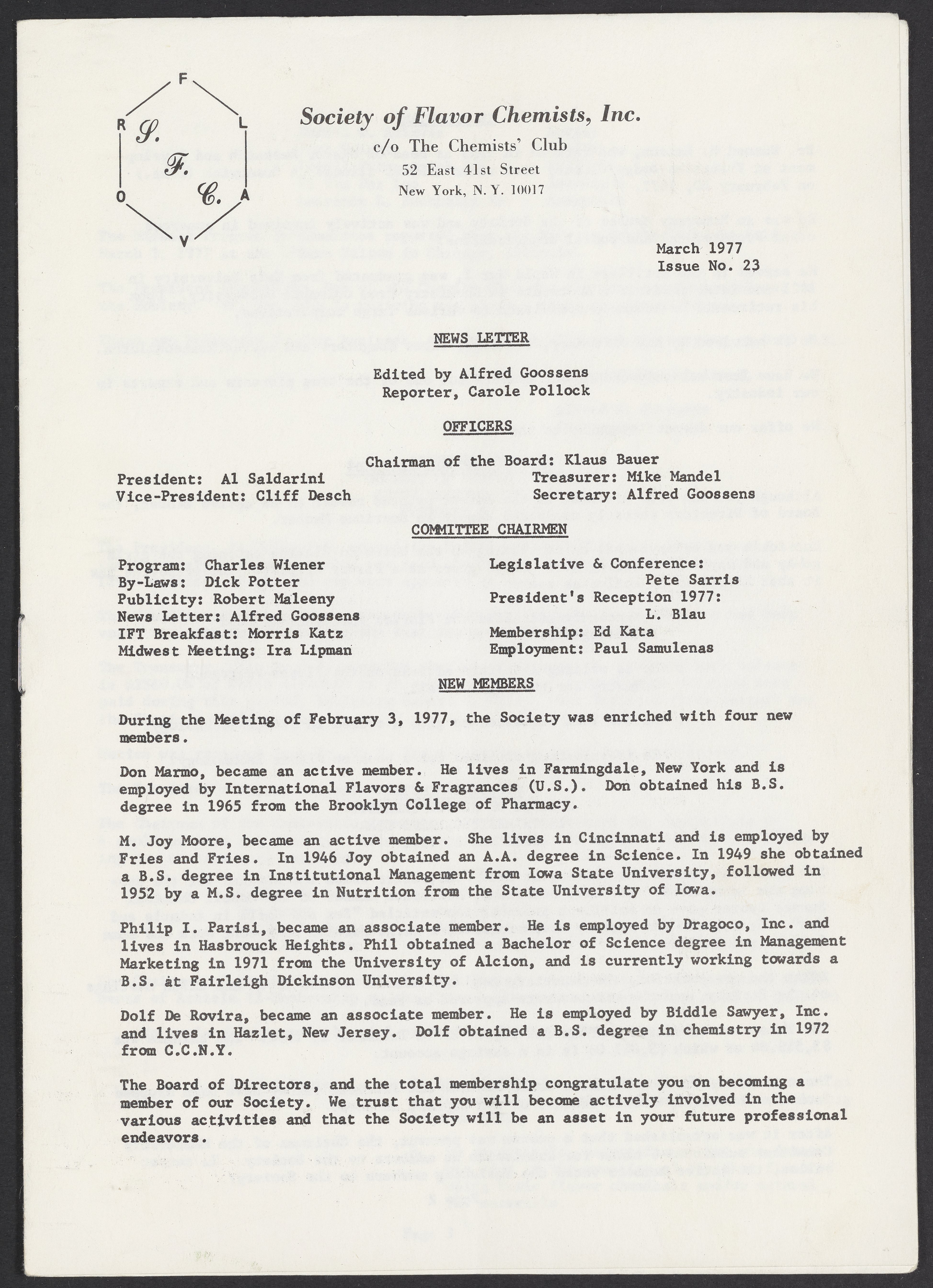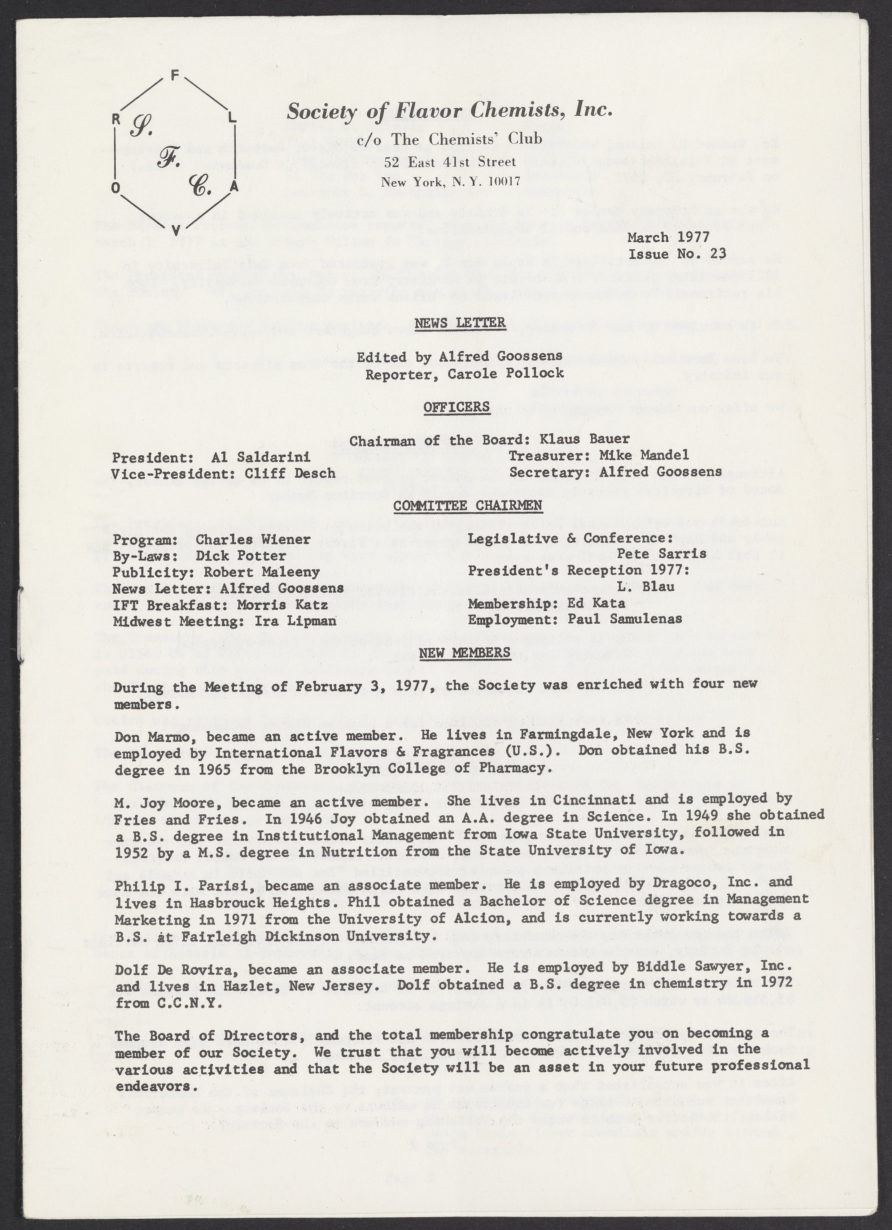 Society of Flavor Chemists newsletter, March 1977