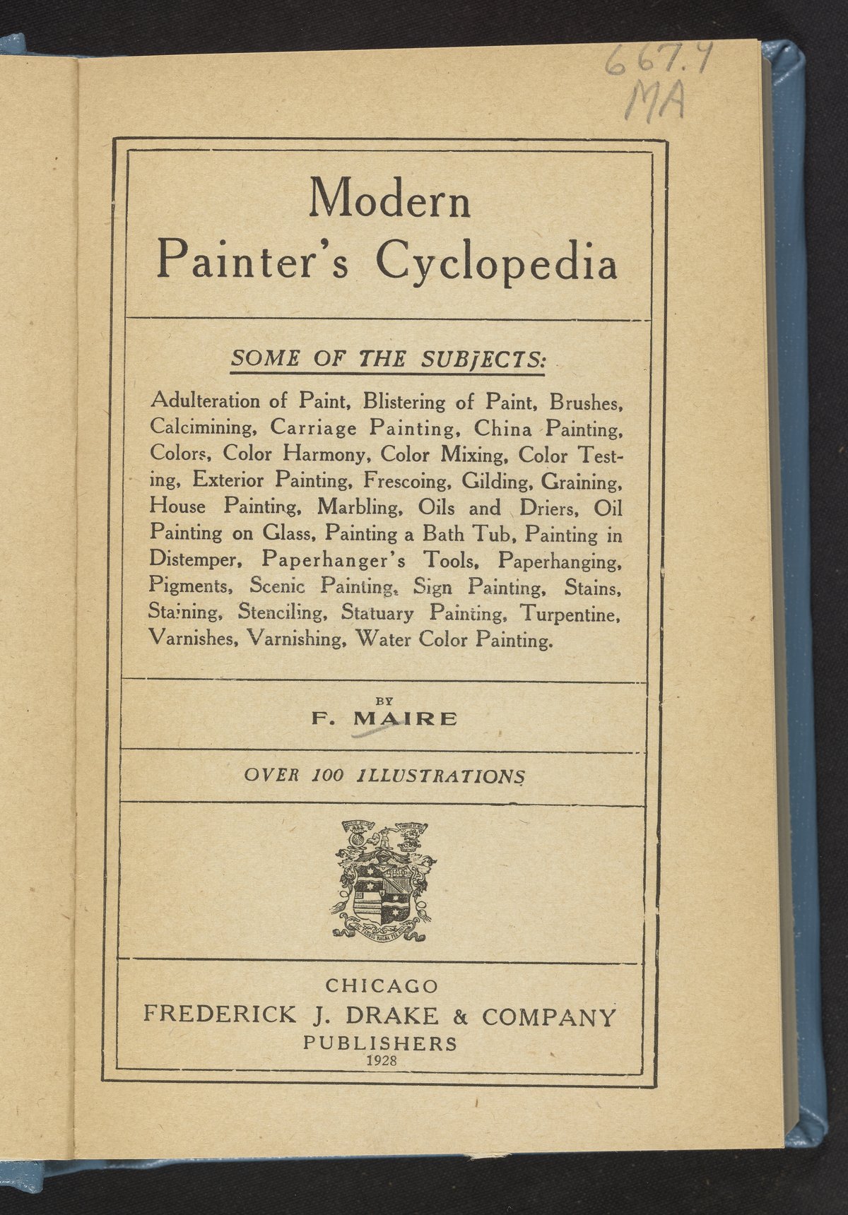 Maire, F. (Frederick). “Modern Painter's Cyclopedia.” Chicago, Illinois: Frederick J. Drake & Company, 1928. https://digital.sciencehistory.org/works/db78td198.