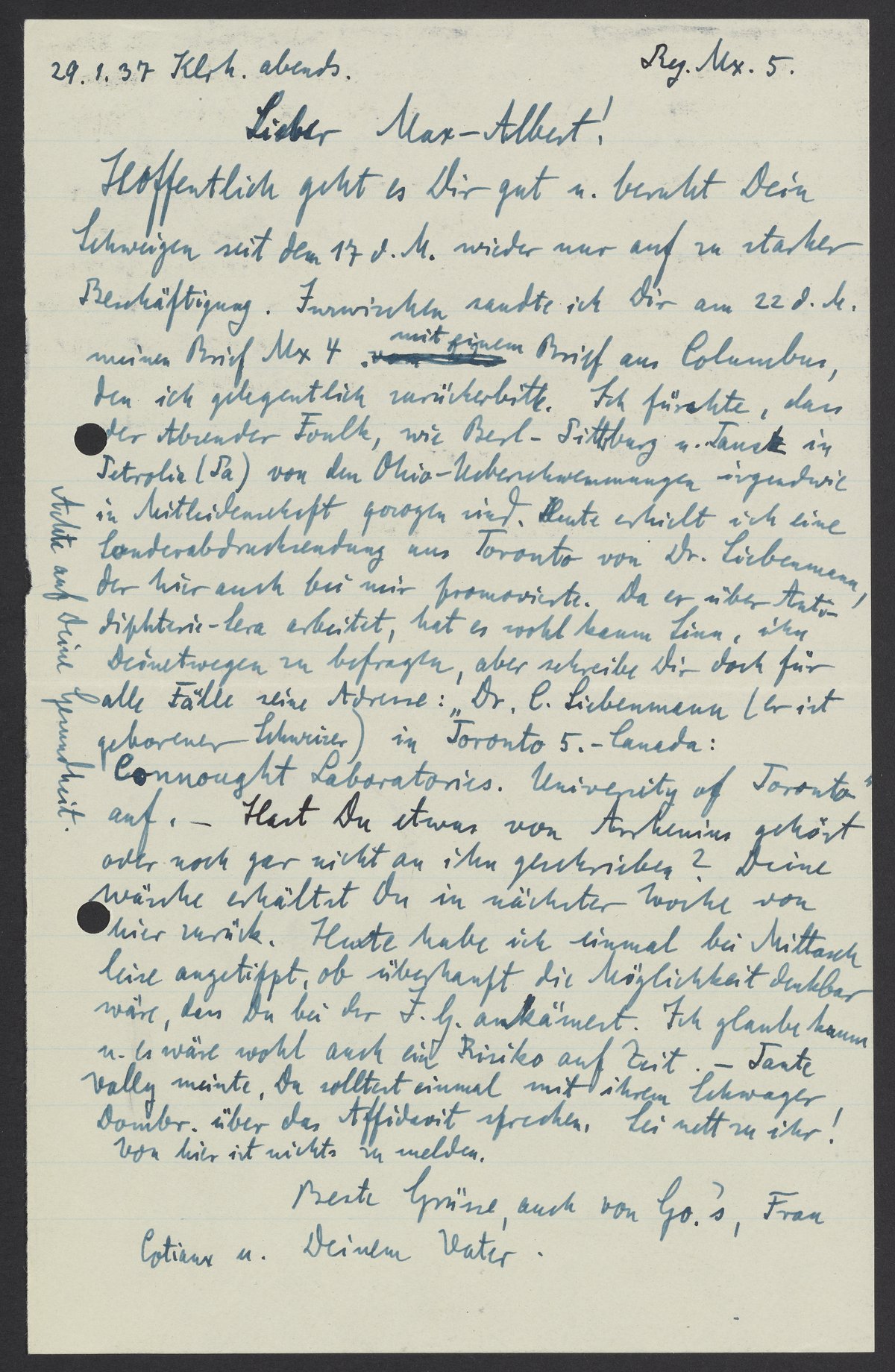 Letter from Georg Bredig to Max Bredig, January 29, 1937