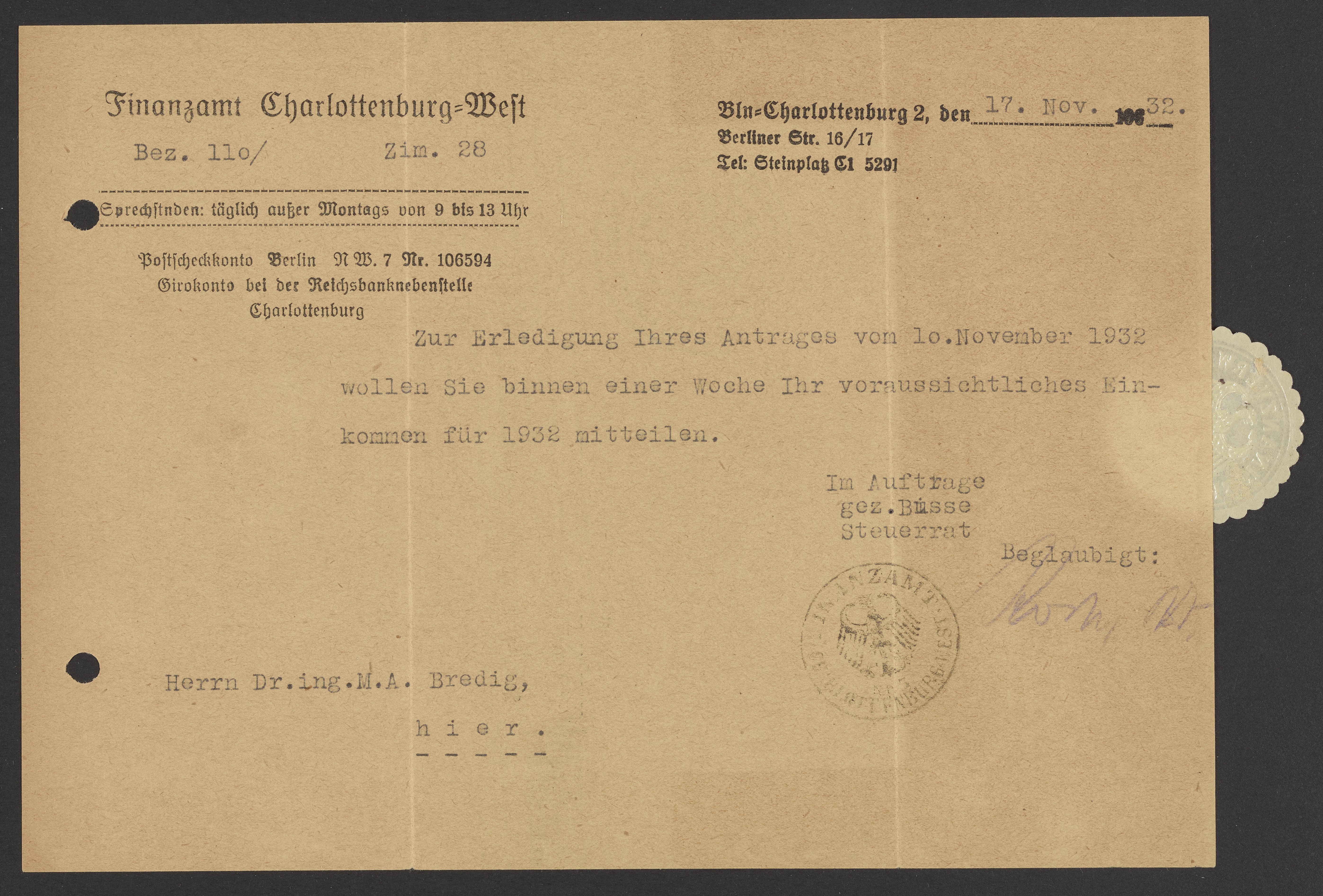 Small JPG1200 x 1786px — 373 KBFull-sized JPG2020 x 3006px — 965 KBOriginal fileTIFF — 2020 x 3006px — 17.4 MBVarious financial documents belonging to Max Albert Bredig (1902-1977) from 1932.