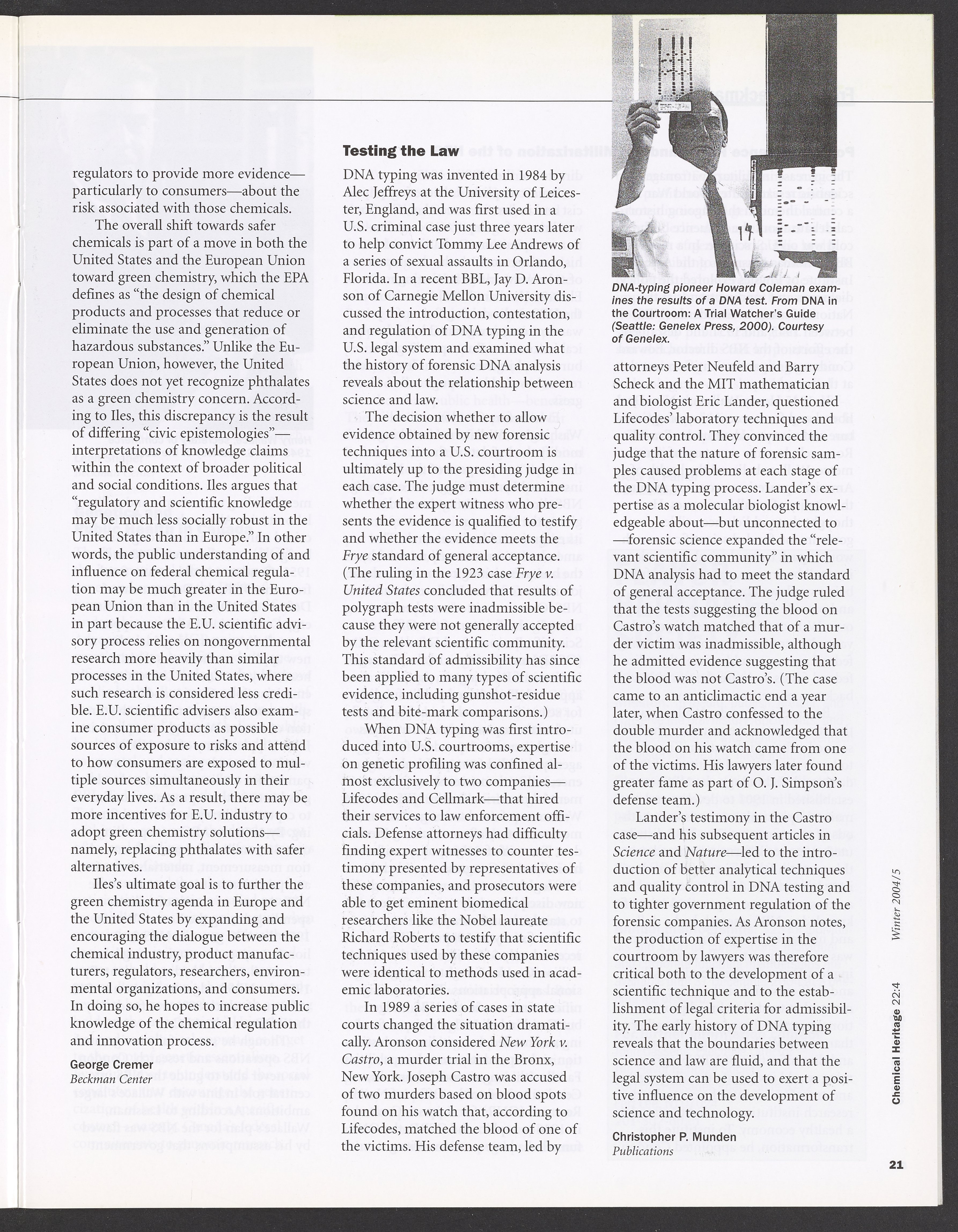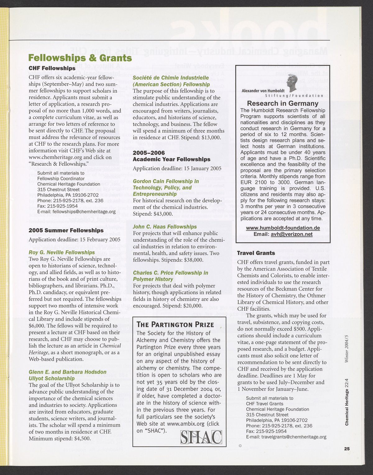 Chemical Heritage, Volume 22 Number 4