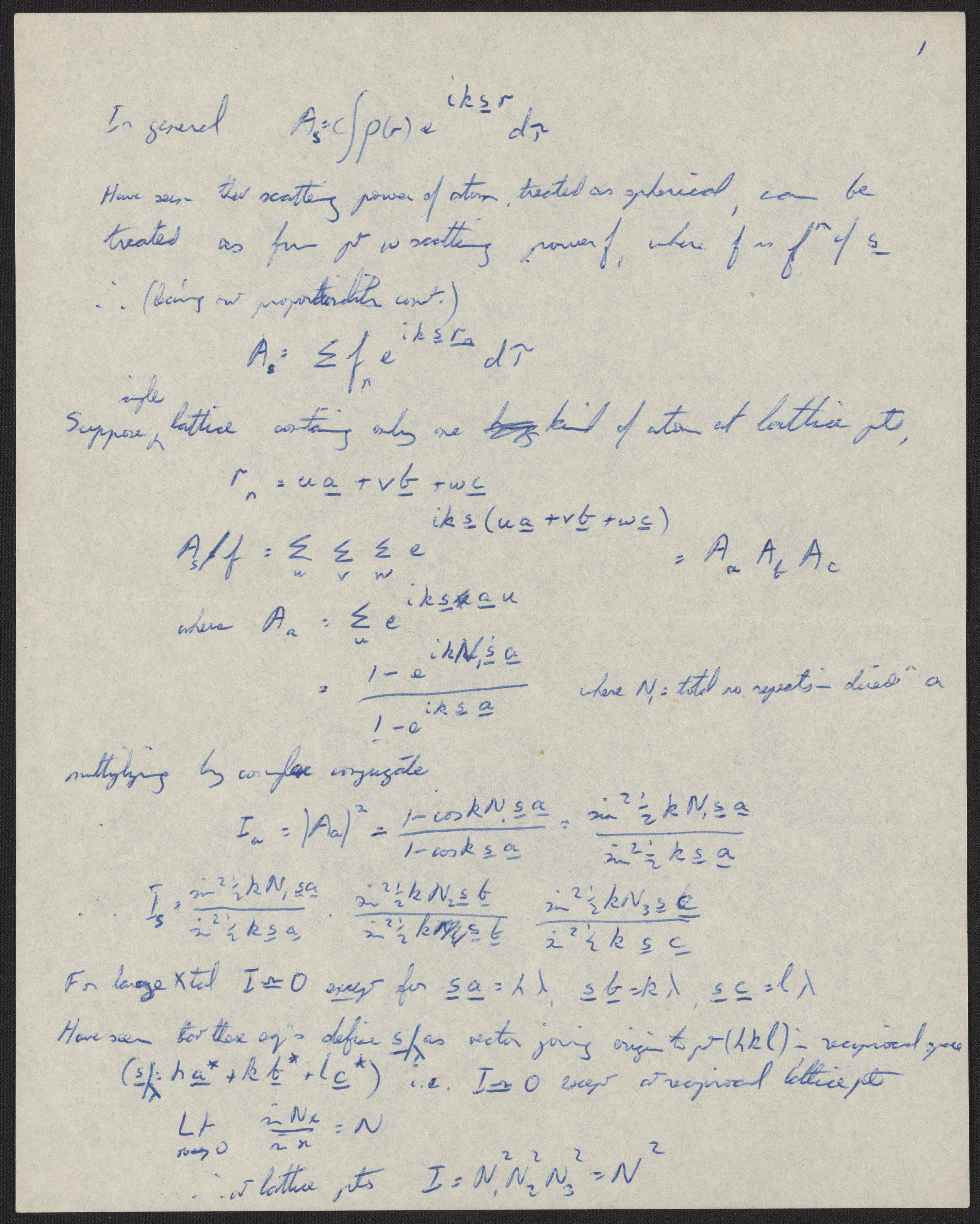 Franklin, Rosalind. “Five Lectures on x-Ray Diffraction,” 1953. History of Molecular Biology Collection, Box 9, Folder 10. Science History Institute. Philadelphia. https://digital.sciencehistory.org/works/dinupz6.