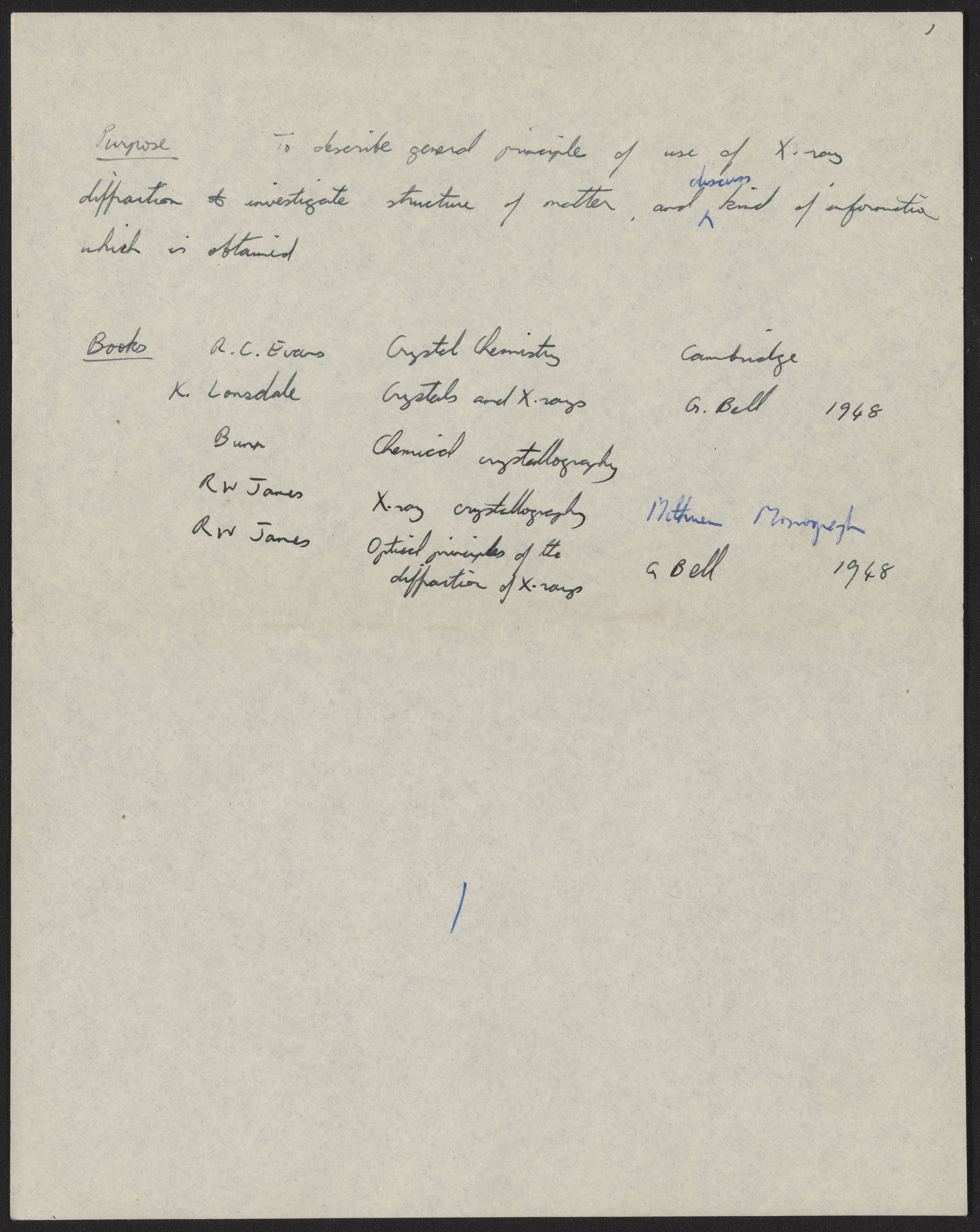 Franklin, Rosalind. “Five Lectures on x-Ray Diffraction,” 1953. History of Molecular Biology Collection, Box 9, Folder 10. Science History Institute. Philadelphia. https://digital.sciencehistory.org/works/dinupz6.