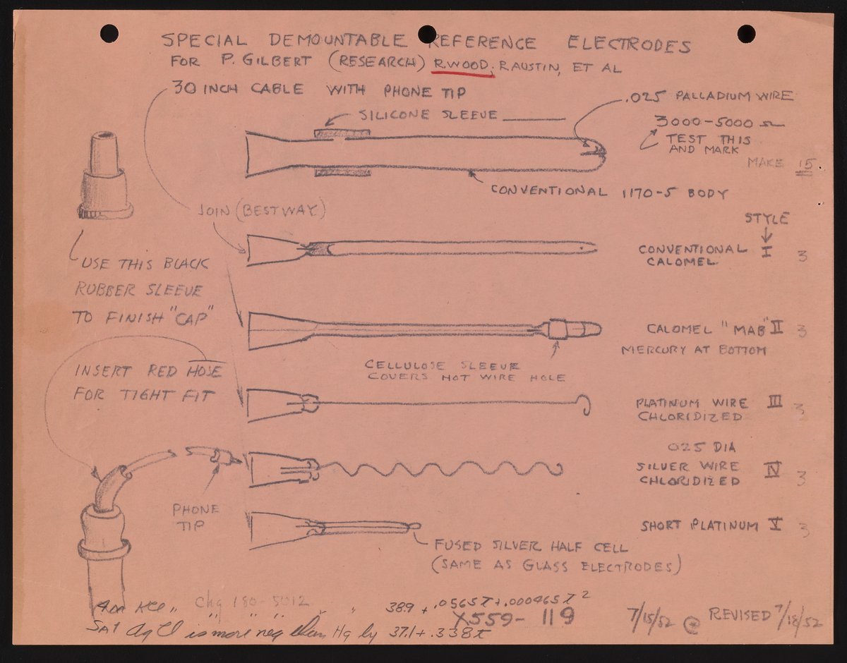 “Diagram of Special Demountable Reference Electrodes,” July 18, 1952. Beckman Historical Collection, Box 18, Folder 26. Science History Institute. Philadelphia. https://digital.sciencehistory.org/works/dn39x1888.