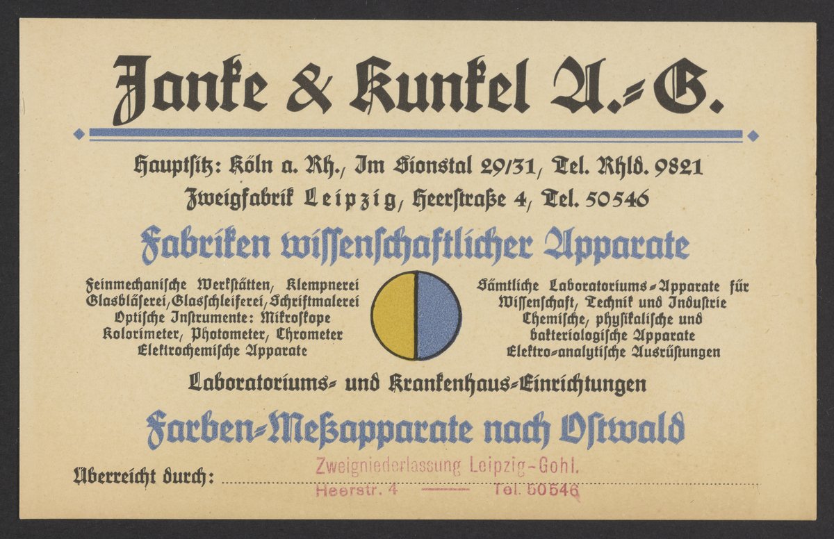 Janke & Kunkel AG. “Janke & Kunkel A. -G.,” circa 1930. Papers of Georg and Max Bredig, Box 3, Folder 3. Science History Institute. Philadelphia. https://digital.sciencehistory.org/works/dnel7ah.