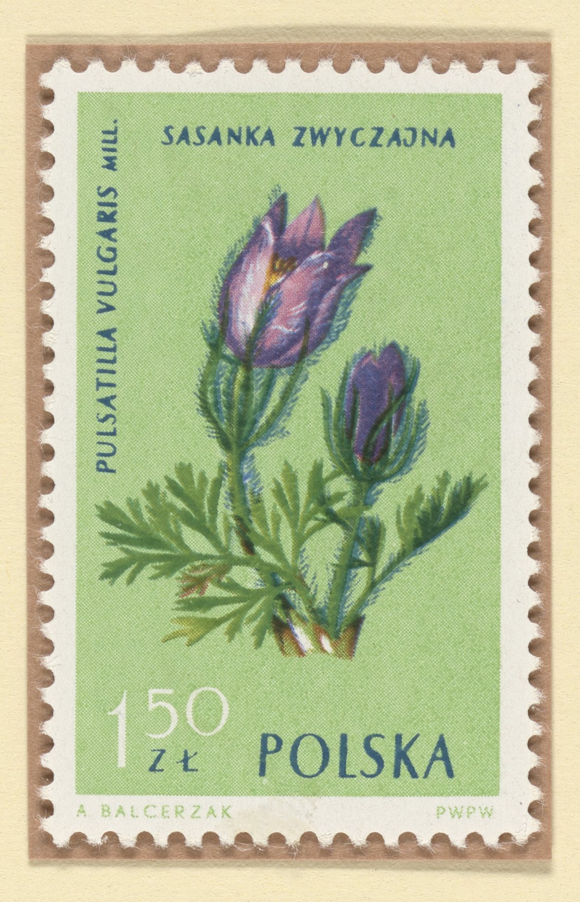 PDFFull-sized JPG1192 x 1852px — 438 KBOriginal fileTIFF — 1192 x 1852px — 6.3 MB1962 postage stamp from Poland featuring an illustration of a pasque flower (Pulsatilla vulgaris). Pasque flowers are considered an endangered species and are protected in Poland. This stamp is from a series of protected plants in Poland.