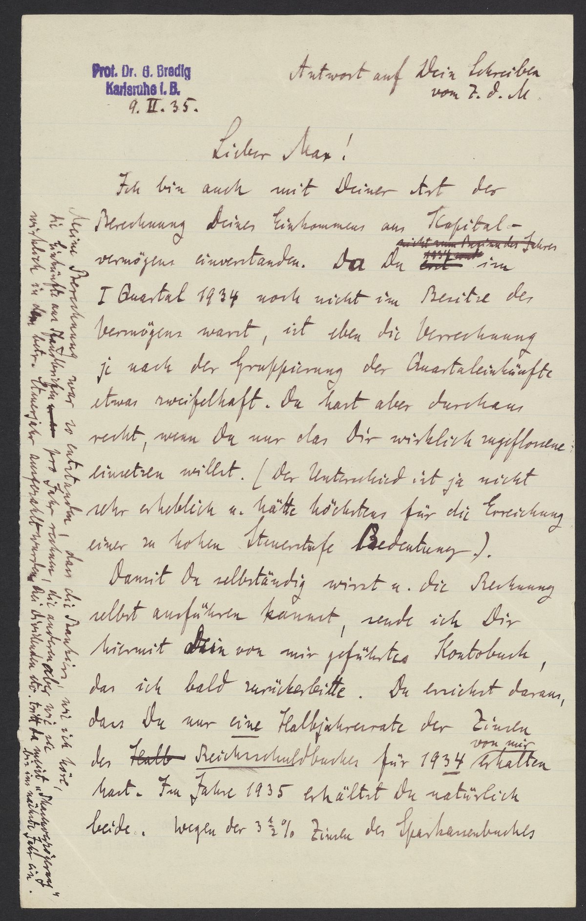Letter from Georg Bredig to Max Bredig, February 9, 1935