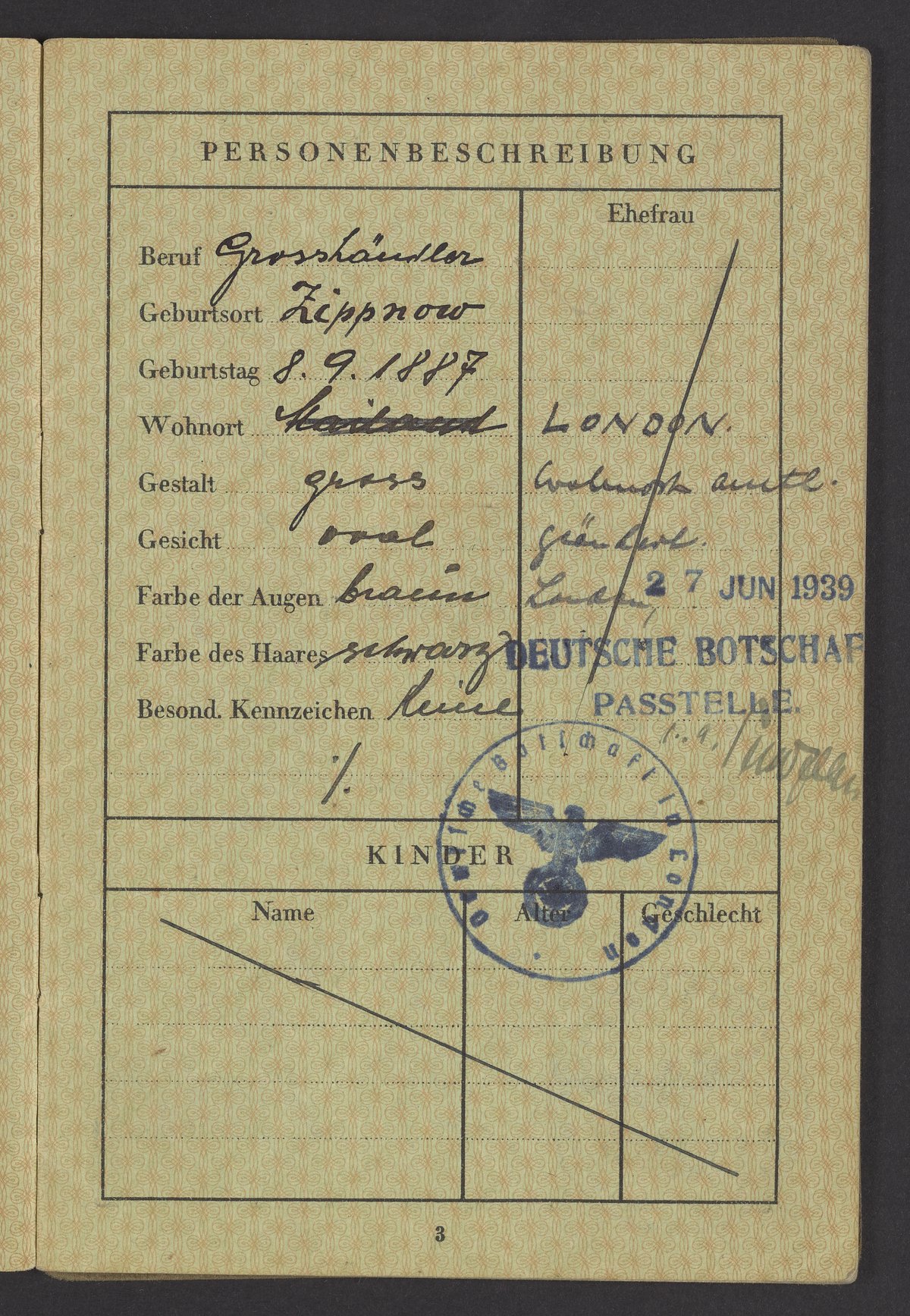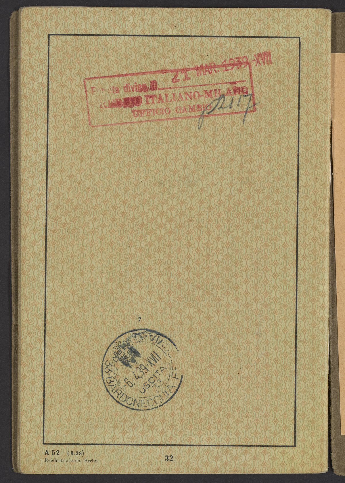 Small JPG1200 x 1708px — 442 KBLarge JPG2880 x 4098px — 2.5 MBFull-sized JPG2894 x 4118px — 2.6 MBOriginal fileTIFF — 2894 x 4118px — 34.2 MBMax Mislow's (1887-1963) German Reich passport, issued on December 29, 1938 by the General Consulate of Germany in Milan, Italy. Max Mislow was the father of Kurt M. Mislow (1923-2017).
