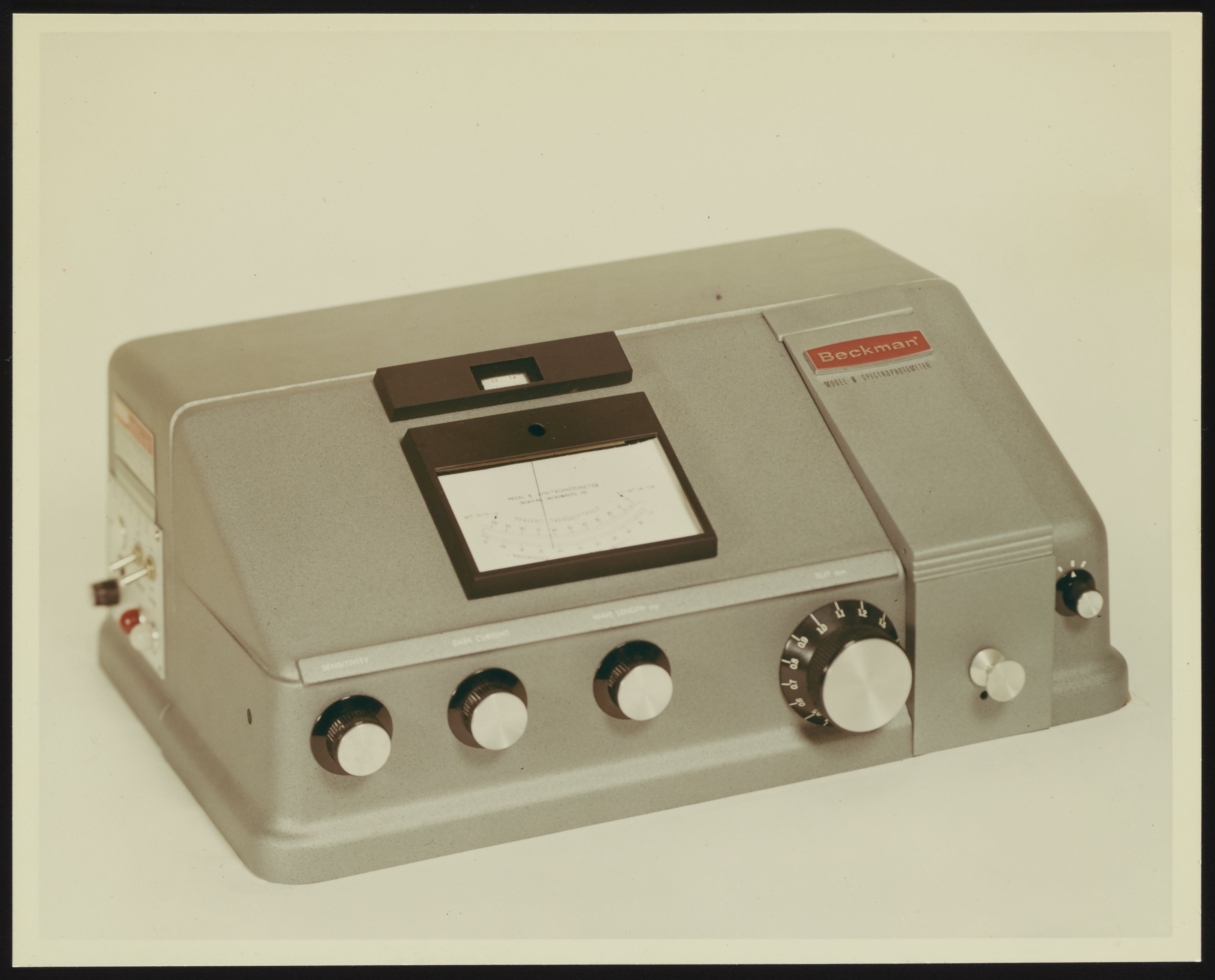 “Beckman Model B Spectrophotometer,” 1948. Beckman Historical Collection, Box 56, Folder 1. Science History Institute. Philadelphia. https://digital.sciencehistory.org/works/dz010q15f.