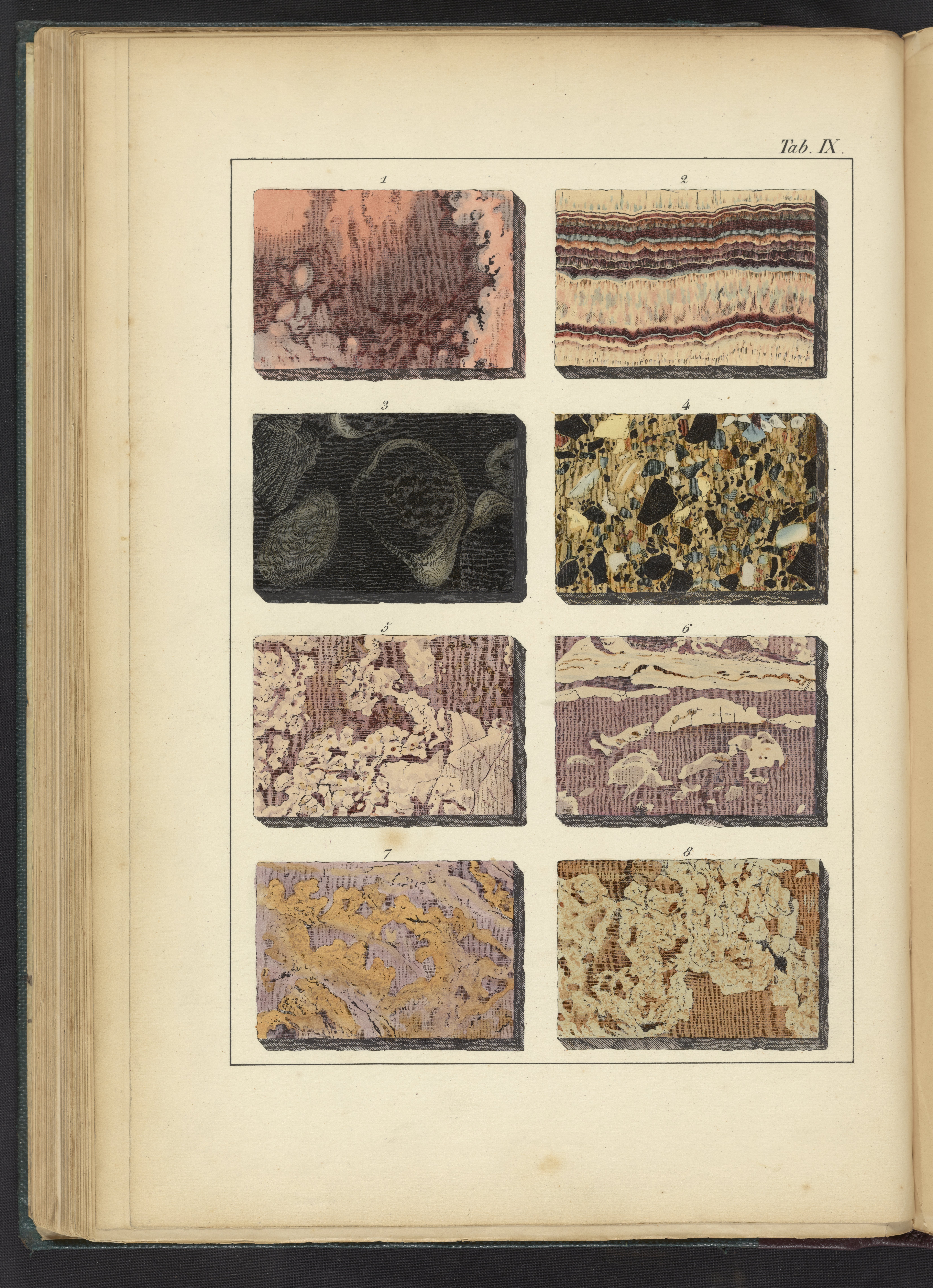 Kurr, J. G. (Johann Gottlob). “Plate IX: Carbonates of Lime, Marble.” In The Mineral Kingdom. Edinburgh, Scotland: Edmonston and Douglas, 1859. https://digital.sciencehistory.org/works/ea54w8f.
