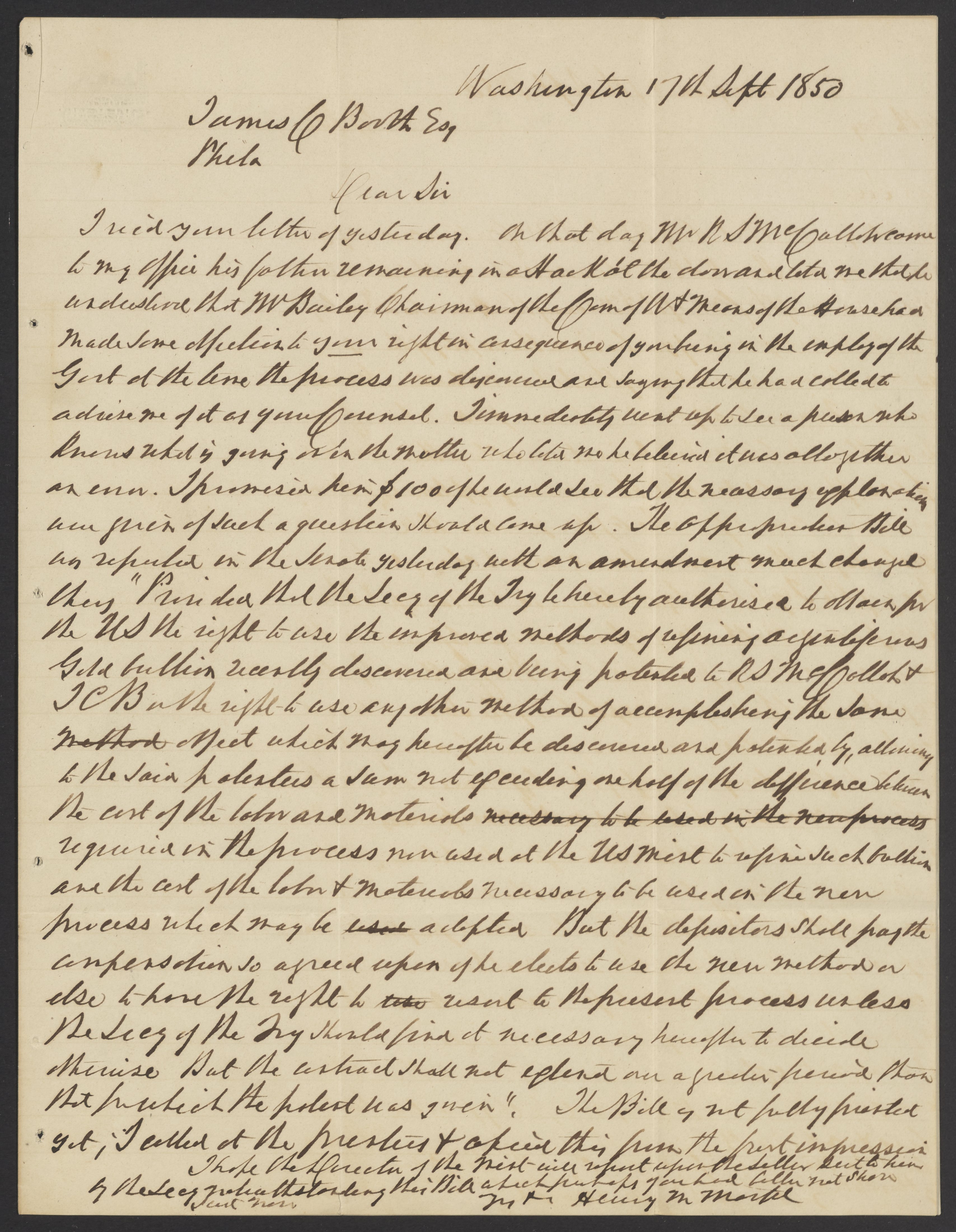 Letter from Henry M. Morfit to James Curtis Booth, September 17, 1850