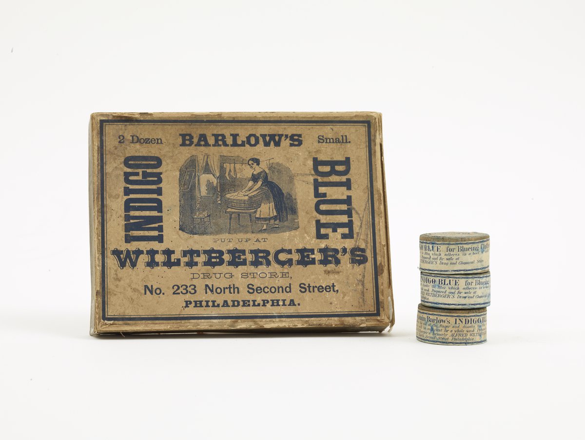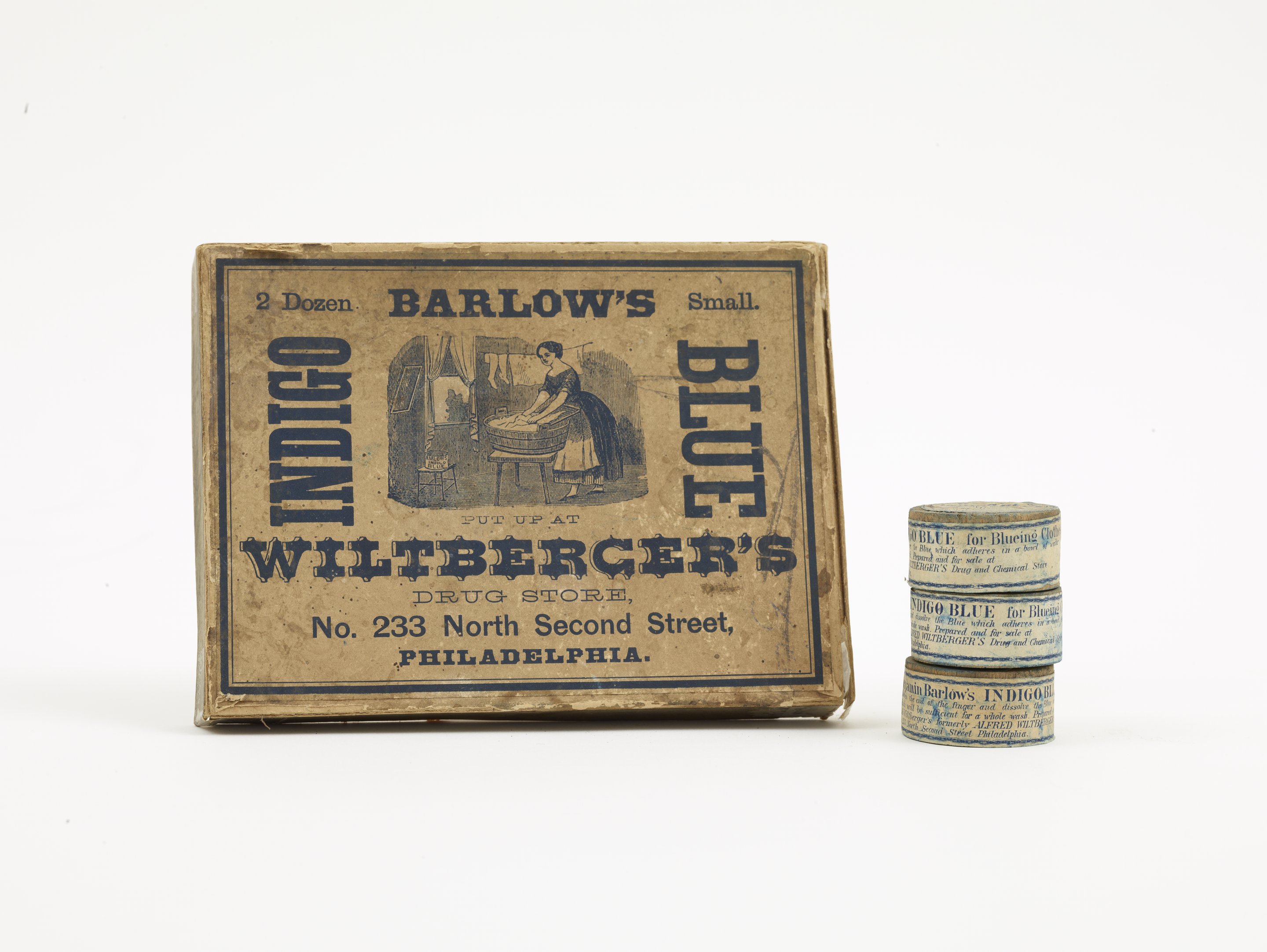 Indigo is among the oldest dyes to be used for textile dyeing and printing. Barlow's brand indigo dye was manufactured in Philadelphia by the Wiltberger family, who ran Wiltberger's drug store from 1815 to 1896. Their successors, Pfromm and Kindig, continued to produce Barlow's indigo blue dye into the 20th century.