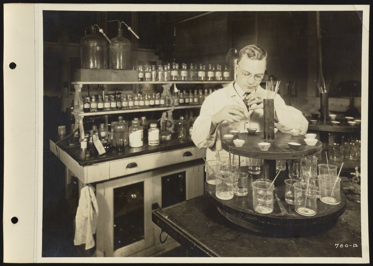 Anton H.R. Noreen testing sample at Dearborn laboratory facility