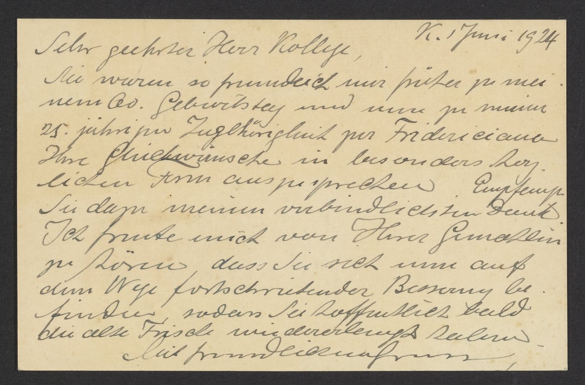 Postcard from Oscar Bie to Georg Bredig, May 1915Circa 1915 (30 May)