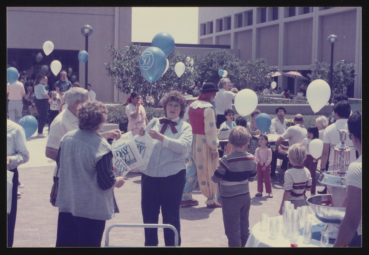 “Beckman Day Open House.” Beckman Instruments 50th Anniversary Celebrations, April 26, 1985. Beckman Historical Collection, Box 58, Folder 44. Science History Institute. Philadelphia. https://digital.sciencehistory.org/works/f7623c96f.