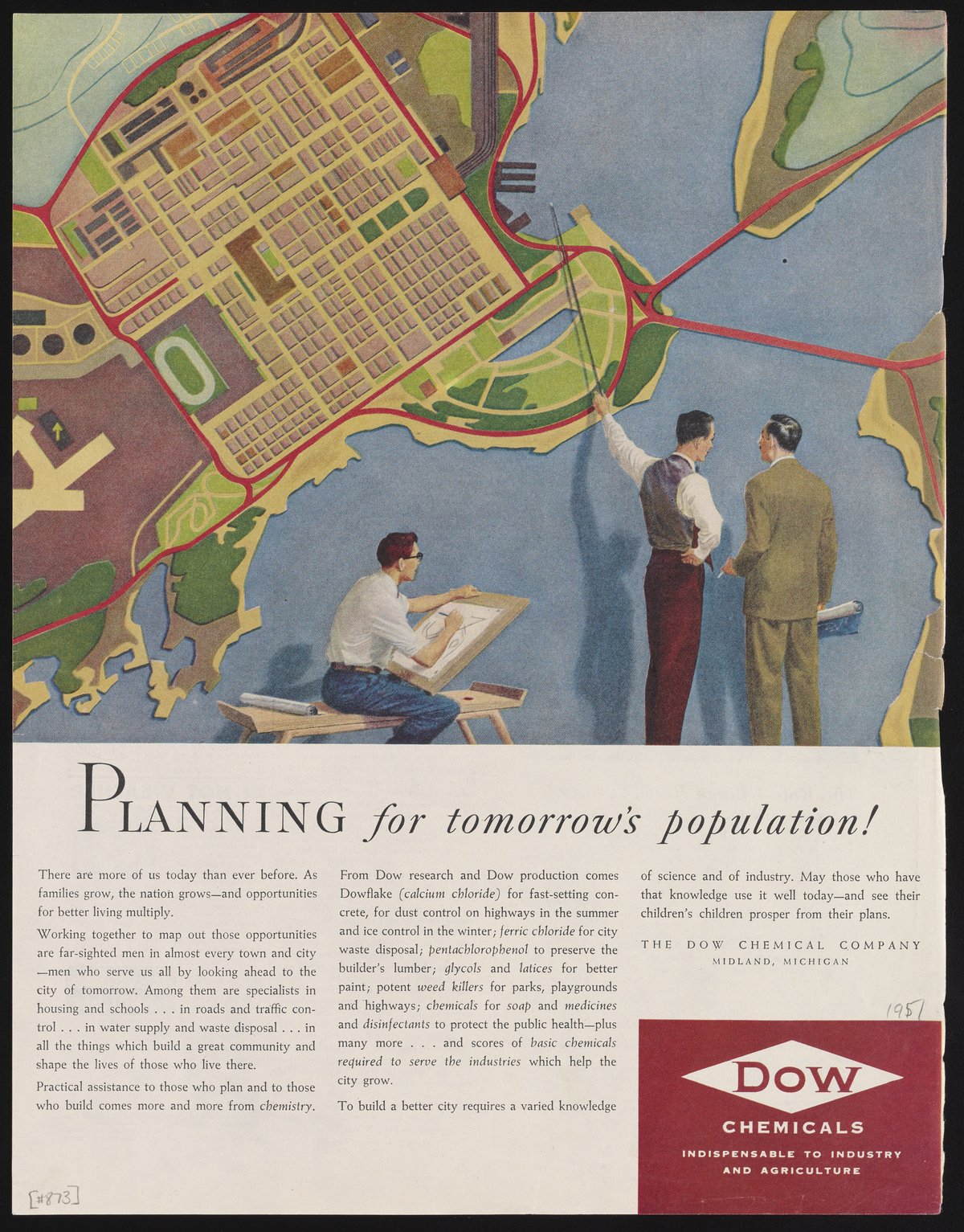 Dow Chemical Company. “Planning for Tomorrow's Population,” circa 1951. Advertisements from the Dow Chemical Historical Collection, Box 9. Science History Institute. Philadelphia. https://digital.sciencehistory.org/works/f9wsap4.