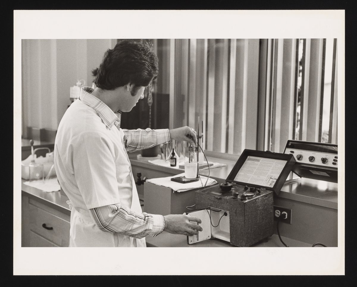 Unidentified man using a Beckman Model G pH meter