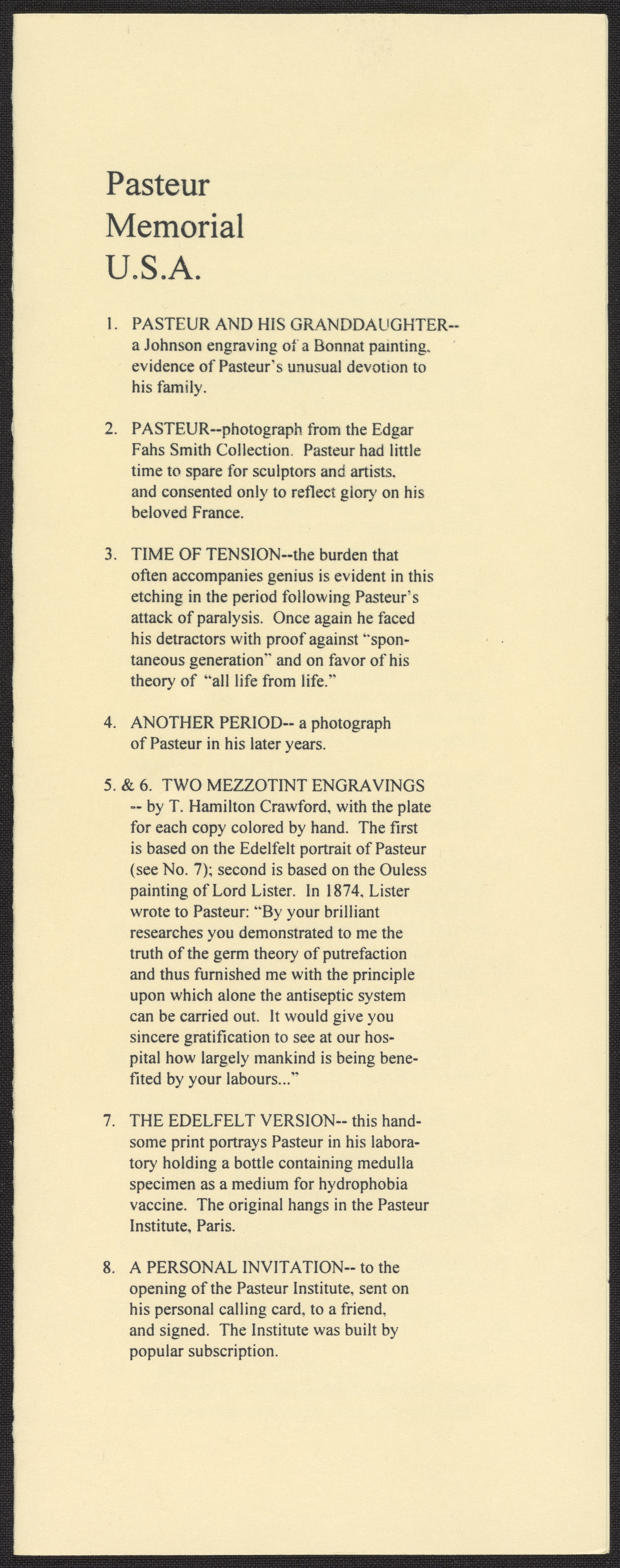 “Catalog for Louis Pasteur Exhibition,” circa 1990. Fisher-Pasteur Memorial Collection, Box 1, Folder 24. Science History Institute. Philadelphia. https://digital.sciencehistory.org/works/ff365529b.