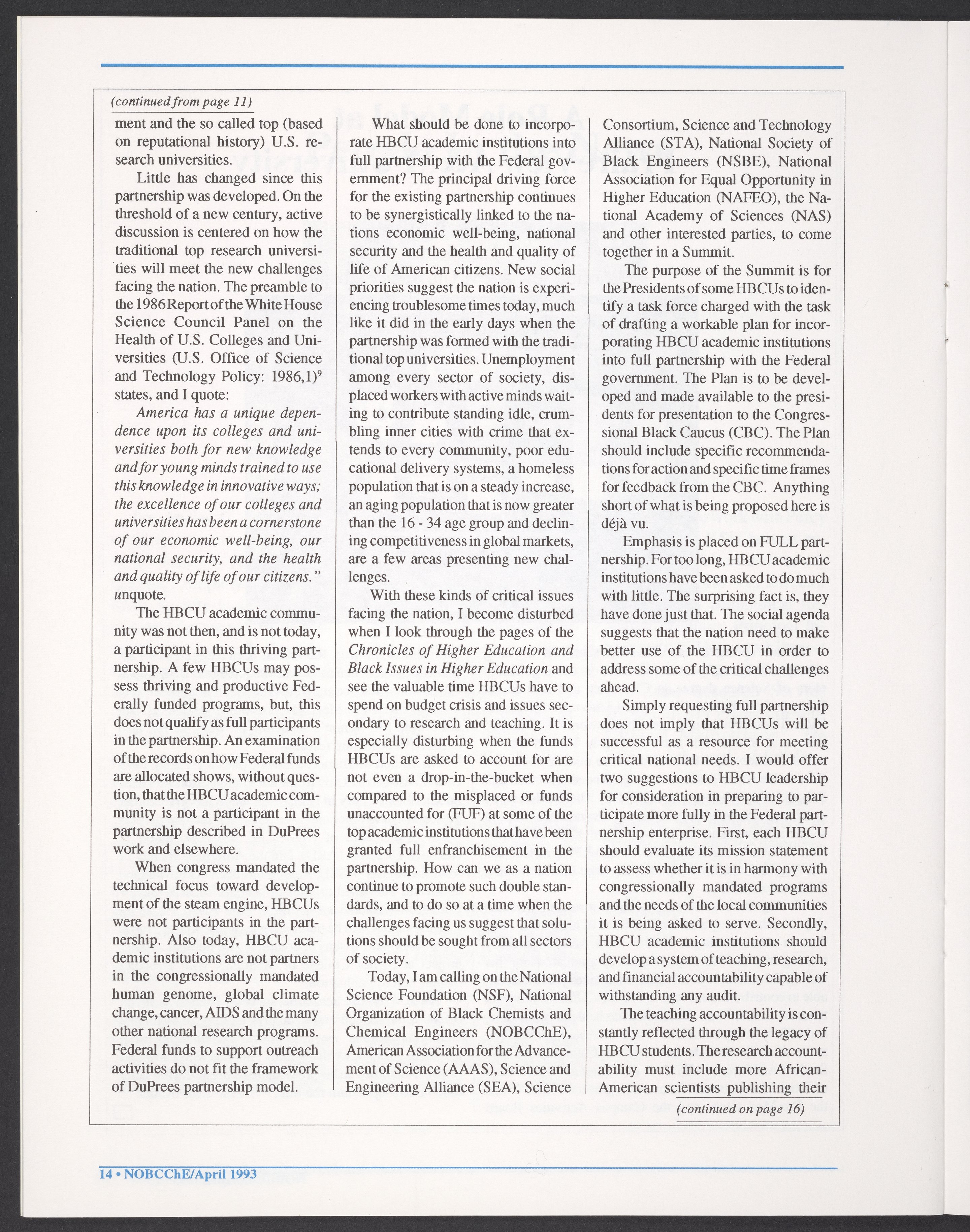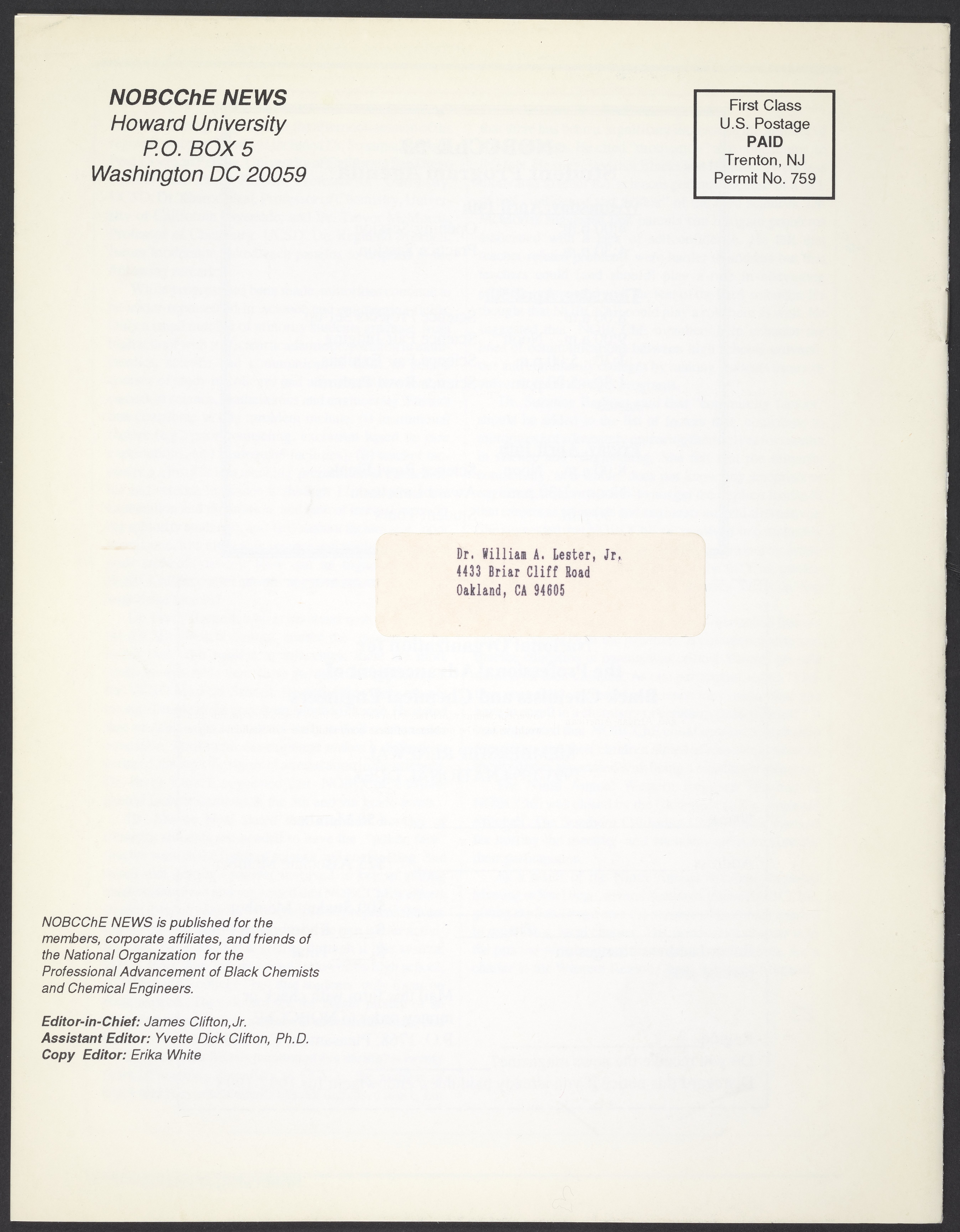 “NOBCChE News, Volume 14, Number 2.” Washington (D.C.): National Organization for Black Chemists and Chemical Engineers, April 1993. William A. Lester, Jr. Papers, Box 46, Folder 28. Science History Institute. Philadelphia. https://digital.sciencehistory.org/works/fg9f9rk.