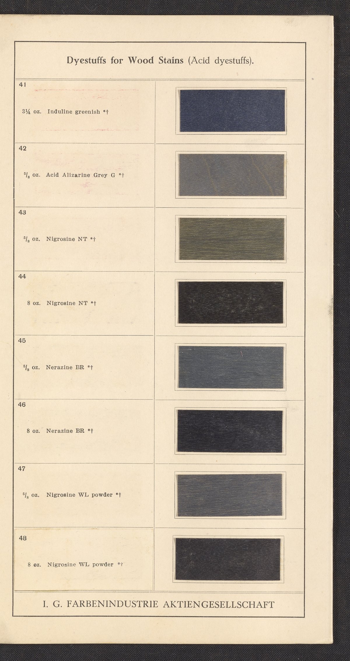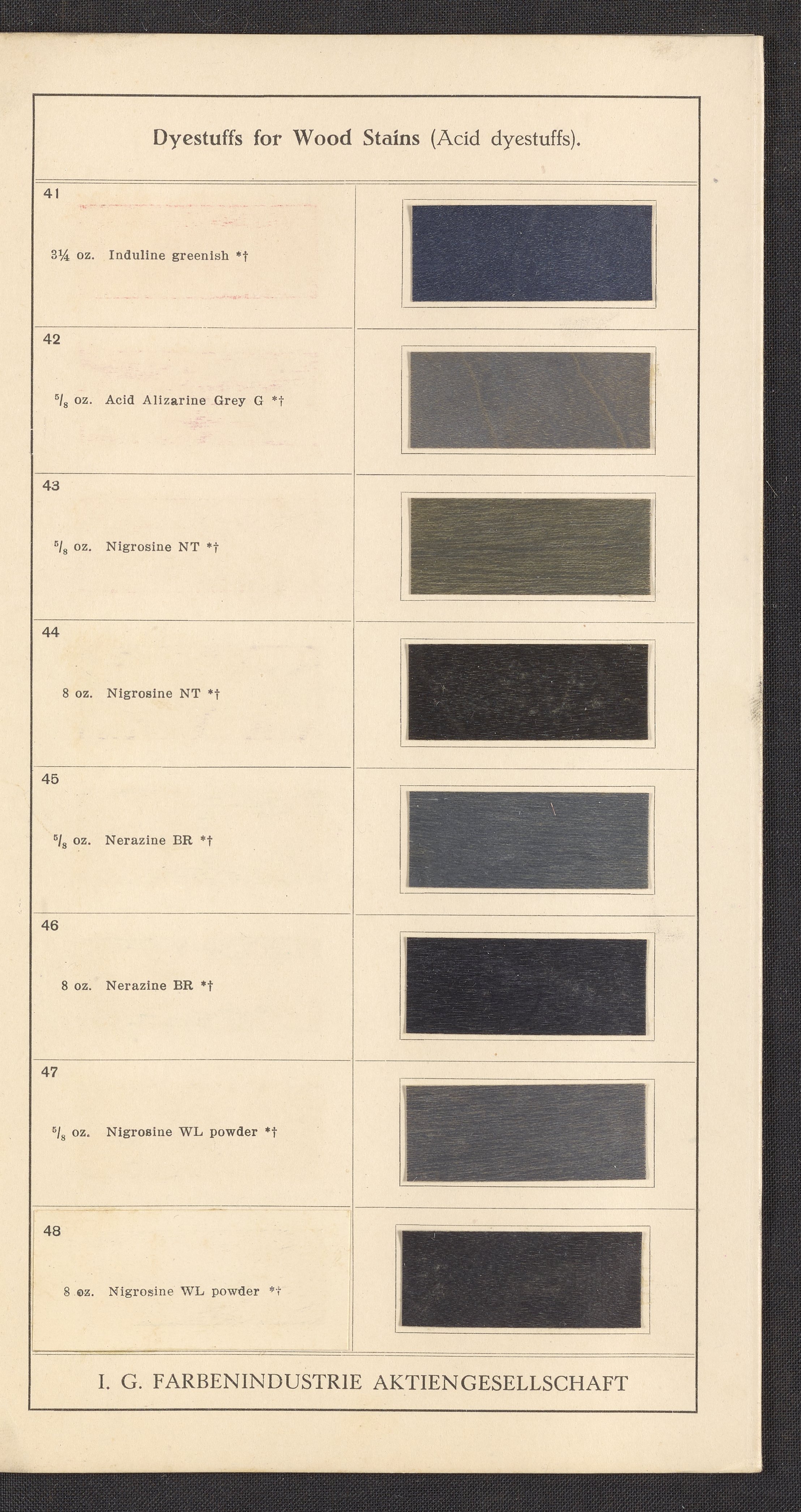General Dyestuff Corporation, and Interessengemeinschaft Farbenindustrie Aktiengesellschaft. Dyestuffs for Wood Stains, 1900–1999. https://digital.sciencehistory.org/works/fi2su8a.