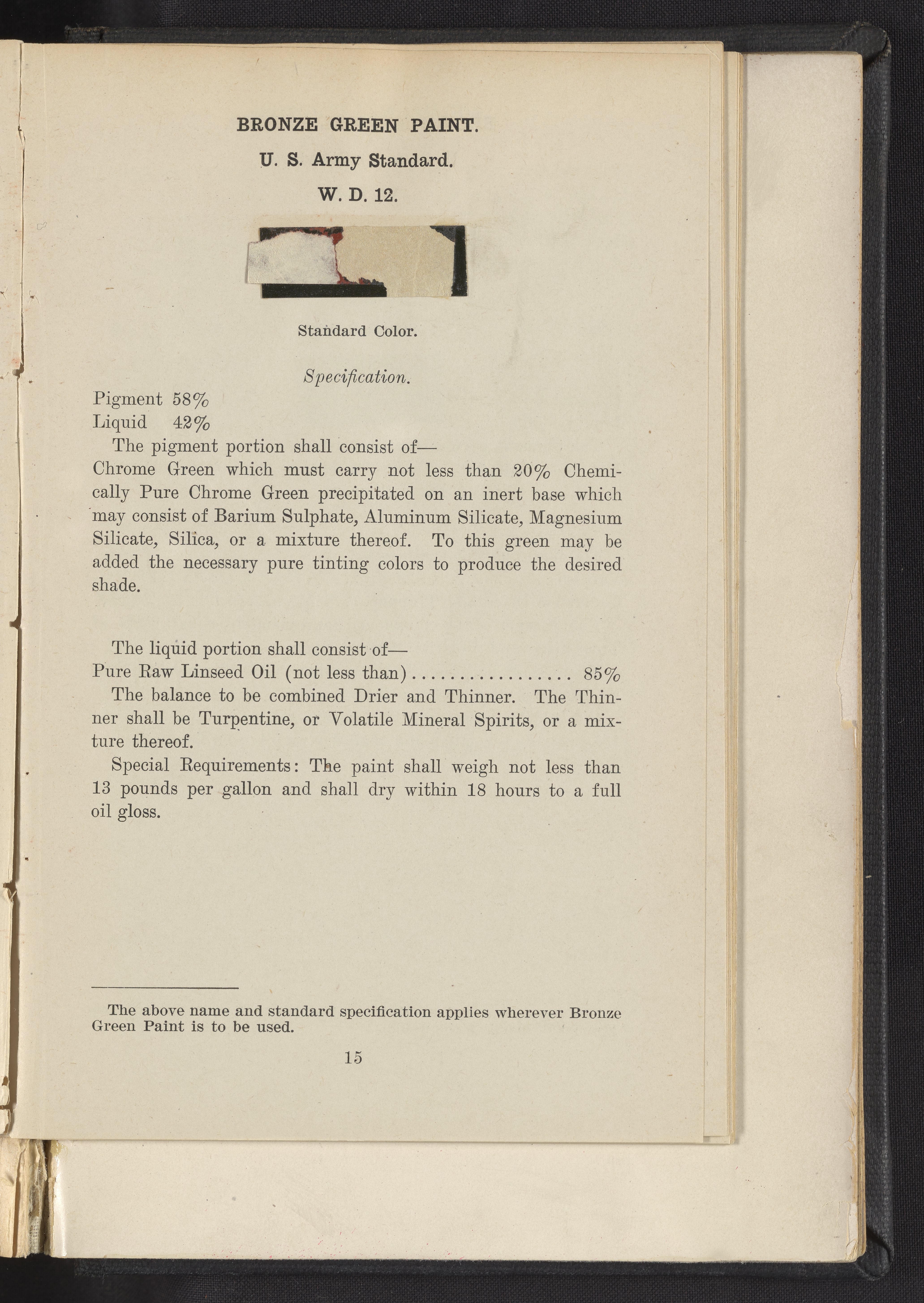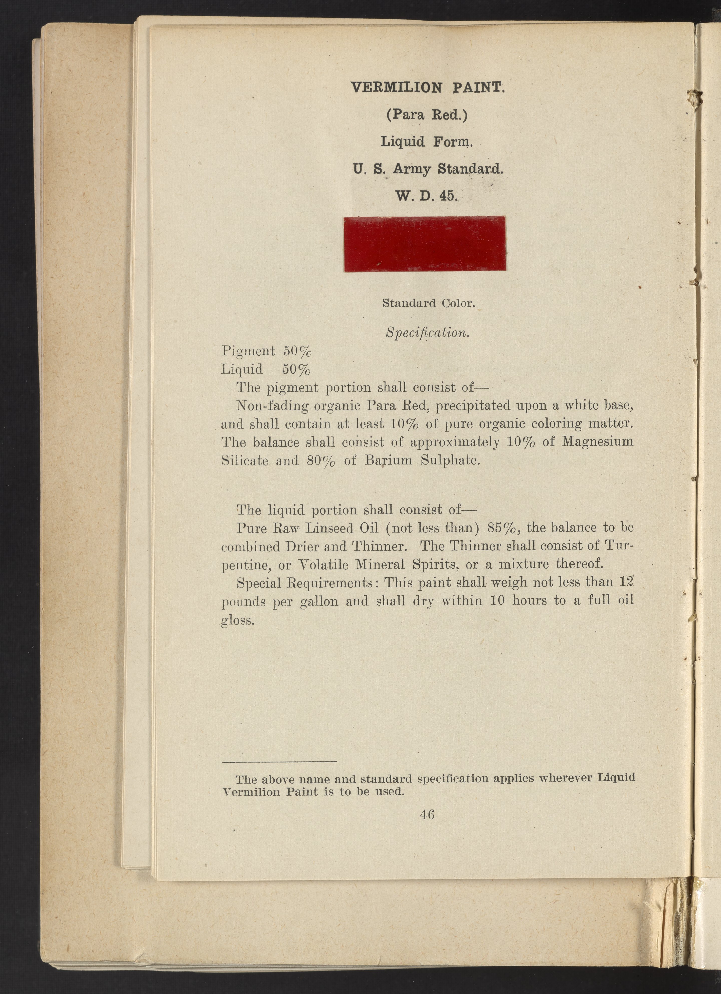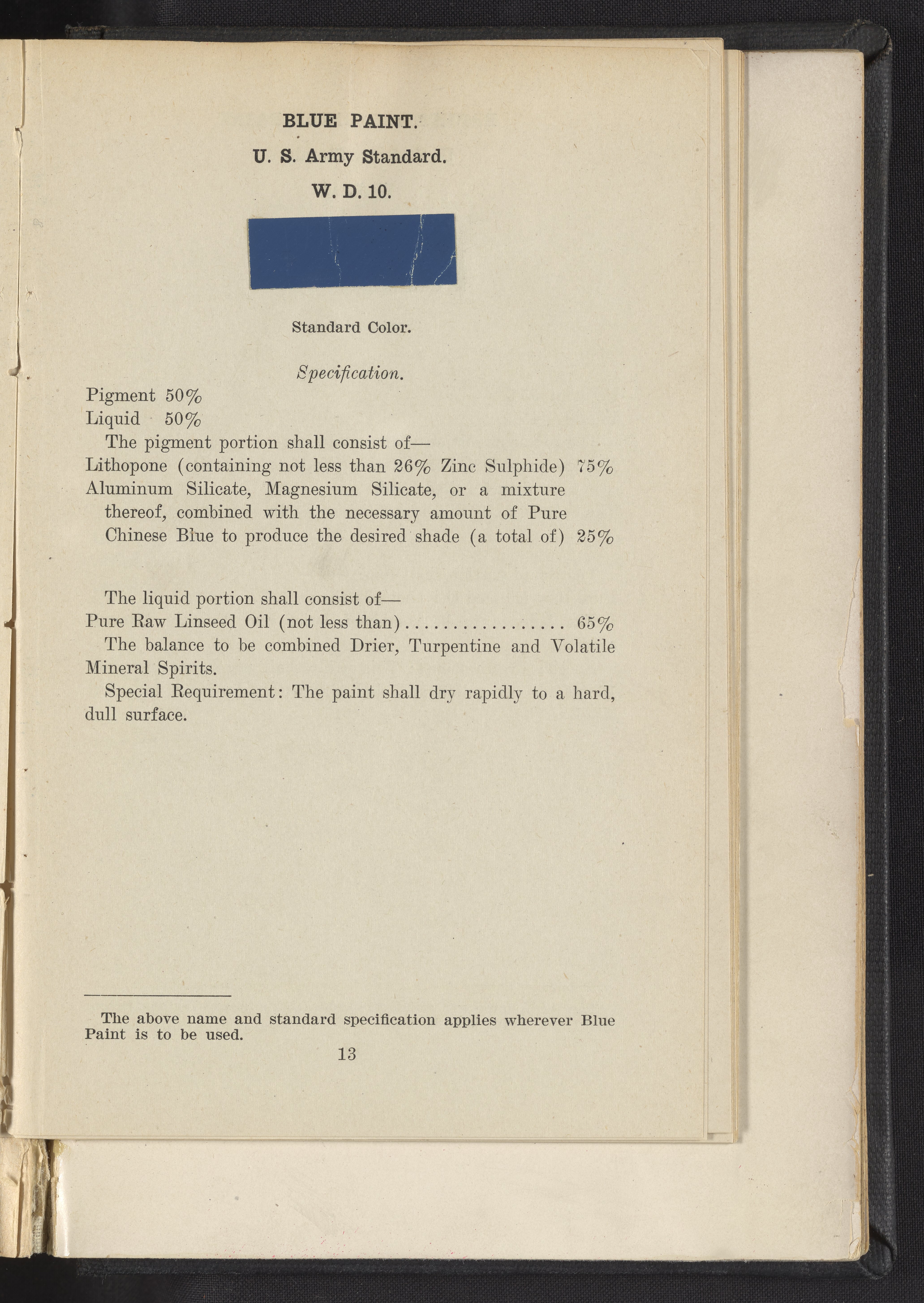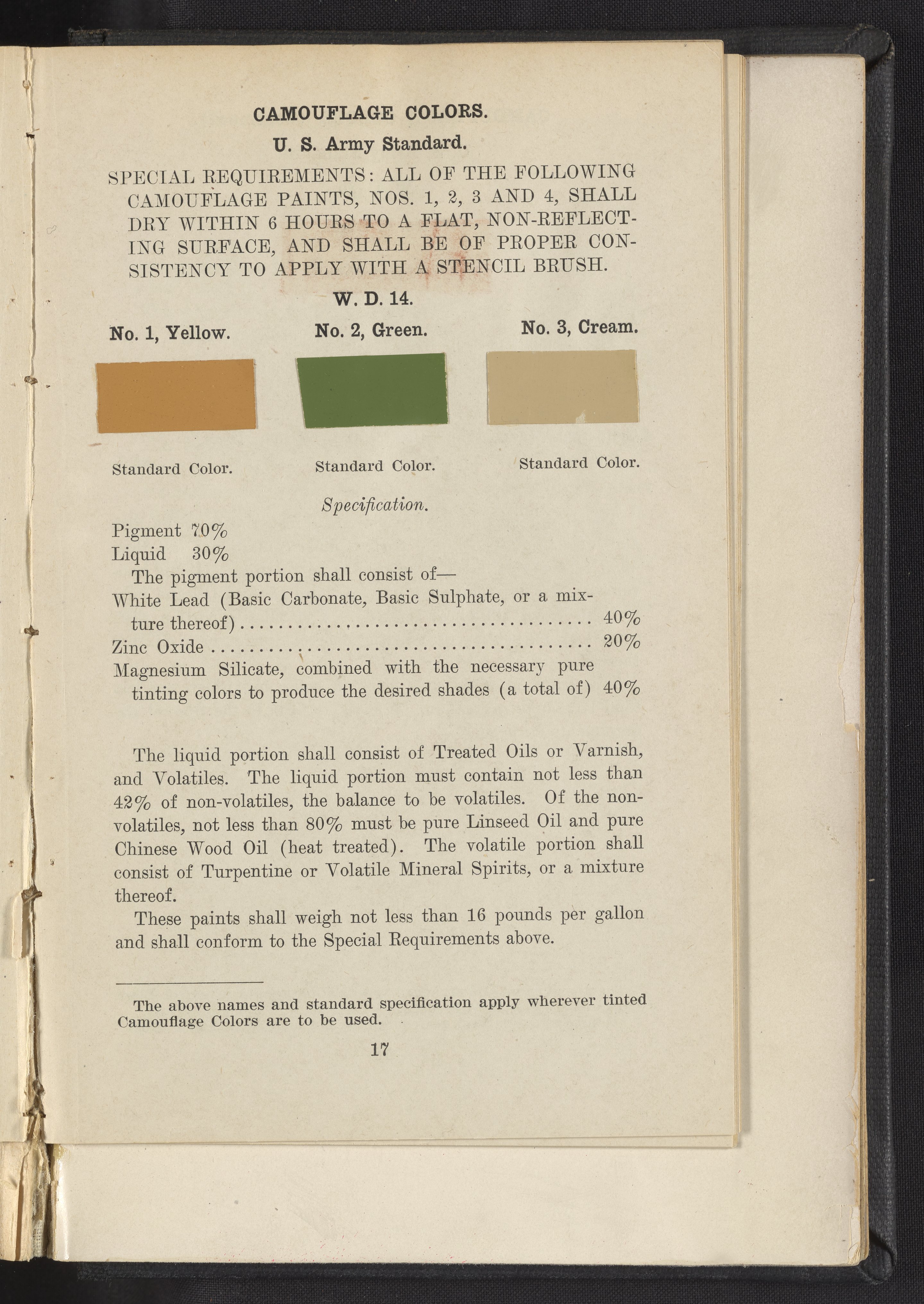 Standard Paint Specifications of the War Department, Pamphlet No. 1
