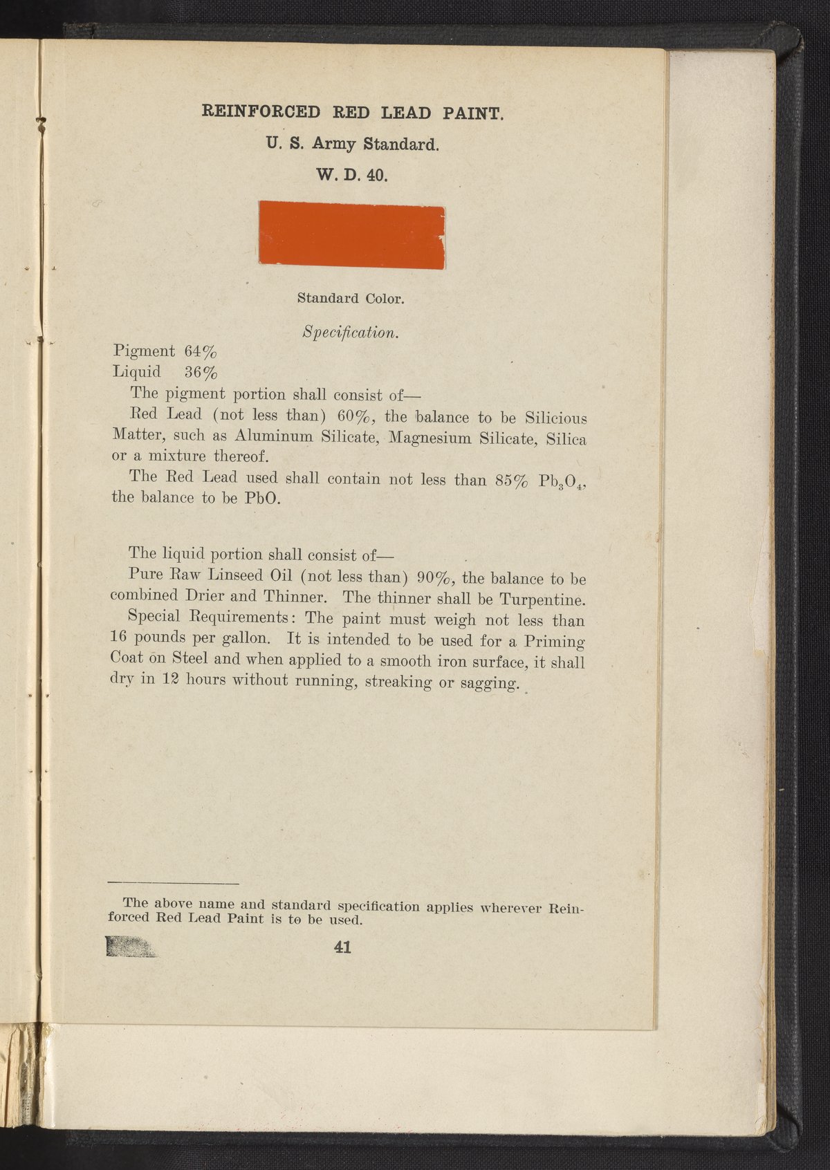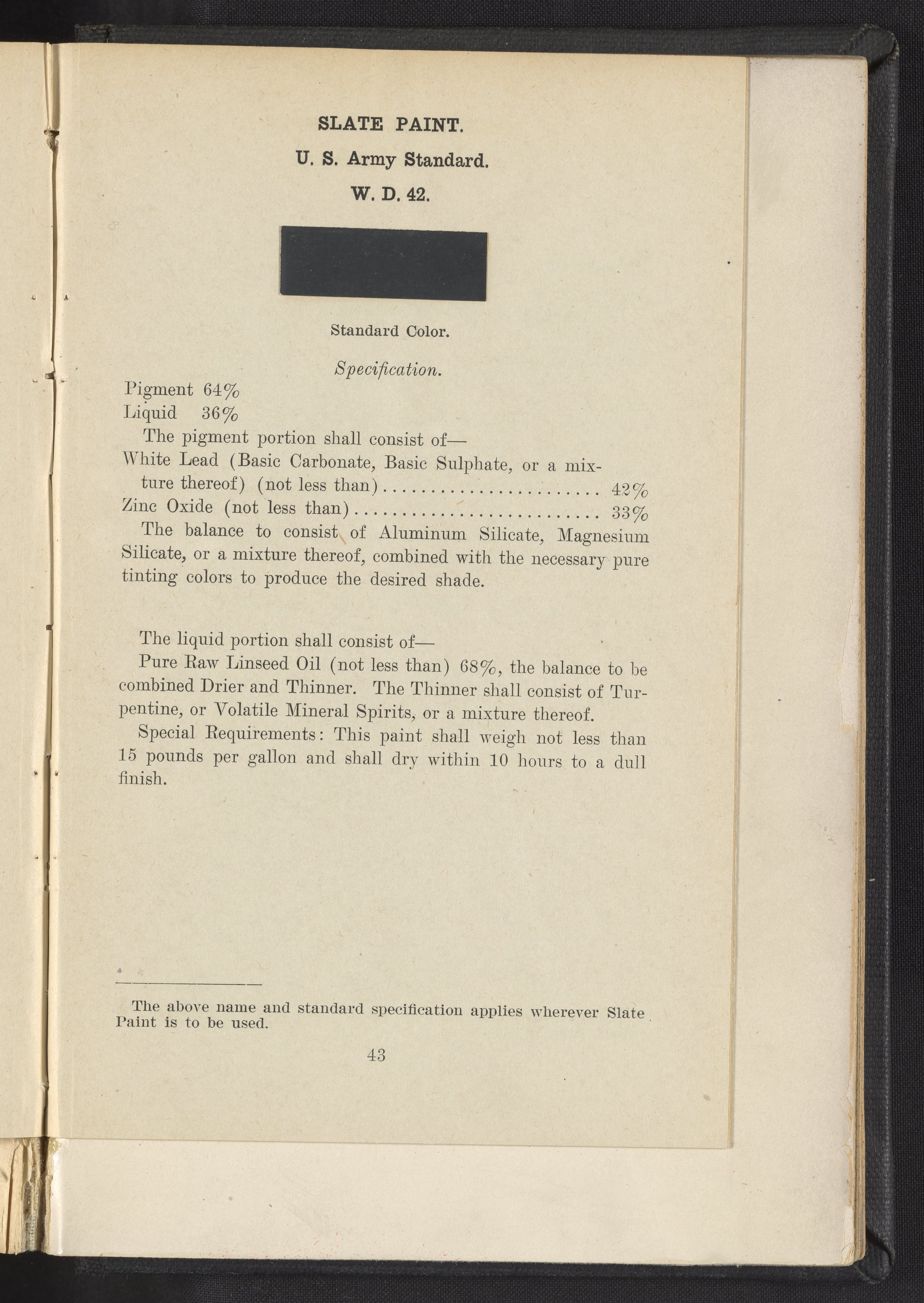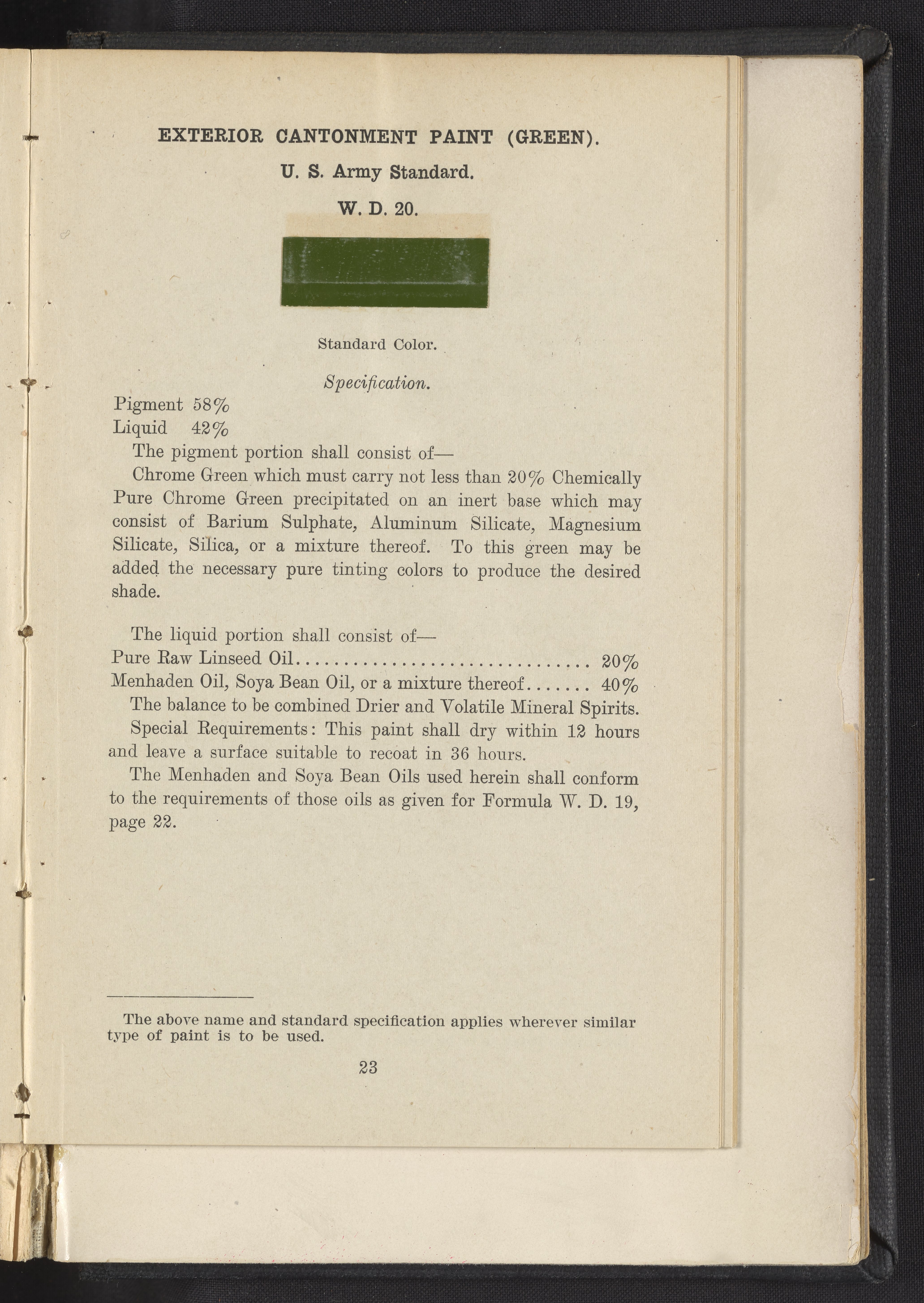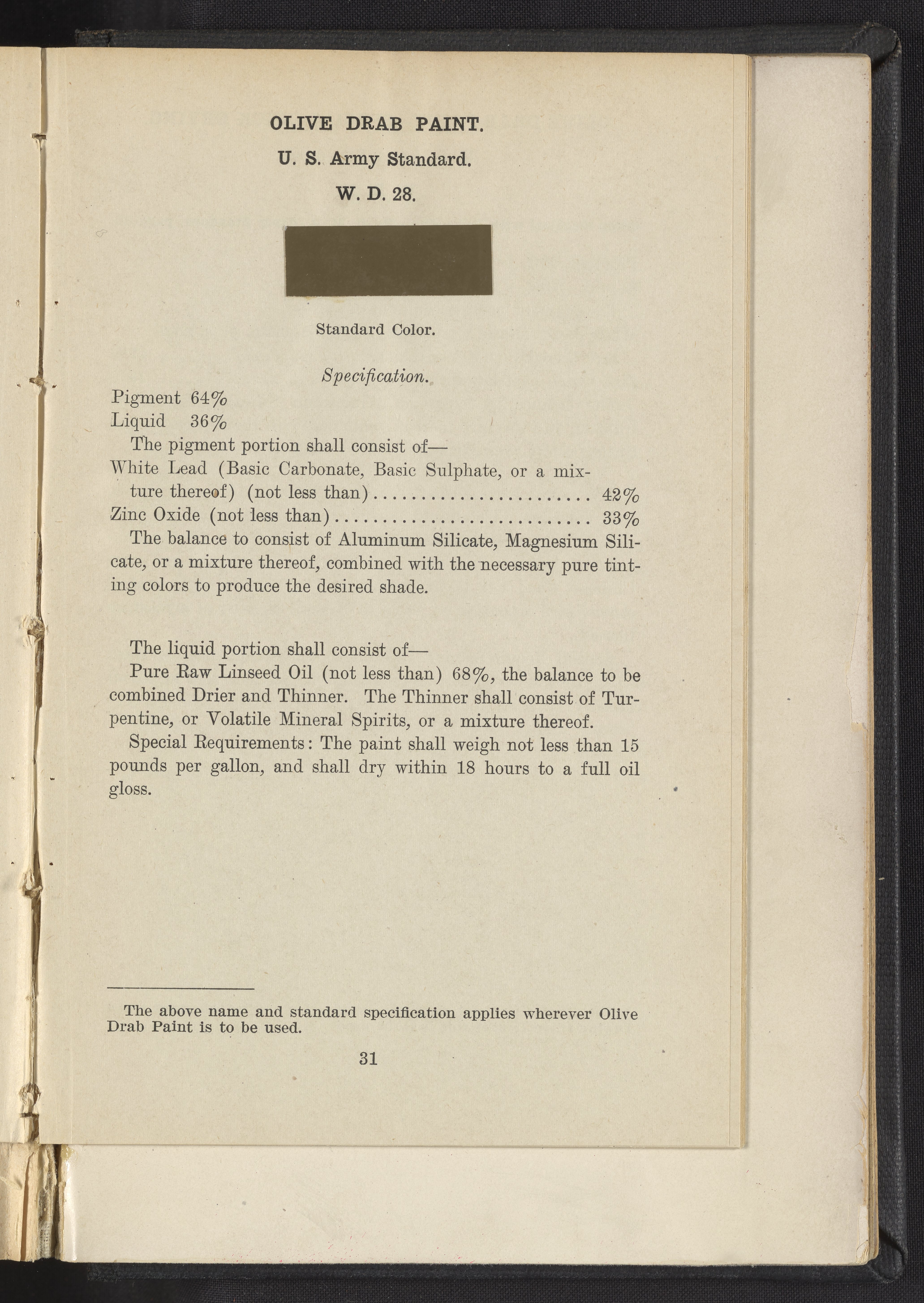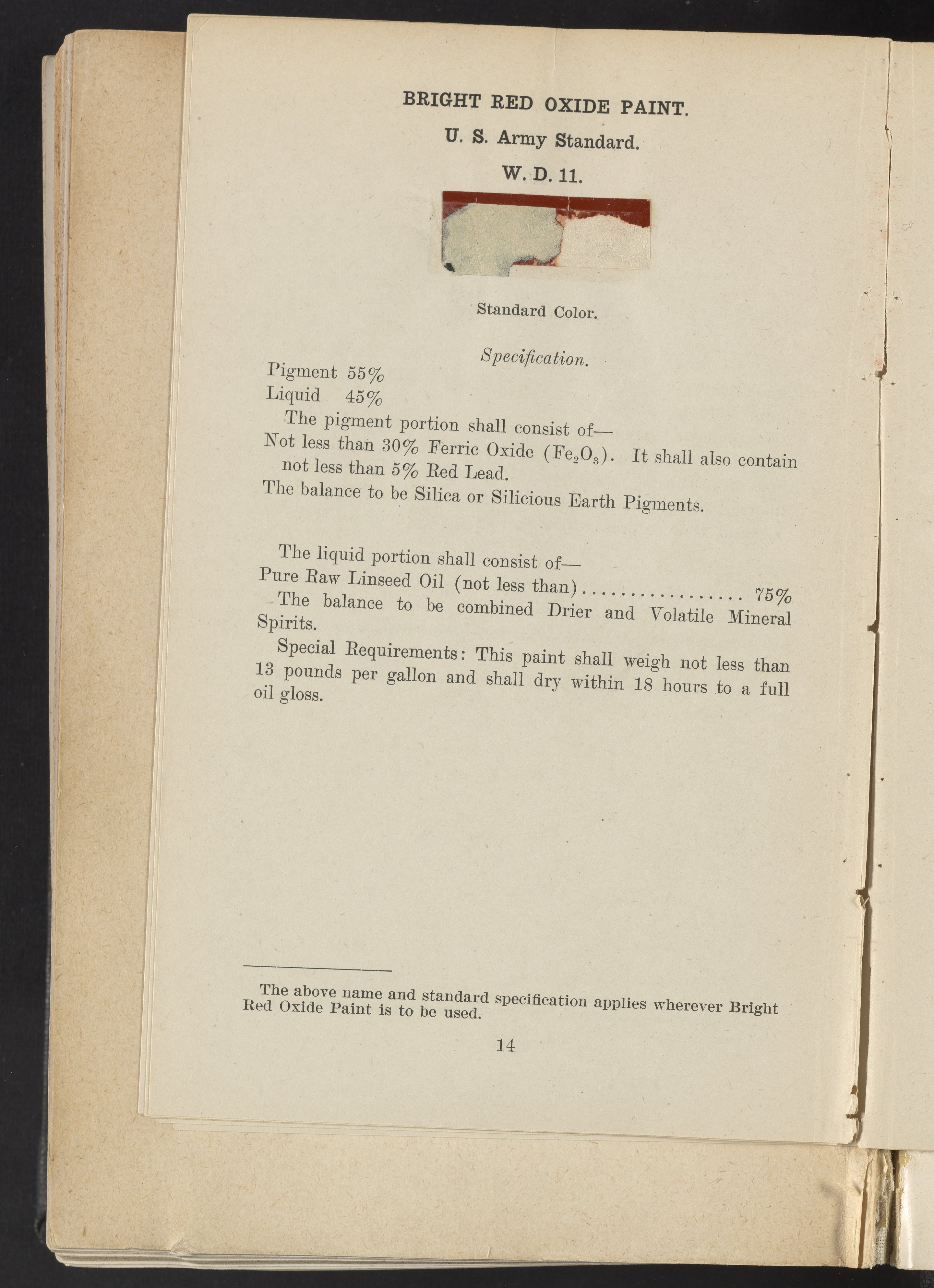 Standard Paint Specifications of the War Department, Pamphlet No. 1