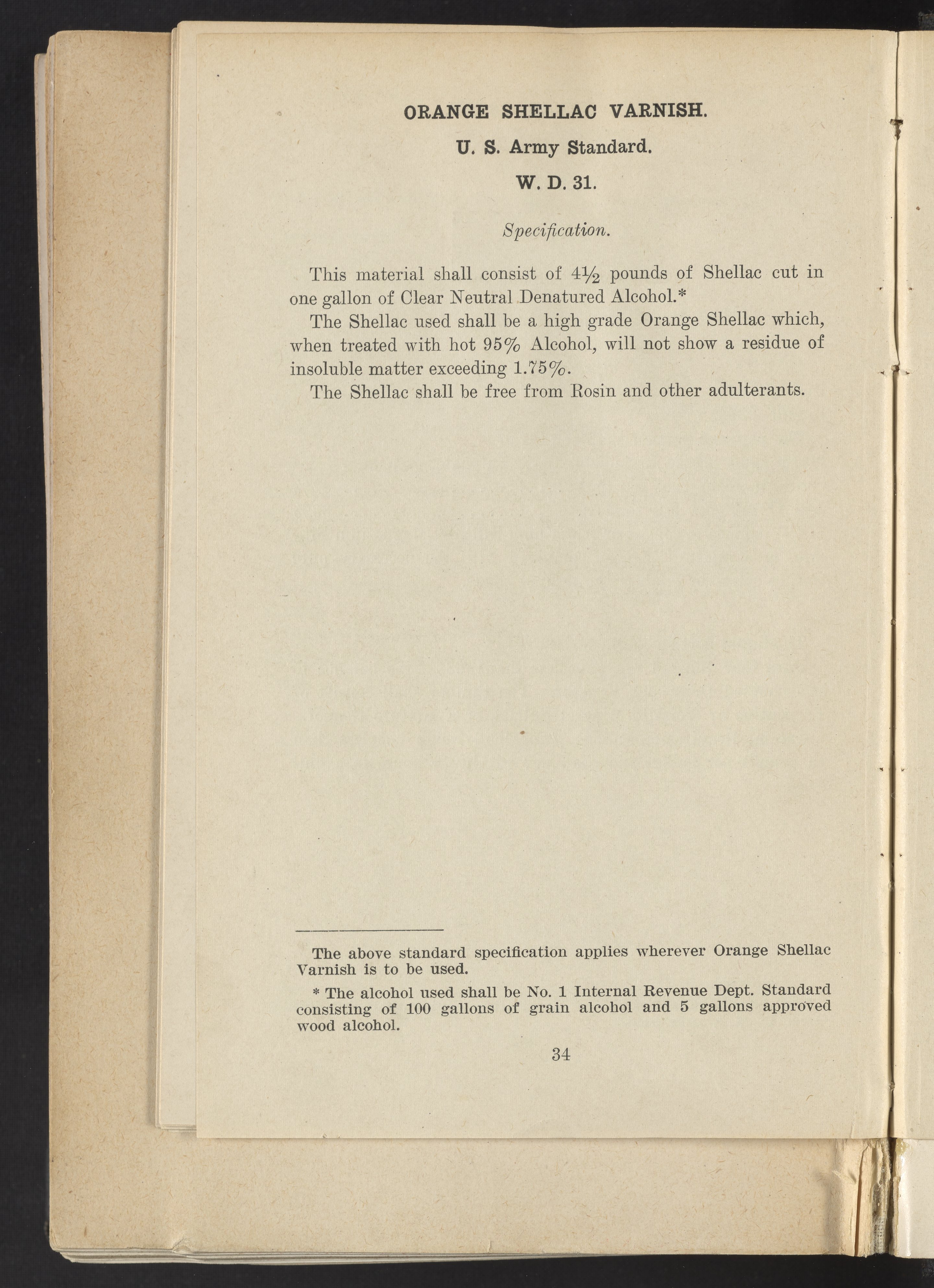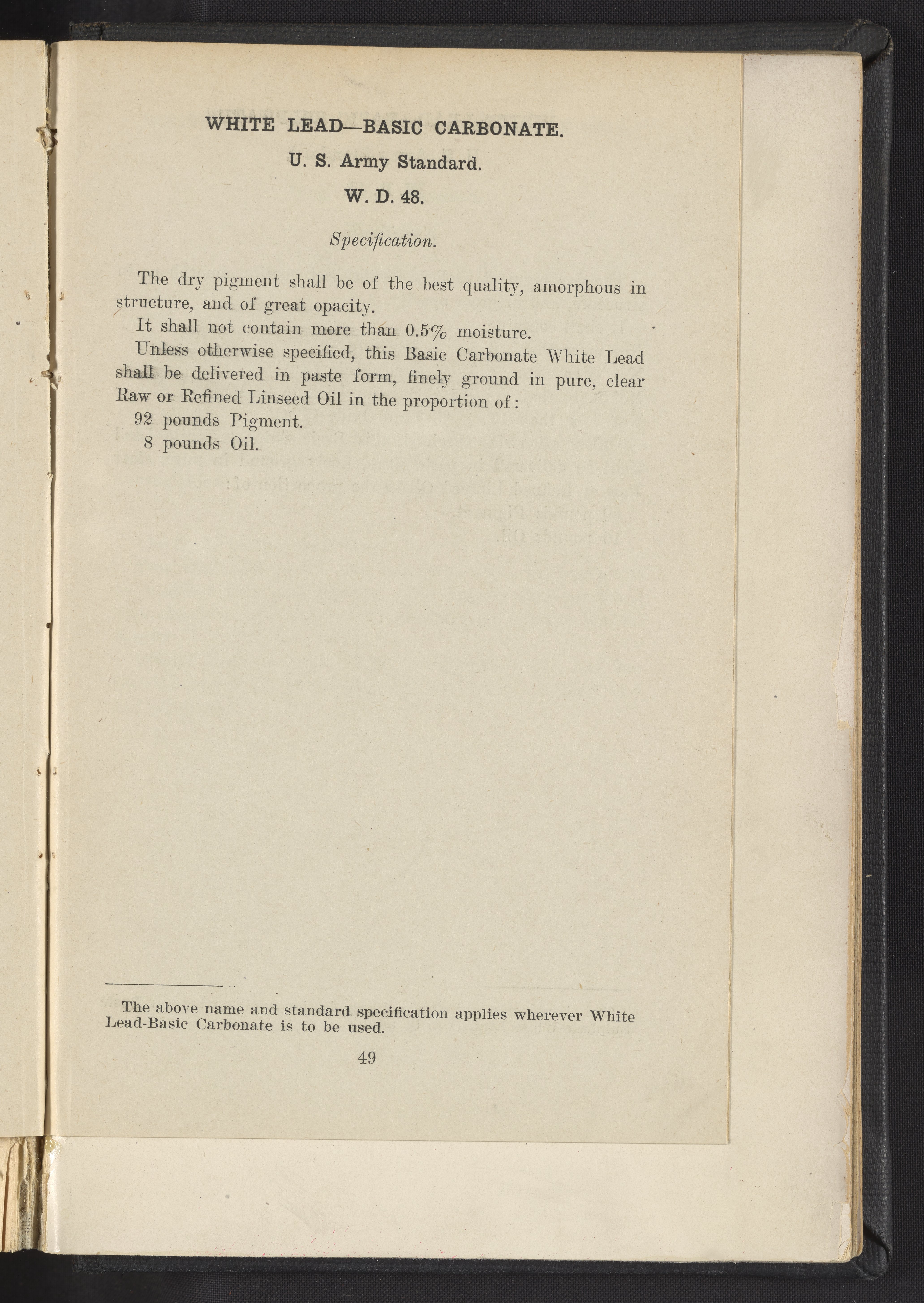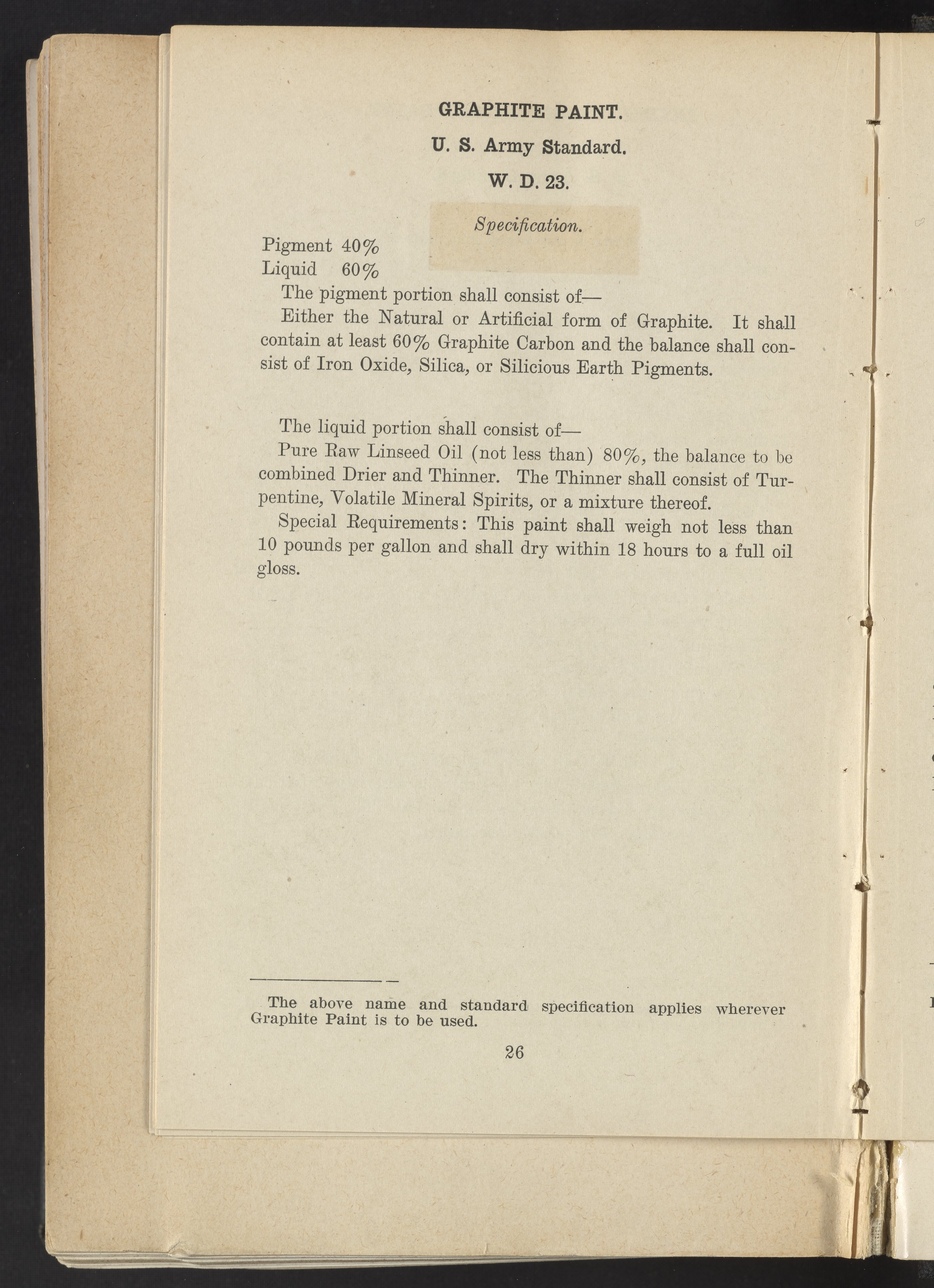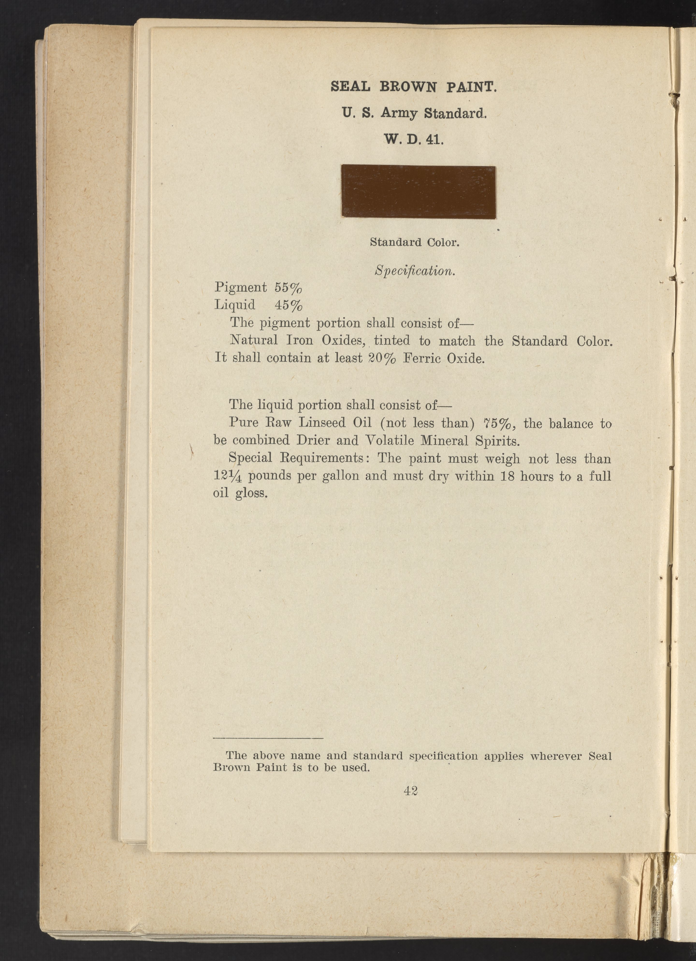 Standard Paint Specifications of the War Department, Pamphlet No. 1