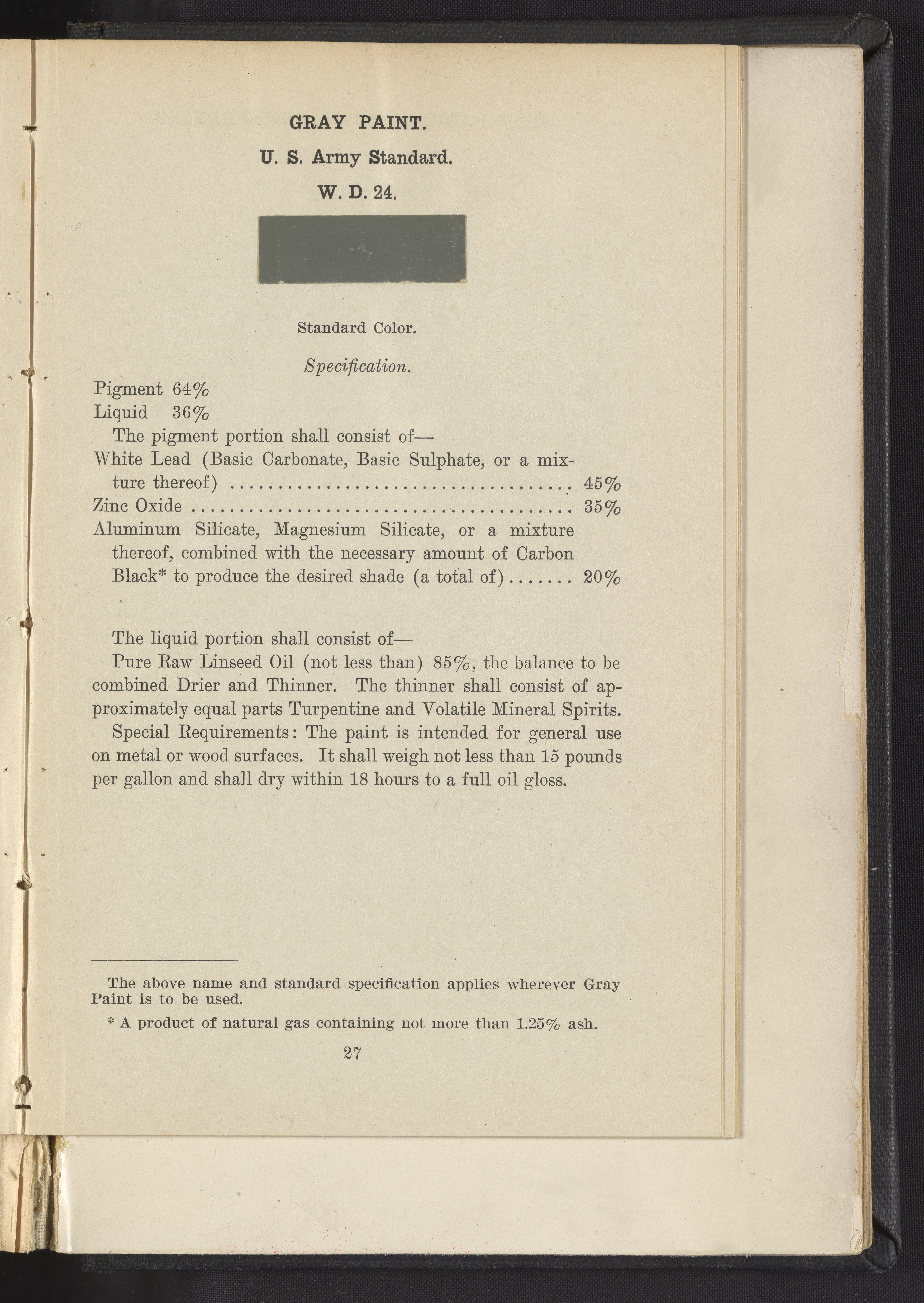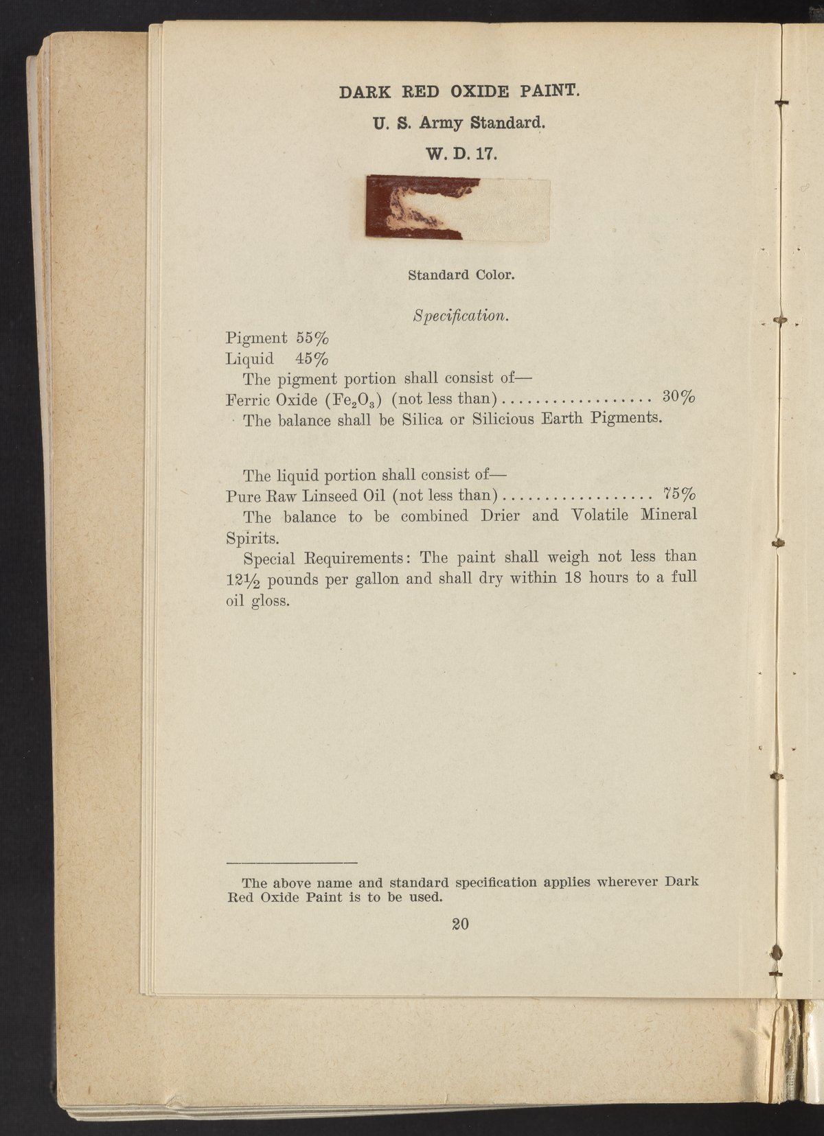 United States. War Department. Standard Paint Specifications of the War Department, Pamphlet No. 1. Washington (D.C.), 1918. https://digital.sciencehistory.org/works/fj2362203.