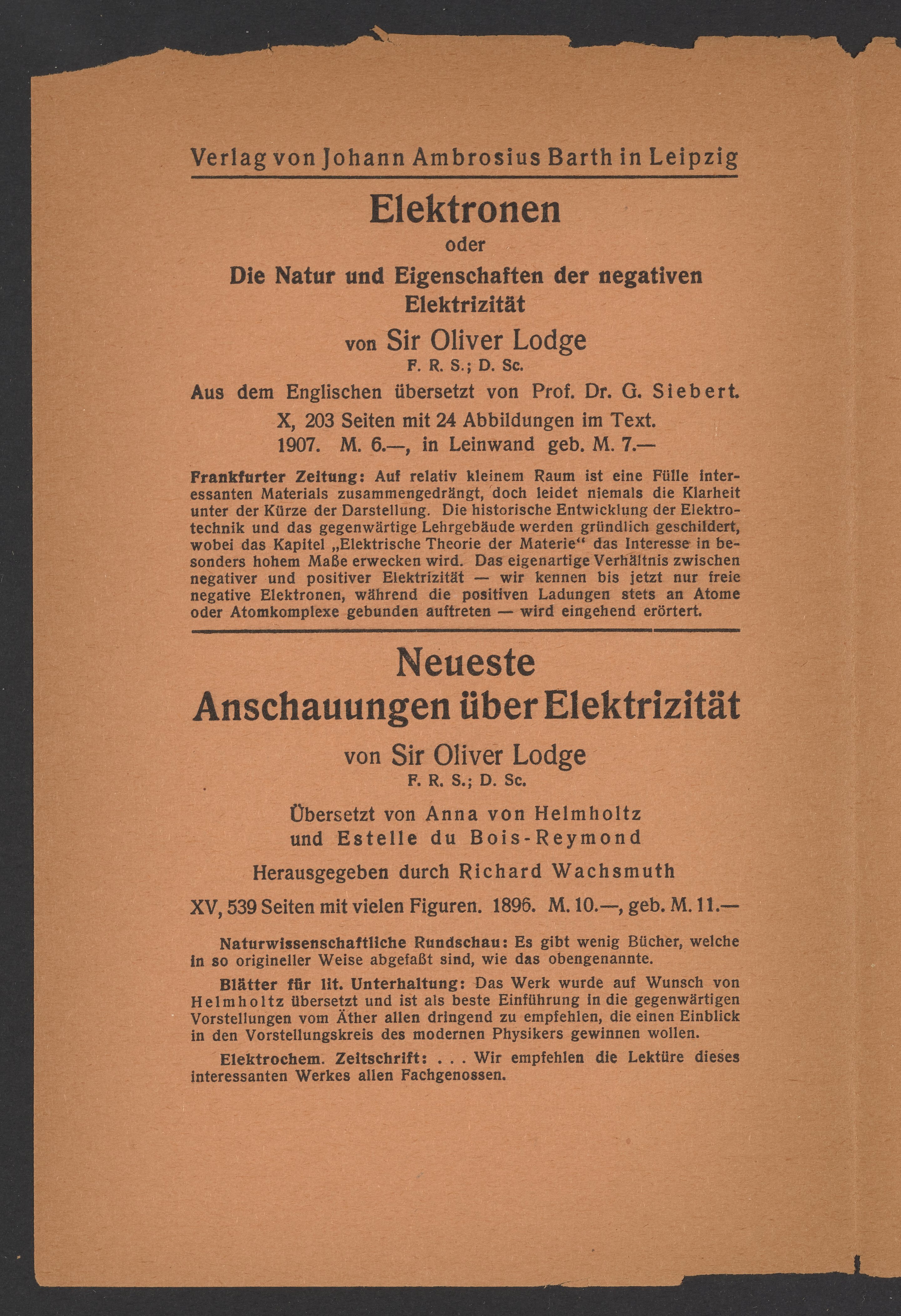 Advertisements for publications from Johann Ambrosius Barth publishing house