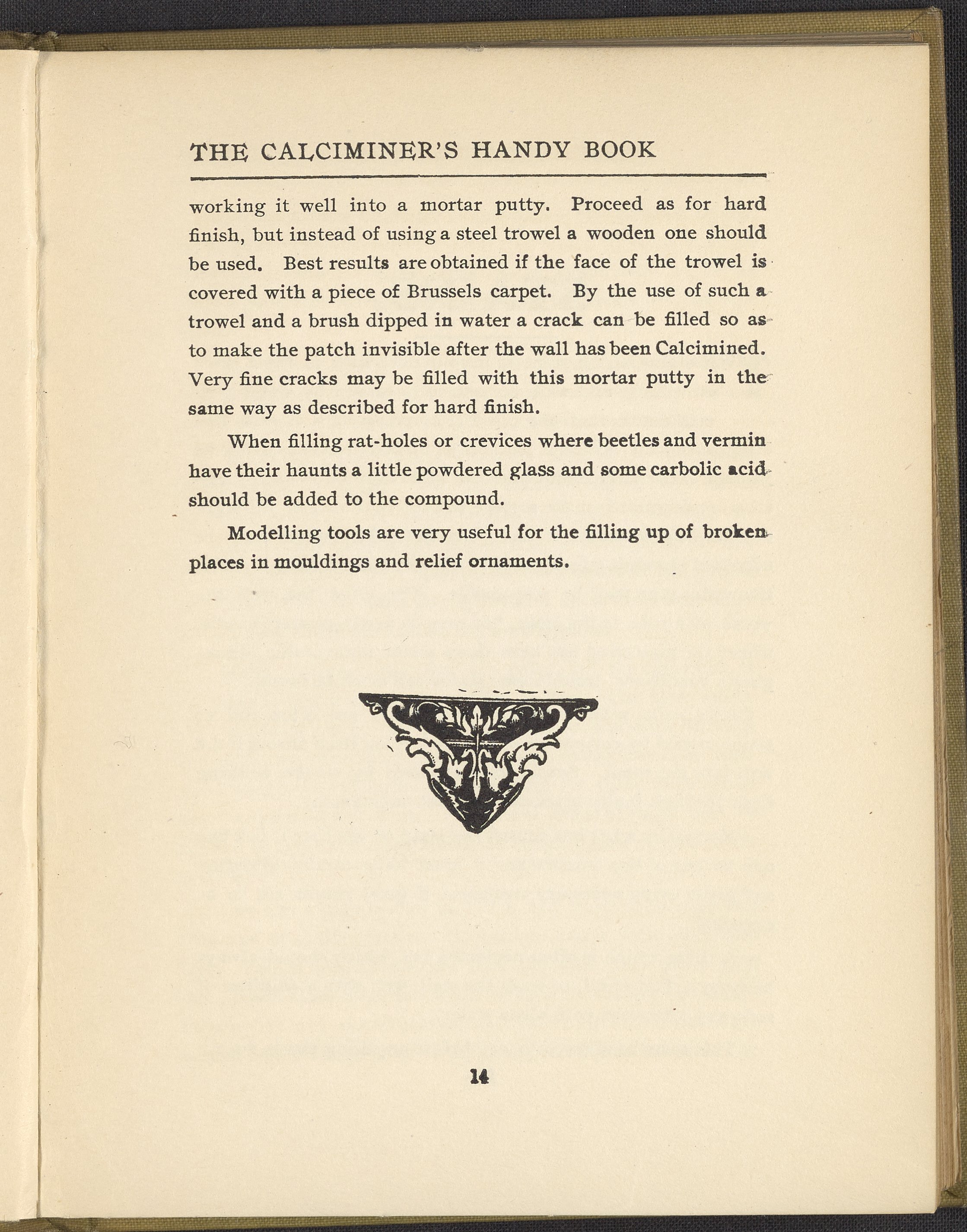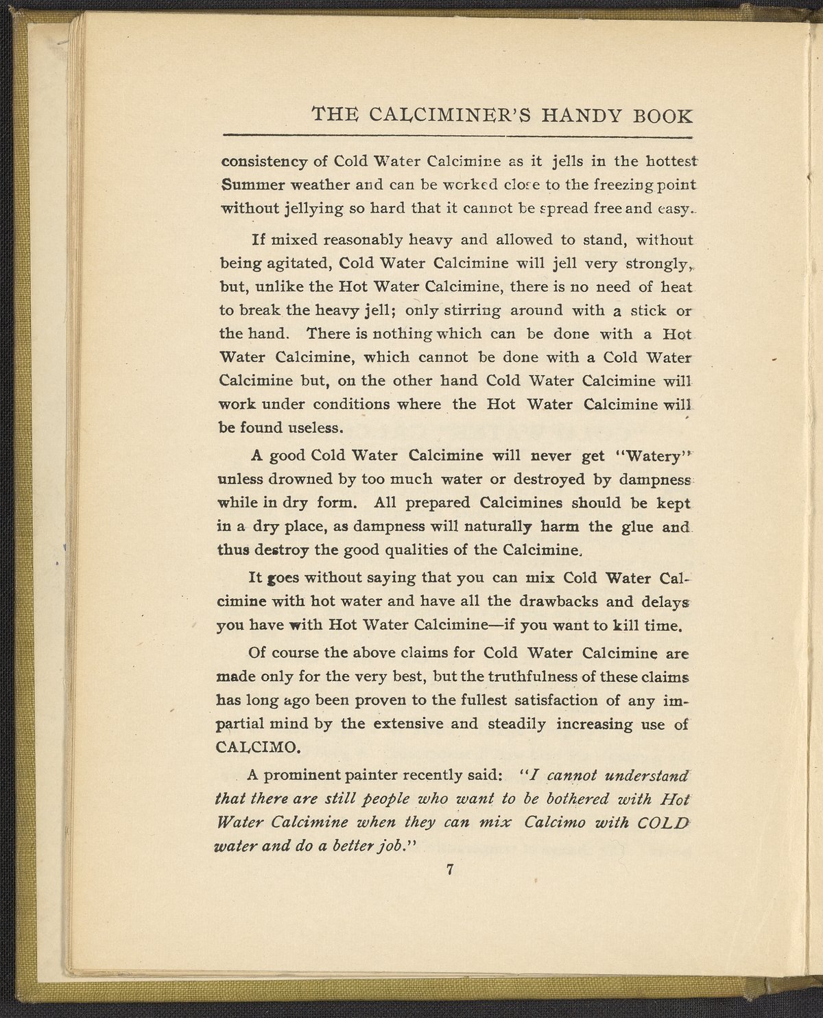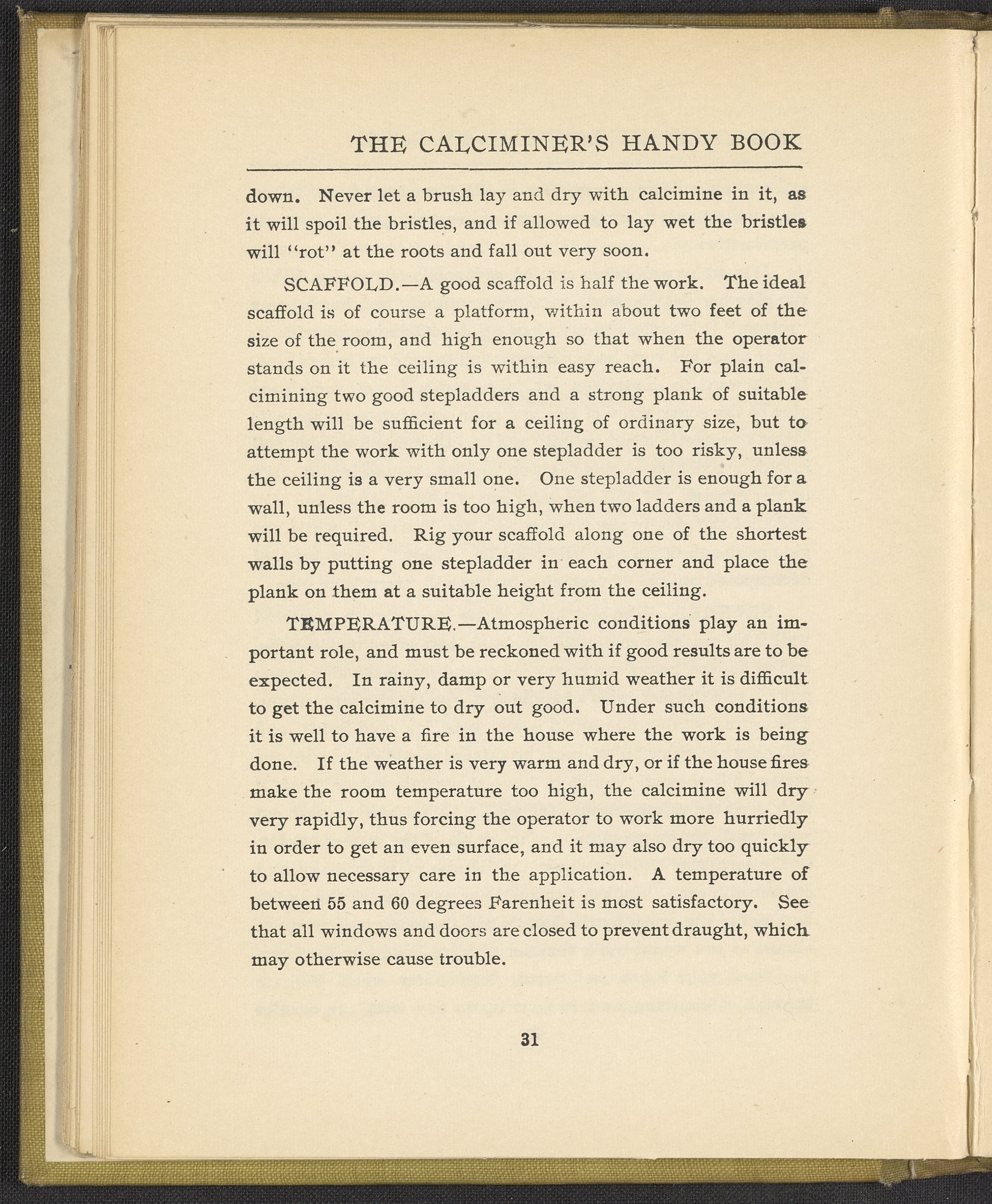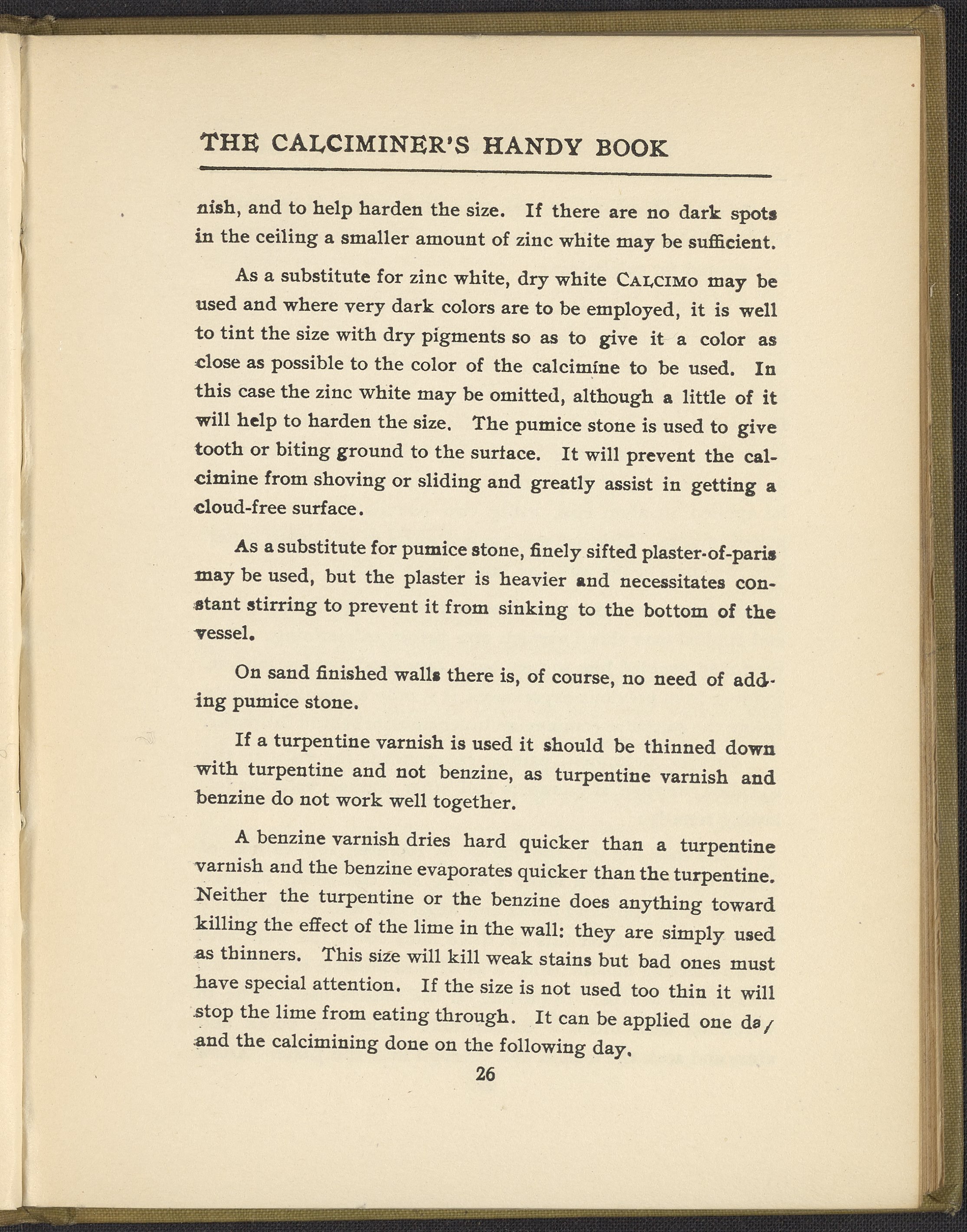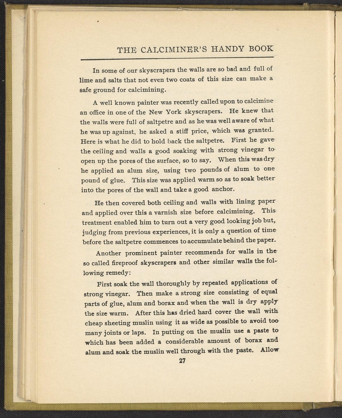 Nelson, Peter William. The Calciminer's Handy Book. New Brighton, New York, New York: Muralo Company, 1907. https://digital.sciencehistory.org/works/g8bruql.
