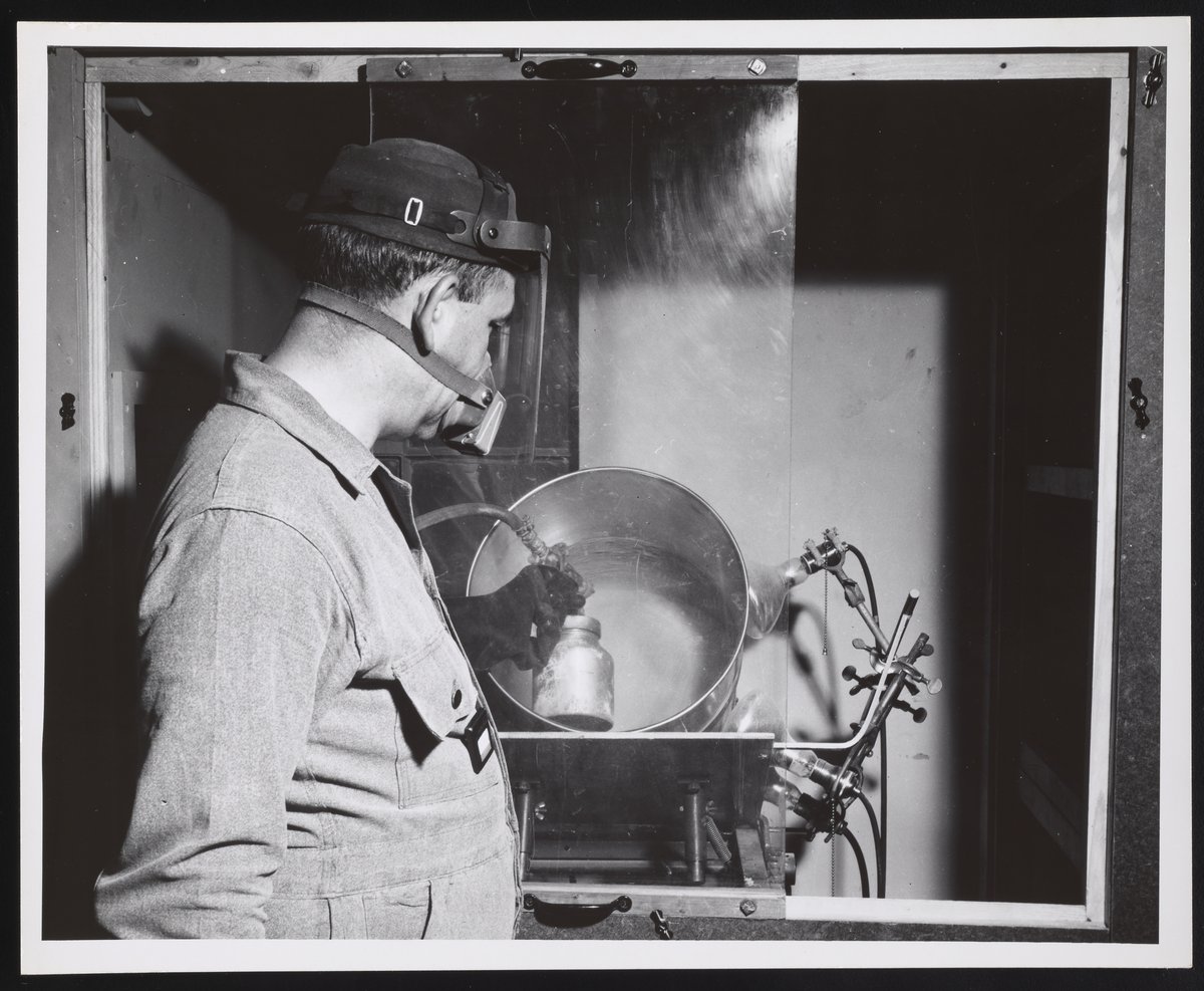 Chemist handling radioactive material at U.S. Department of Agriculture facility