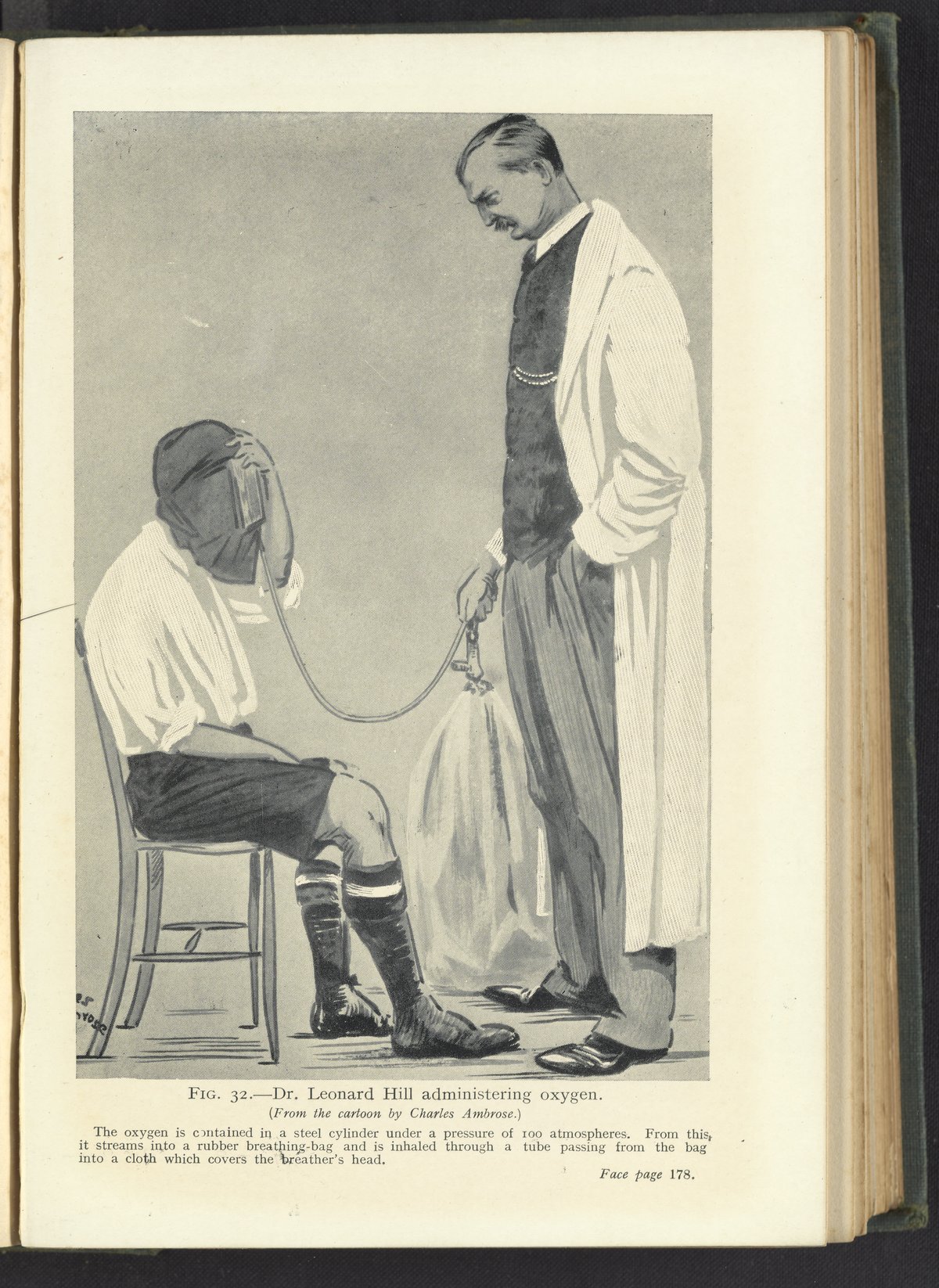 Martin, Geoffrey. “FIg. 32: Dr. Leonard Hill Administering Oxygen.” Triumphs & Wonders of Modern Chemistry. New York, New York: D. Van Nostrand Company, 1913. https://digital.sciencehistory.org/works/gb19f6442.