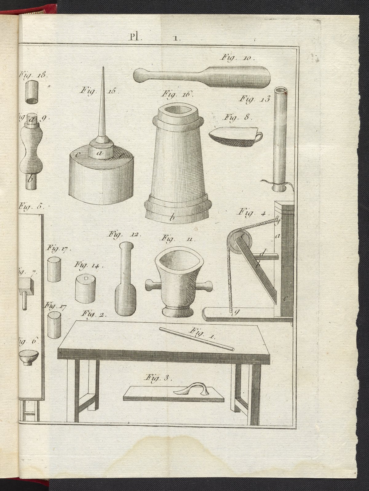 Ruggieri, Claude-Fortuné. “Plate 1: Tools for the Manufacture of Fireworks.” In Elémens De Pyrotechnie. Paris, France, 1811. https://digital.sciencehistory.org/works/gb19f664j.