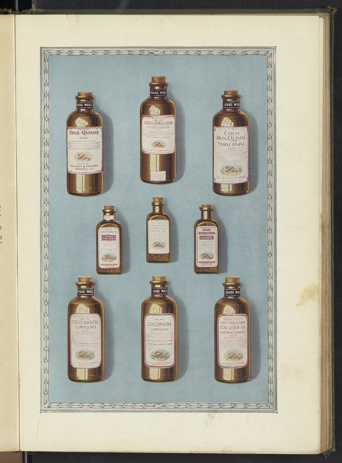 Eli Lilly and Company. “Bottles of Chocolate-Flavored Medicines.” Hand Book of Pharmacy and Therapeutics. Indianapolis, Indiana, circa 1919. https://digital.sciencehistory.org/works/gb19f706v.