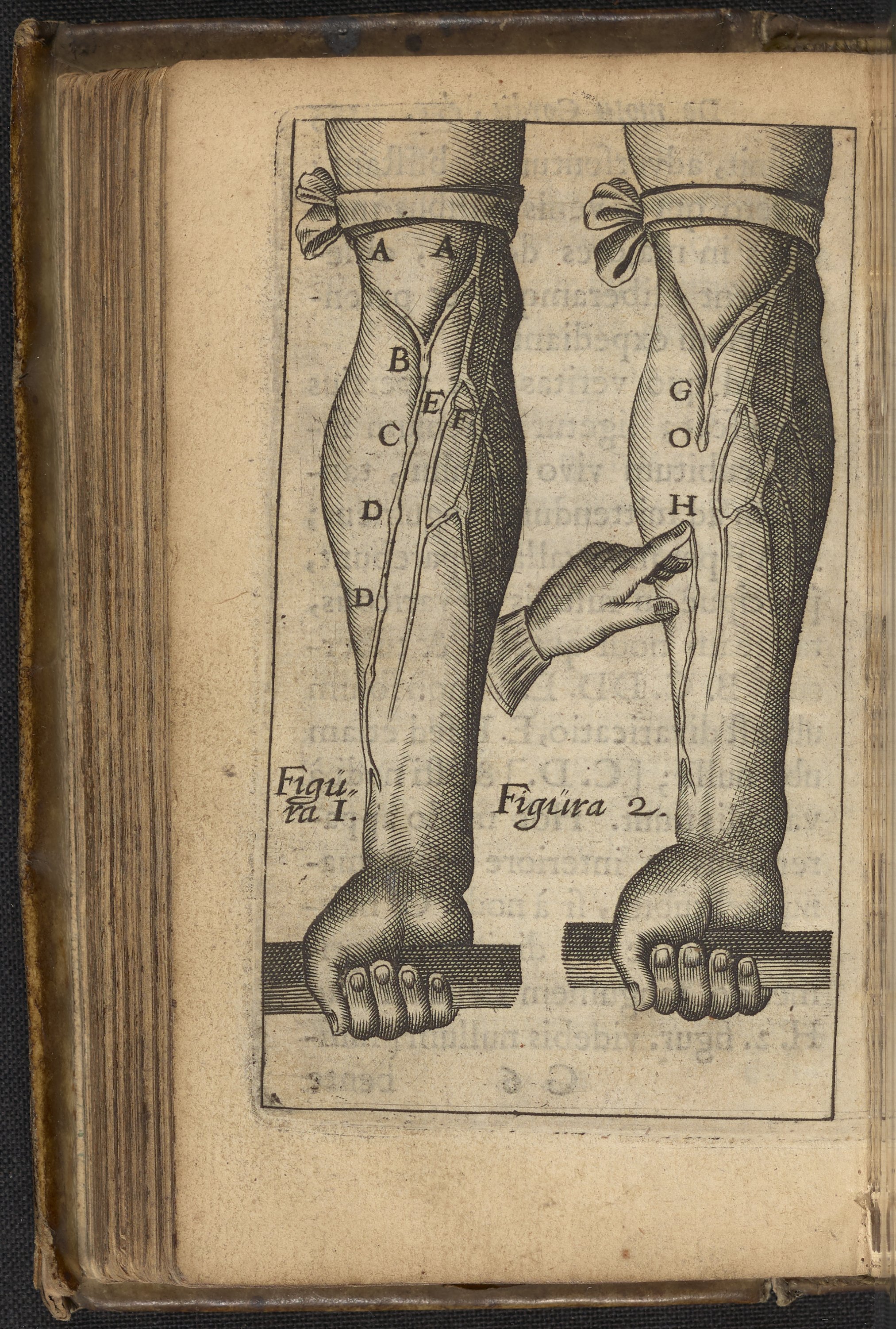 Small JPG1200 x 1757px — 620 KBFull-sized JPG1996 x 2922px — 1.4 MBOriginal fileTIFF — 1996 x 2922px — 16.7 MBWilliam Harvey (1578-1657) was an English physician who discovered the circulation of the blood. He correctly described the motion of the heart as a contraction that forced blood out of the left ventricle into the arteries and the return of the blood through the venous system to the right atrium, as well as the pulmonary circulation of blood from the right ventricle through the lungs to the left atrium. This work, first published in 1628, is commonly referred to as De Motu Cordis, or On the Motion of the Heart. Harvey establishes the circulation of blood throughout the body through observations, experiments, and measurements.