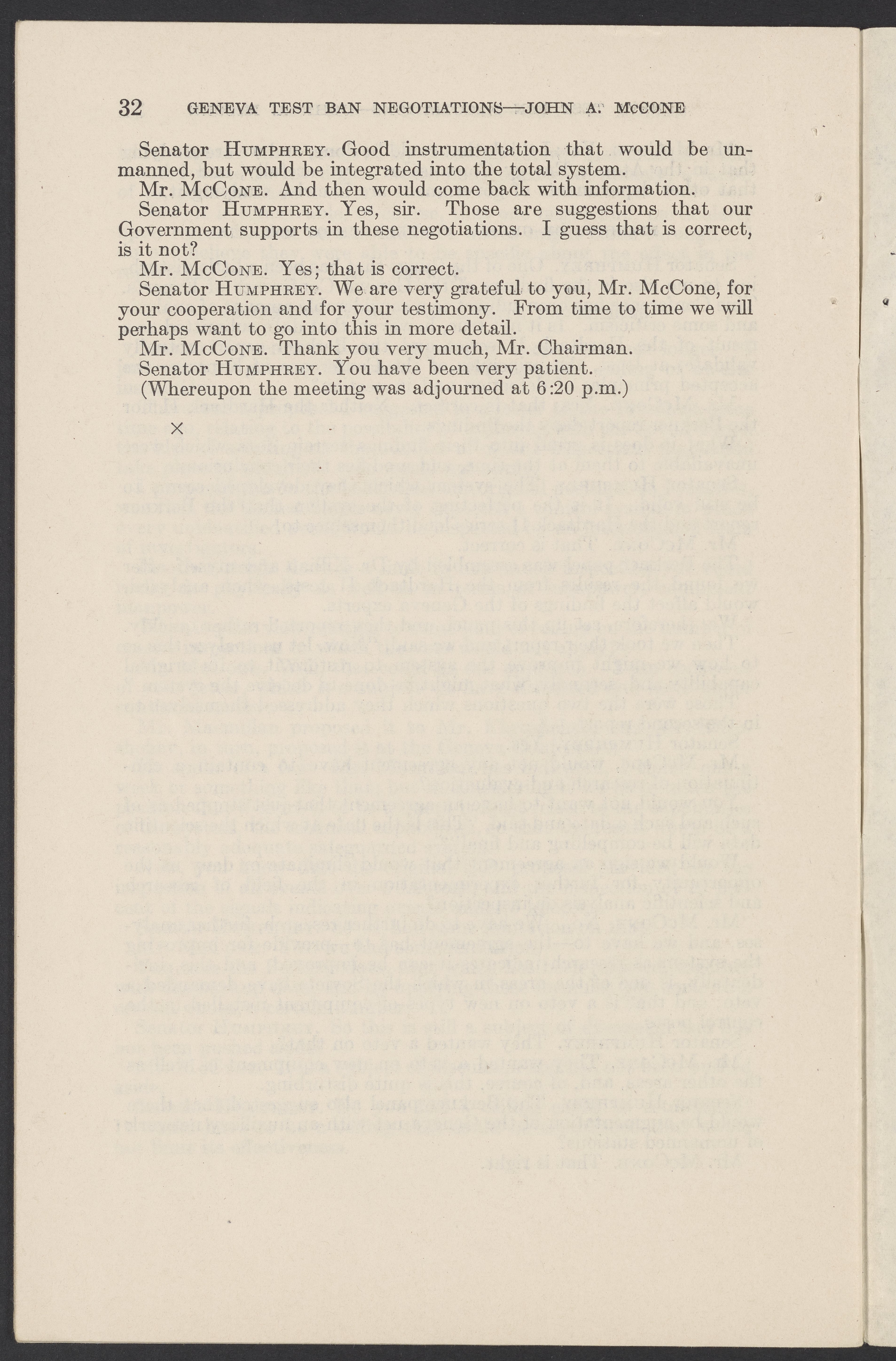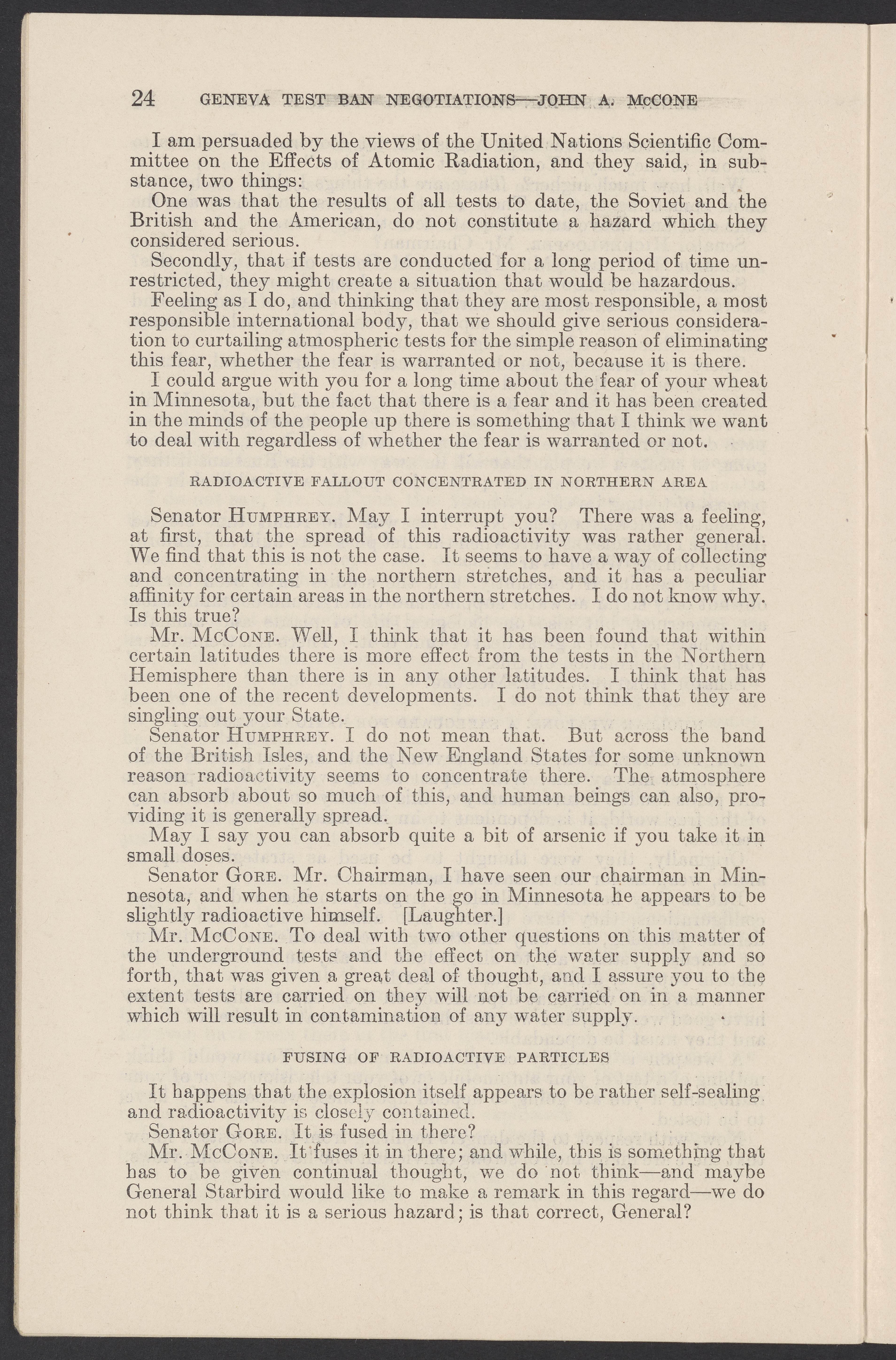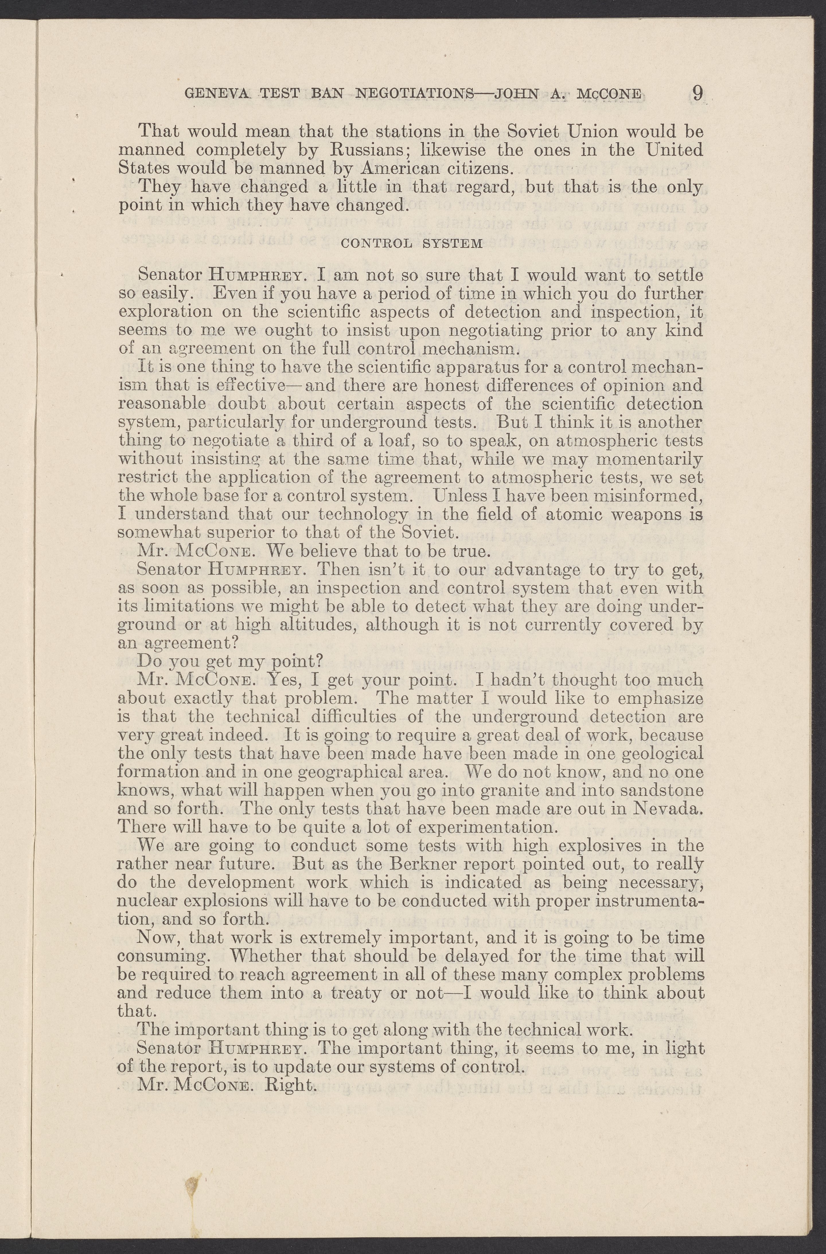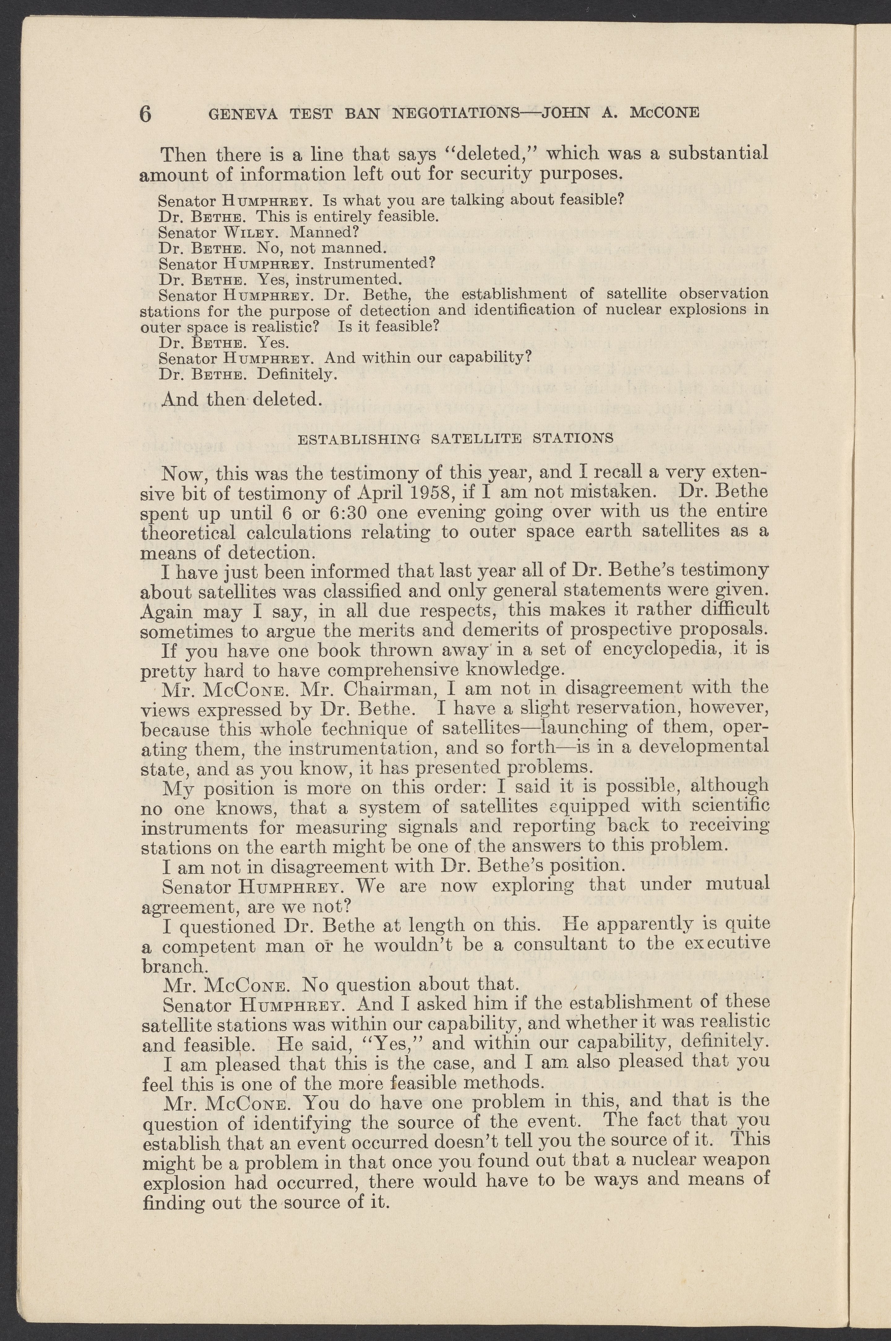 Small JPG1200 x 1831px — 279 KBLarge JPG2880 x 4394px — 1.5 MBFull-sized JPG3774 x 5758px — 2.4 MBOriginal fileTIFF — 3774 x 5758px — 62.2 MBTestimony of John A. McCone (1902-1991), chair of the Atomic Energy Commission (AEC), on Geneva test ban negotiation, given in hearing before the Subcommittee on Disarmament of the Committee on Foreign Relations, United States Senate.