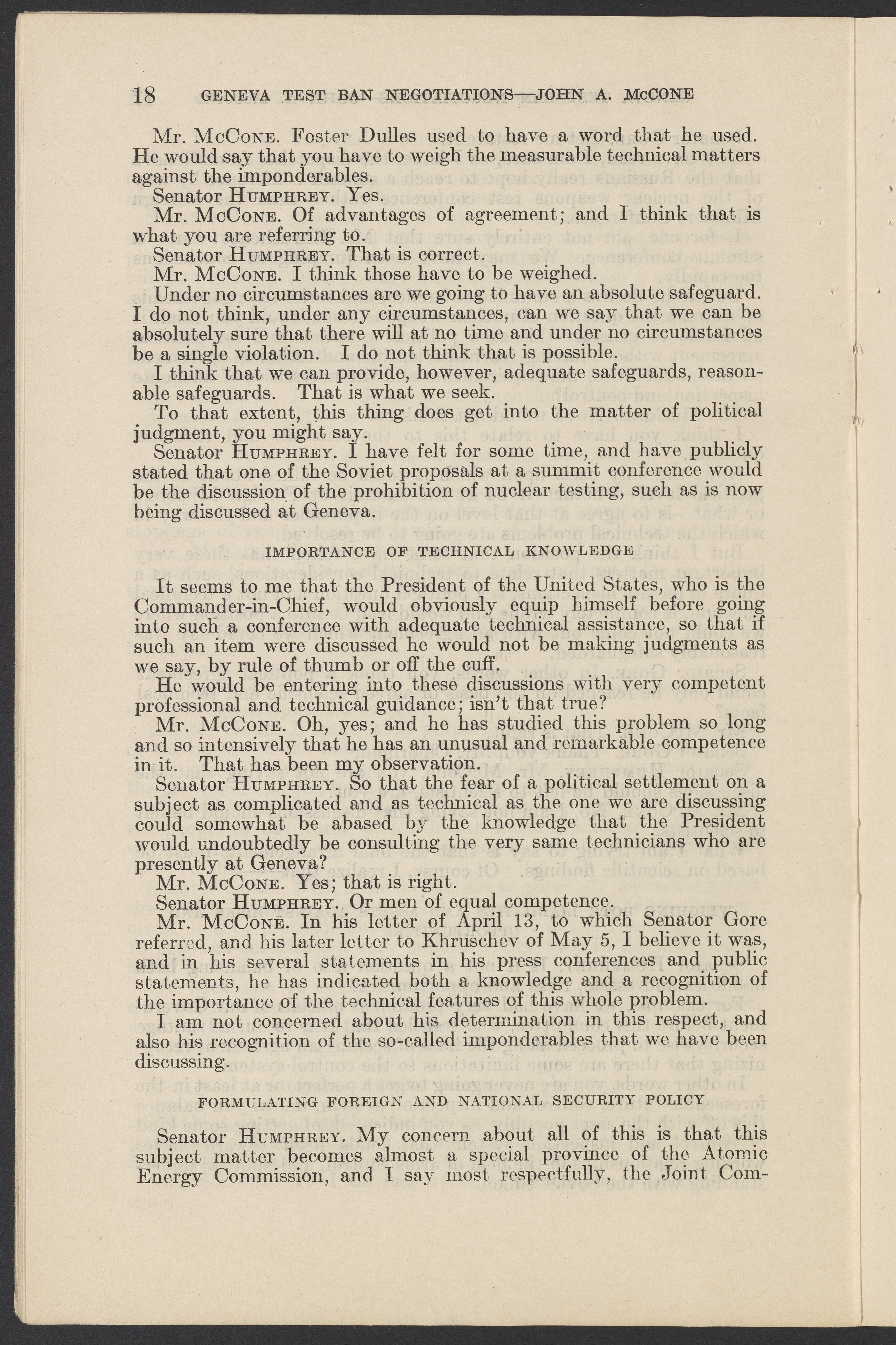 Testimony of John A. McCone on Geneva Test Ban Negotiations