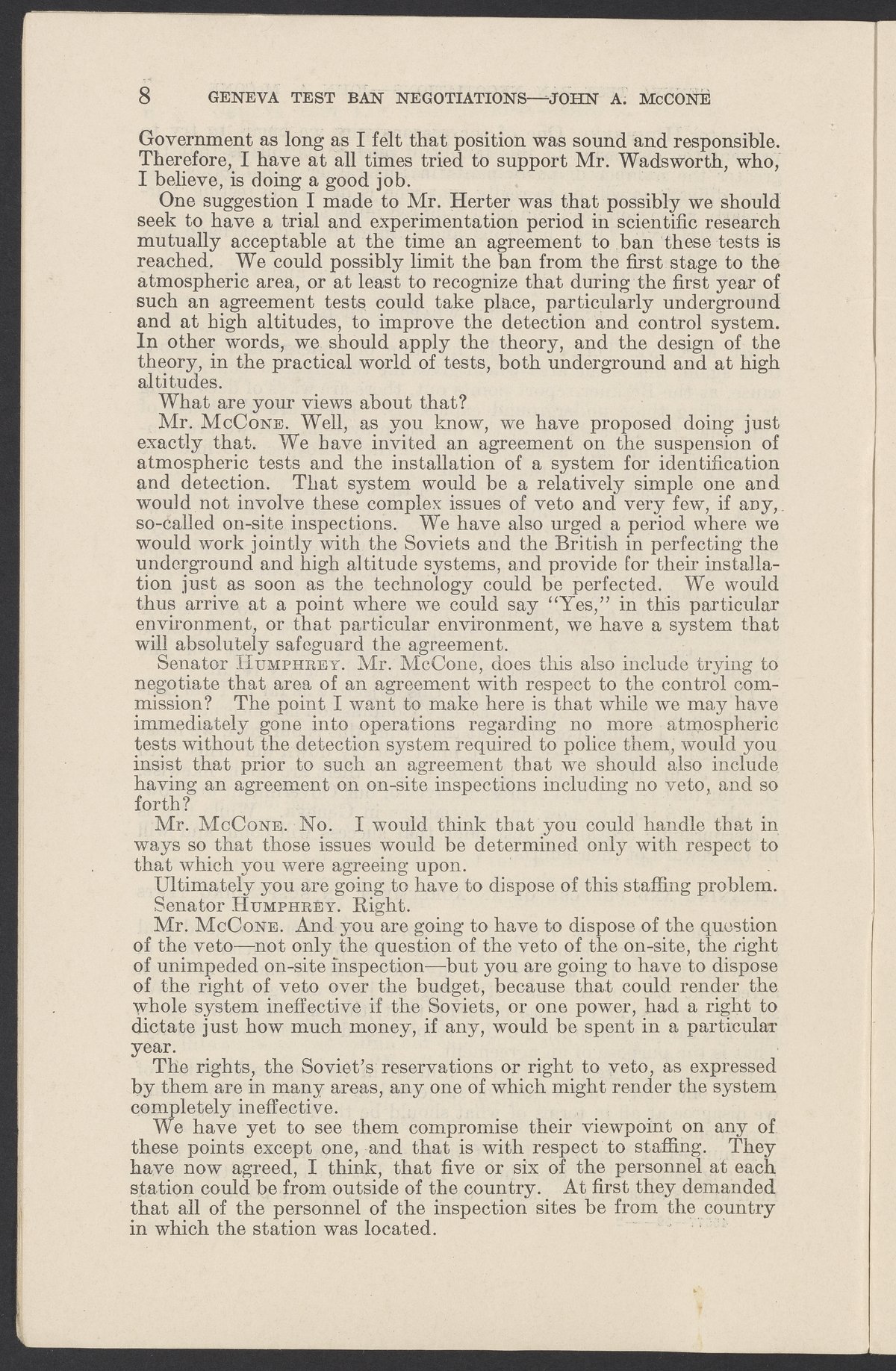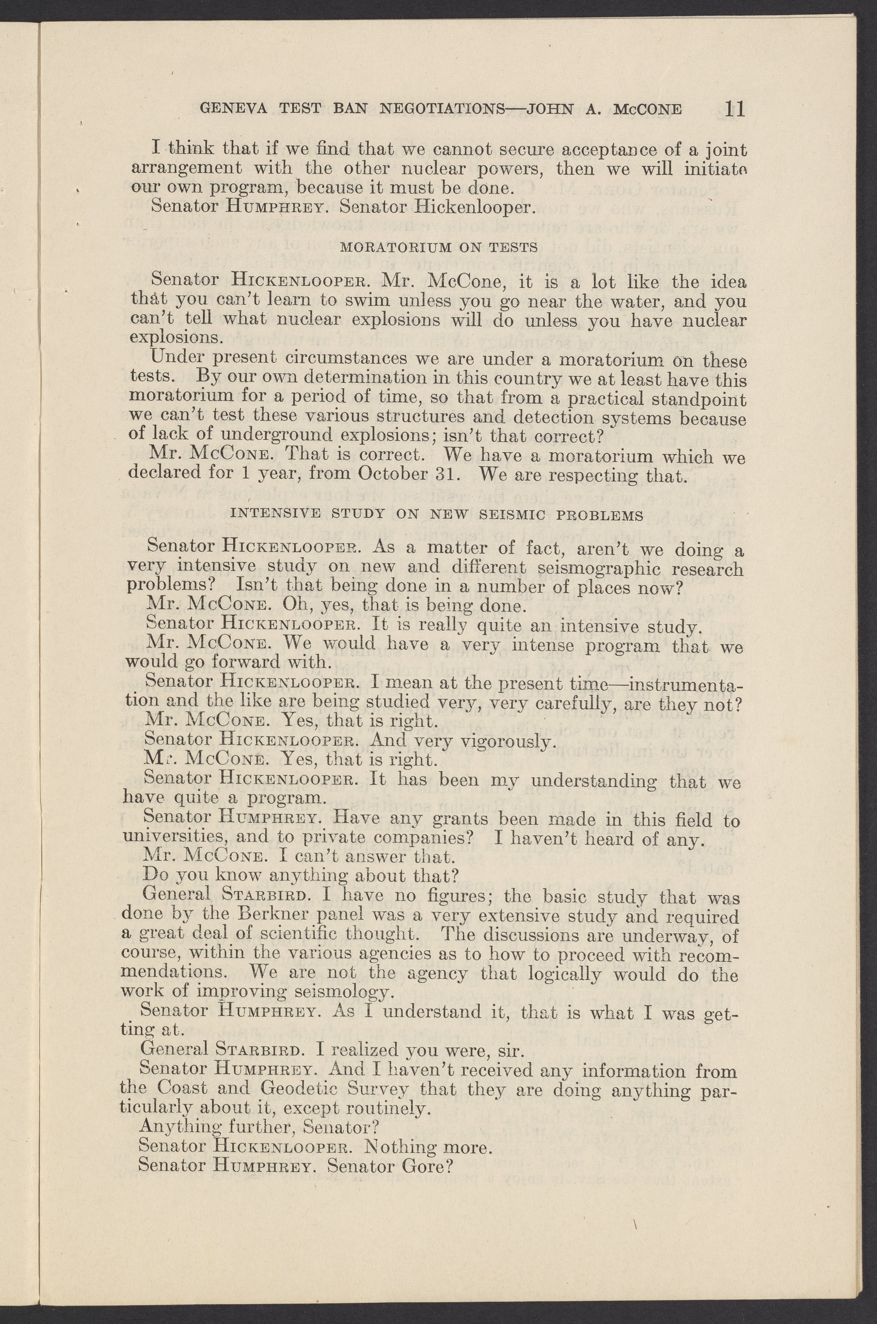 Testimony of John A. McCone on Geneva Test Ban Negotiations