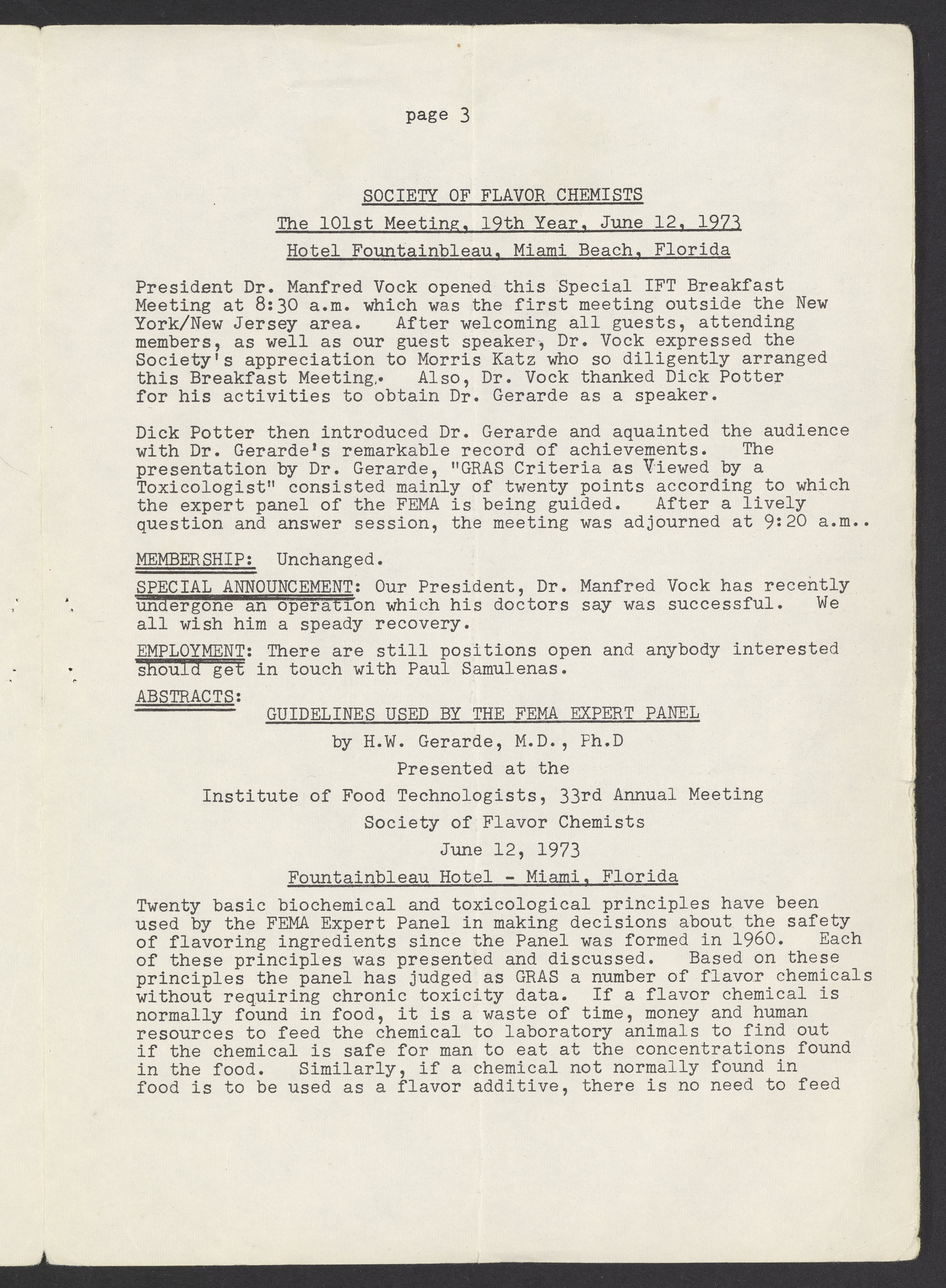 Society of Flavor Chemists. “Society of Flavor Chemists Newsletter, August 1973,” August 1973. Society of Flavor Chemists Newsletters and Certificate of Incorporation, Box 1, Folder 1. Science History Institute. Philadelphia. https://digital.sciencehistory.org/works/gi7te47.