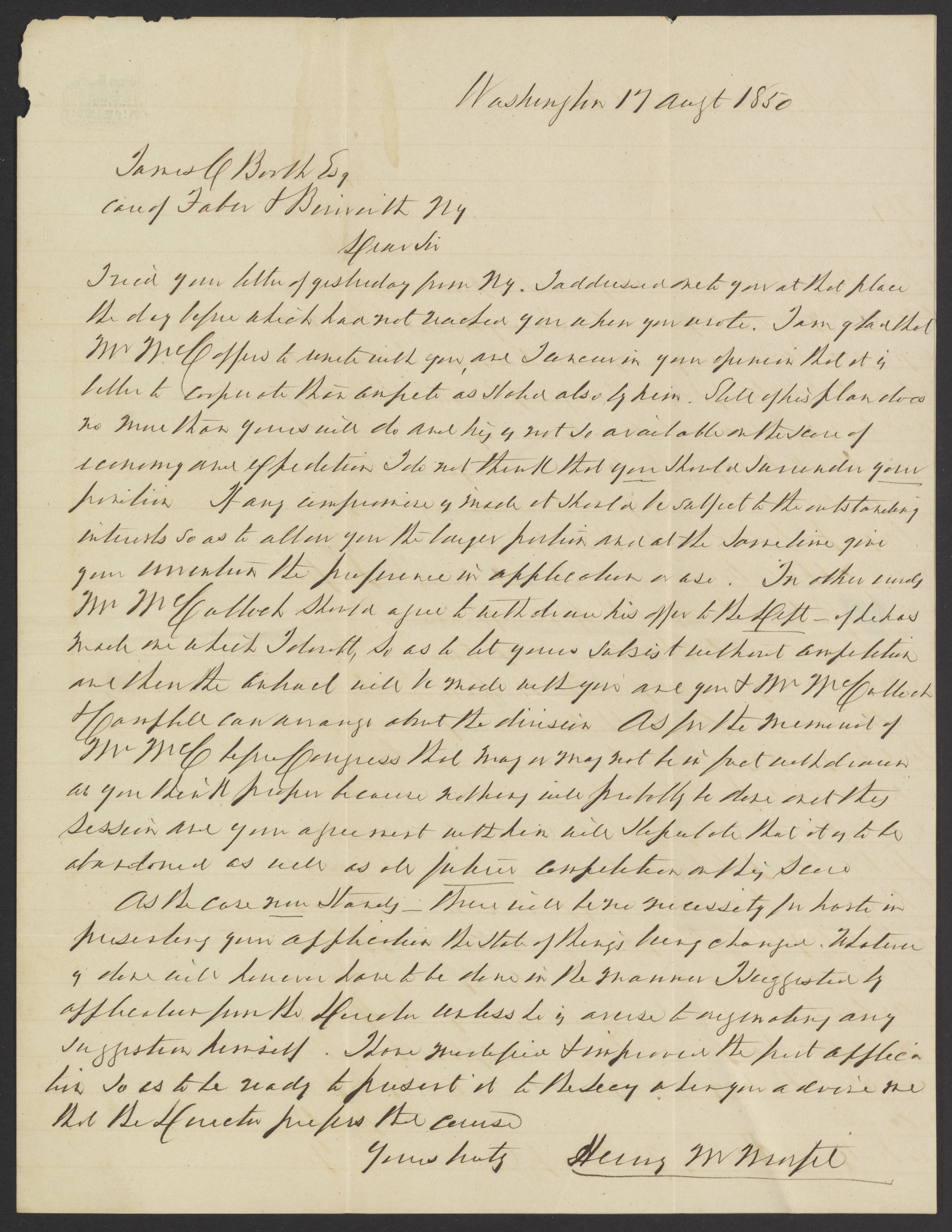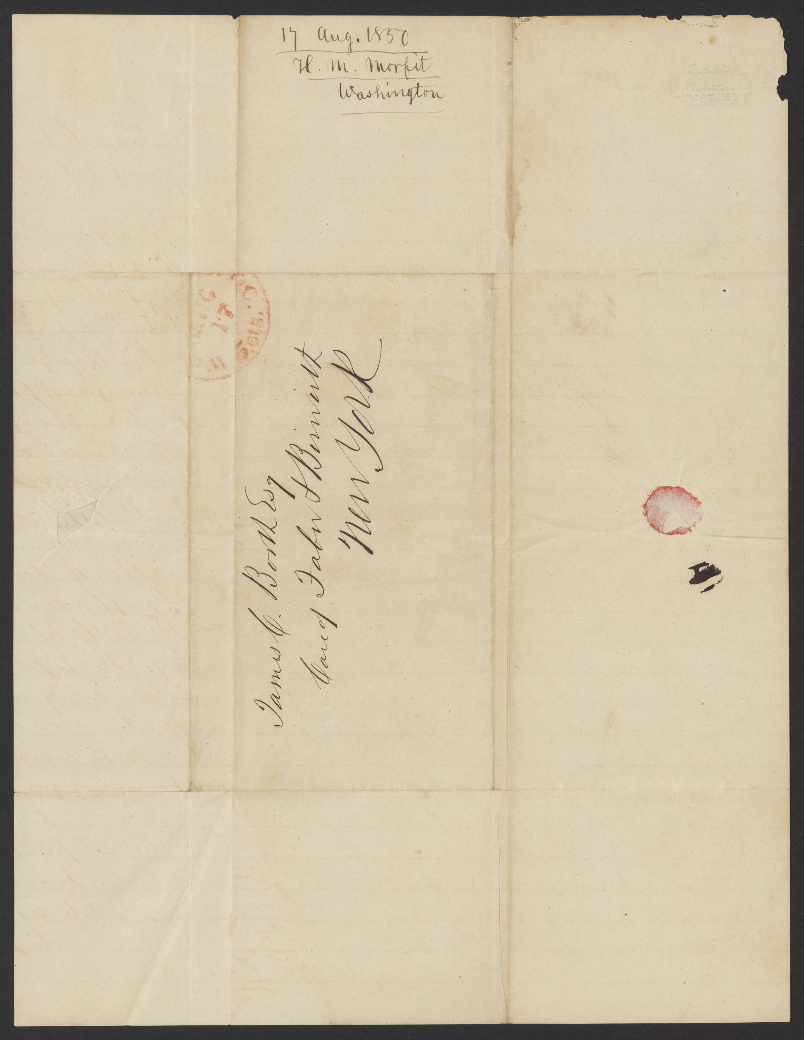 Letter from Henry M. Morfit to James Curtis Booth, August 17, 1850