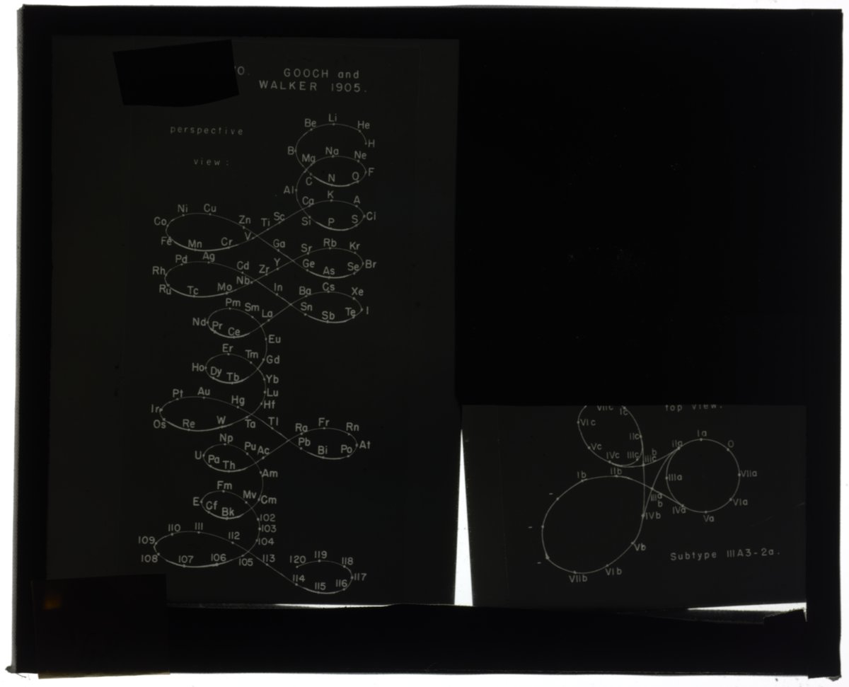 Periodic table in style of helix and space lemniscate with two additional loops for rare earth elements1905 (Original design), Circa 1957 (Date attributed to slide)