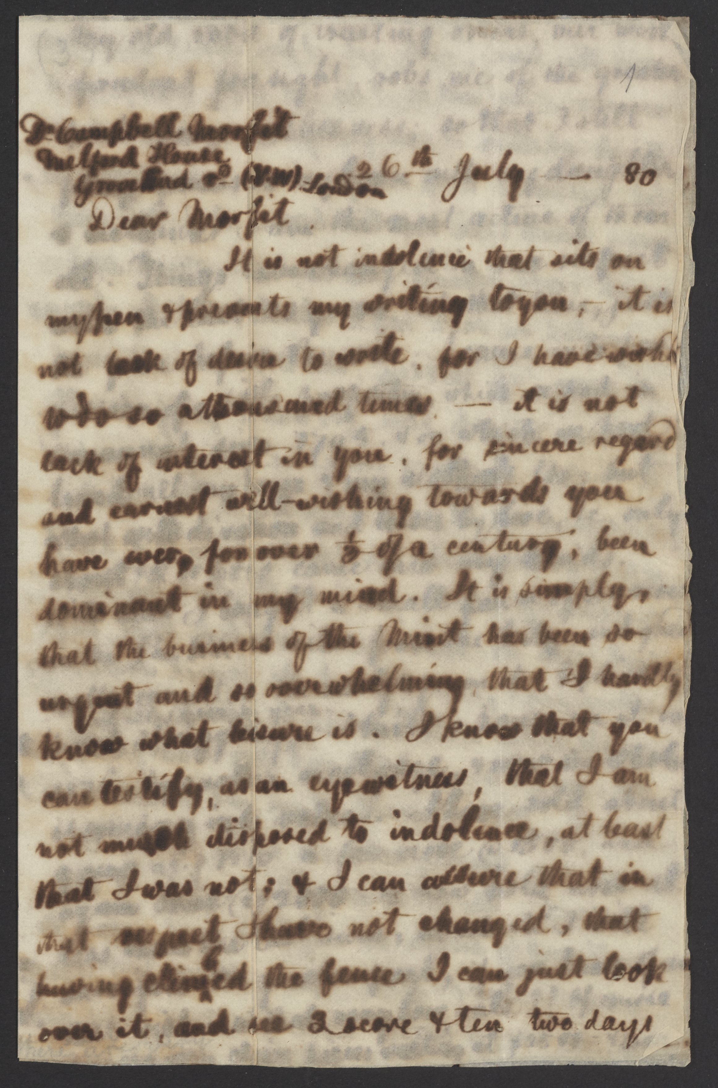 Small JPG1200 x 1818px — 341 KBFull-sized JPG2323 x 3519px — 1017 KBOriginal fileTIFF — 2323 x 3519px — 23.4 MBJames Curtis Booth (1810-1888), writes to Campbell Morfit (1820-1897) lamenting his lack of leisure time and the passing of the years.